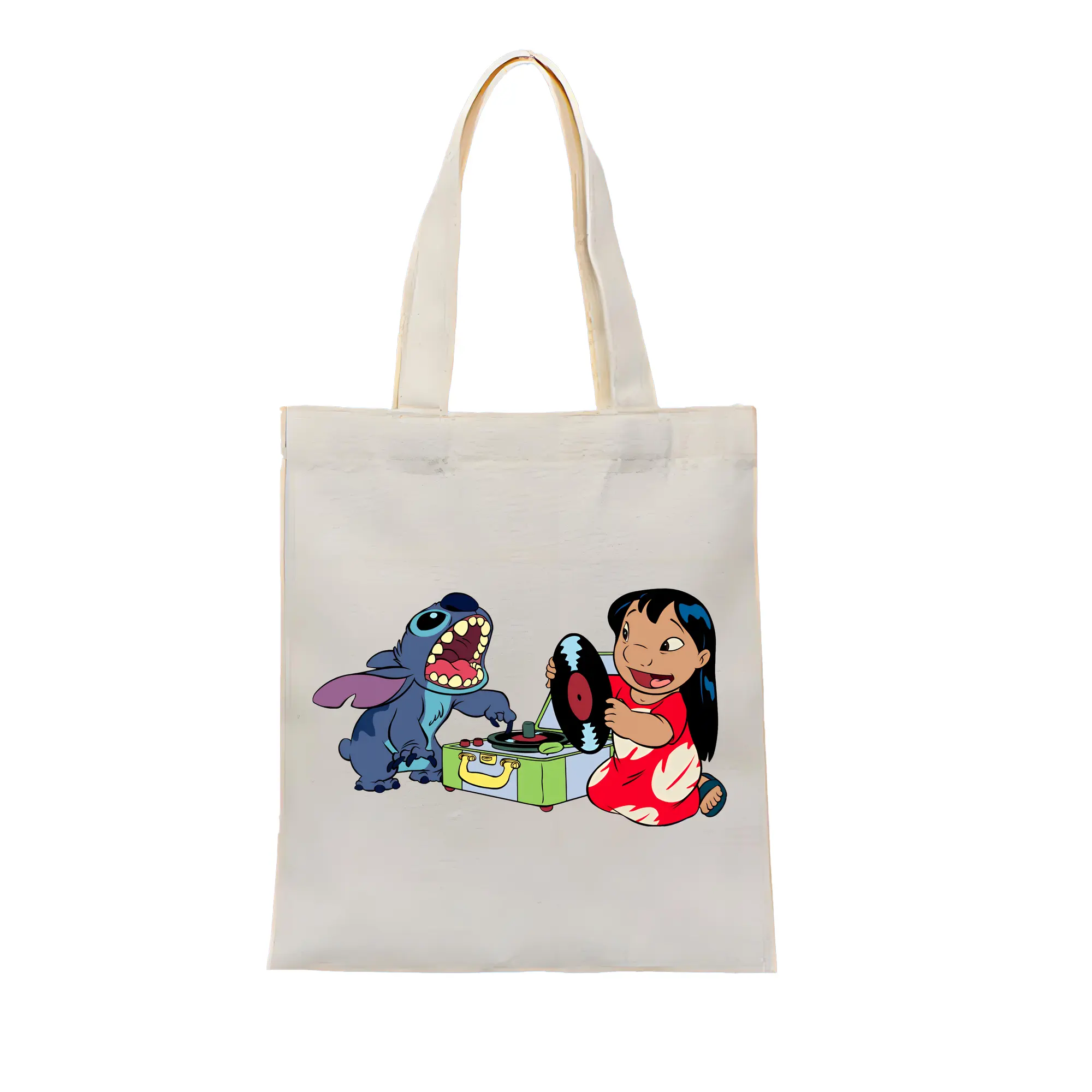 リロ&スティッチ グッズ リロ - 縦型キャンバス手提げバッグ(トートバッグ) ・ キャンバス素材 ・ ショッピング用 ・ 軽量 丈夫 お手入れ簡単