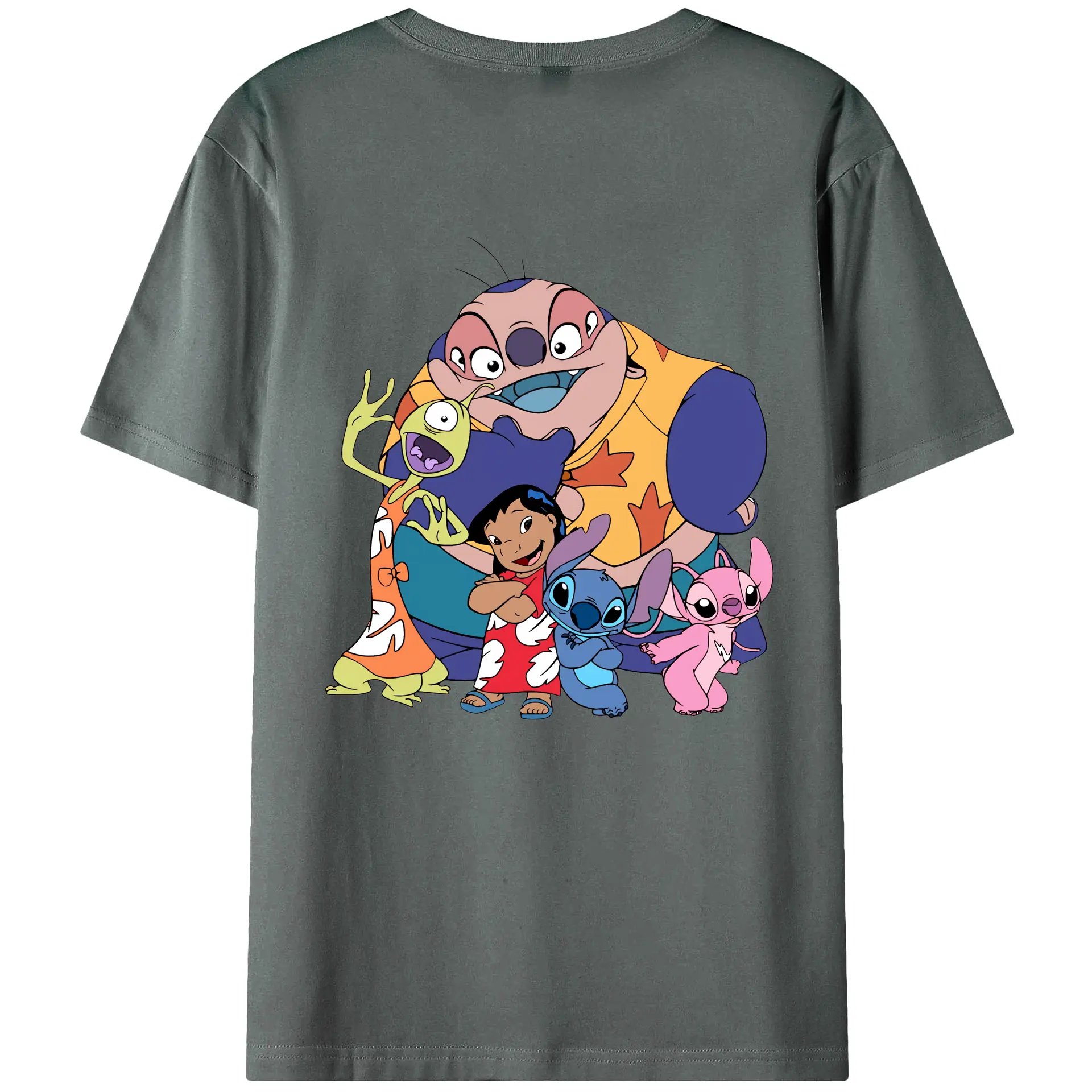 リロ&スティッチ グッズ リロ - 綿100% 半袖Tシャツ ・ バックプリント ・ 快適 通気性 ・ 日常使い 散歩 スポーツ用