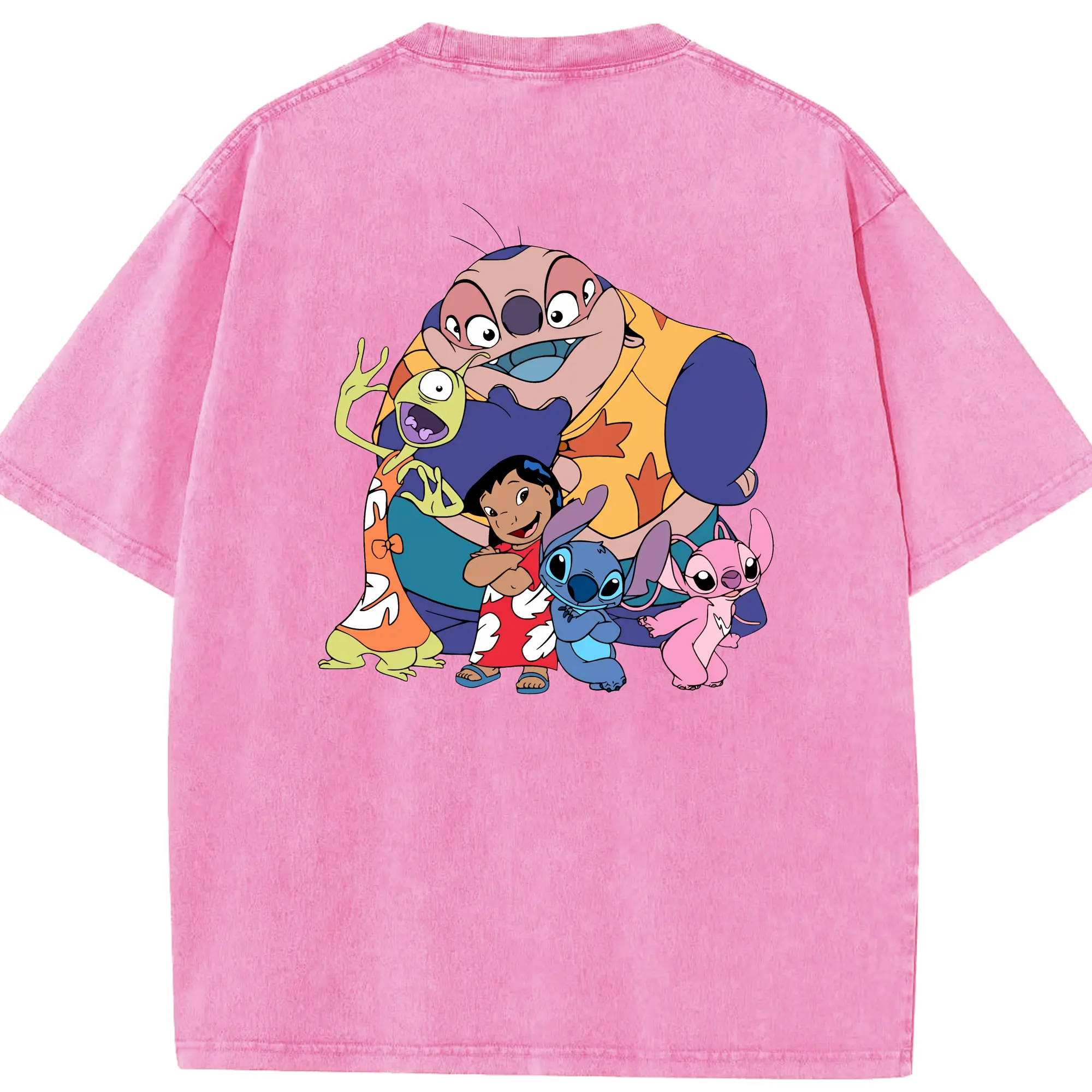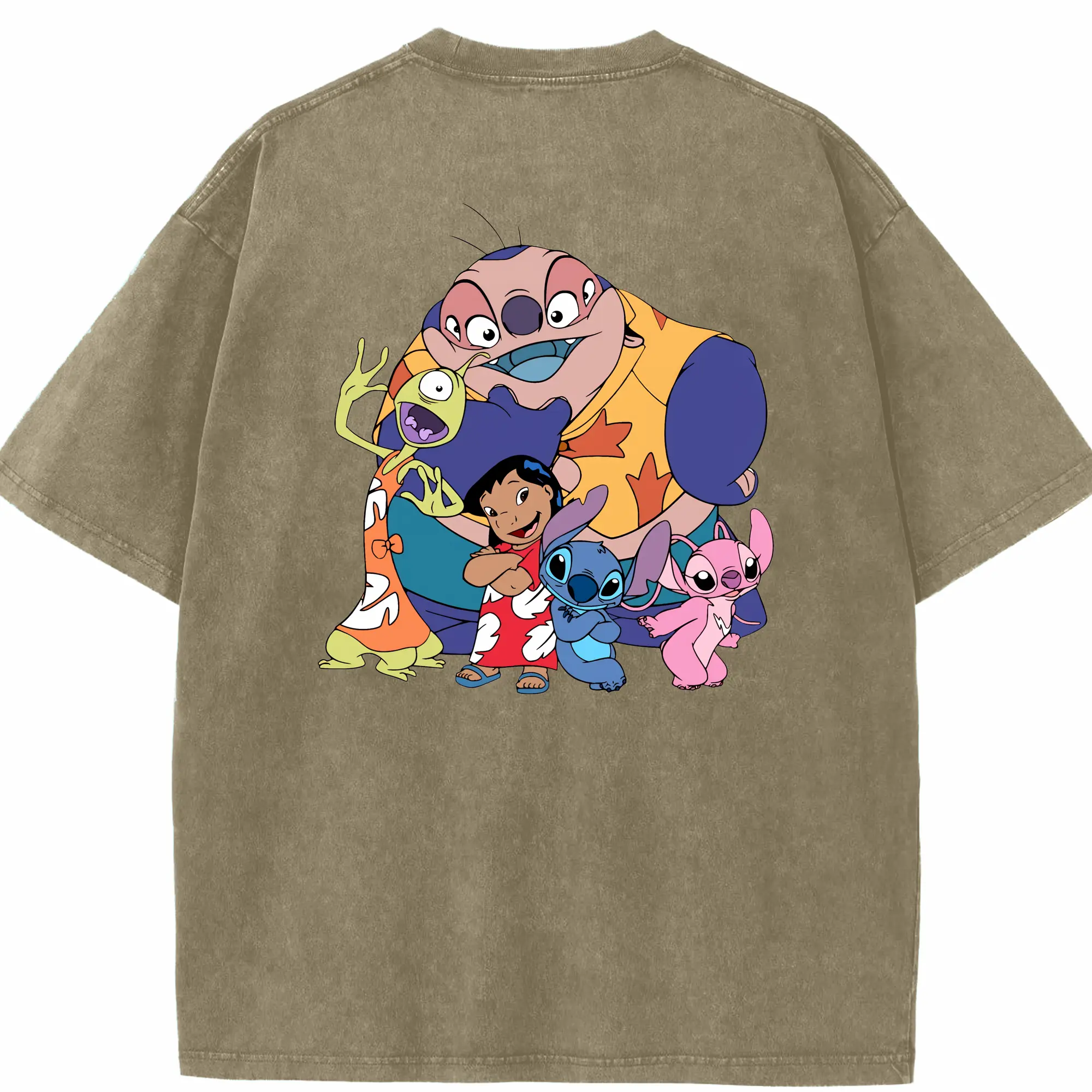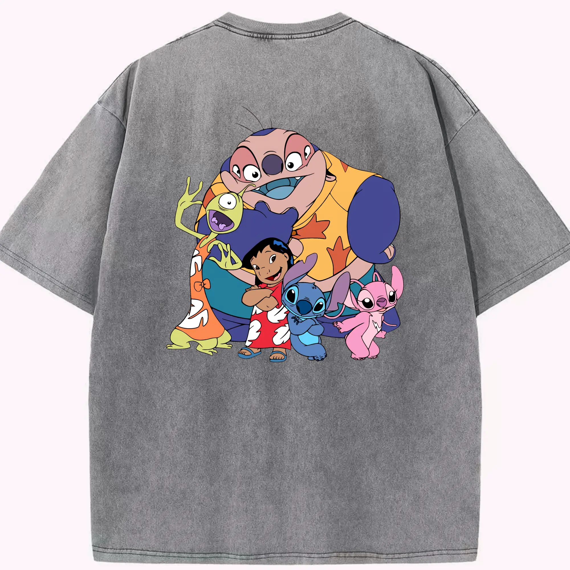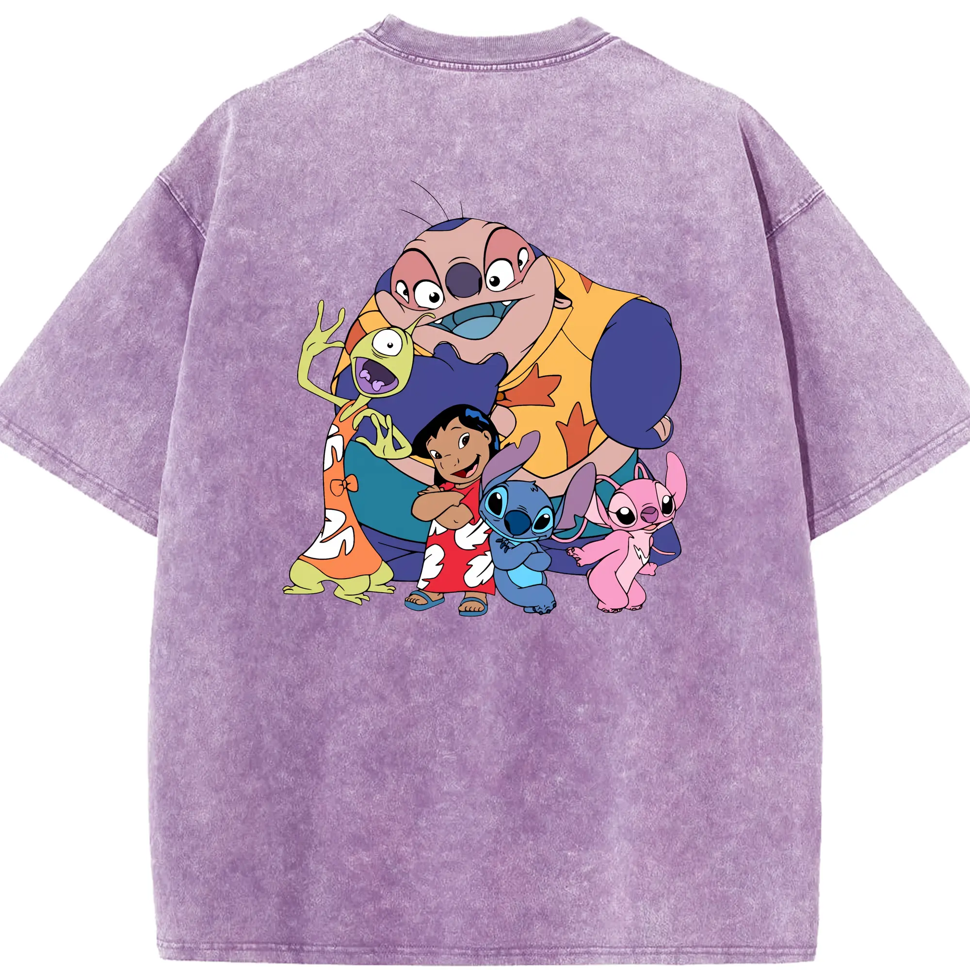 リロ&スティッチ グッズ エンジェル - 綿100% ヴィンテージ風 半袖Tシャツ ・ 背面プリント ・ 柔らか肌触り ・ 通気性 快適 ・ スポーツ カジュアル 外出用