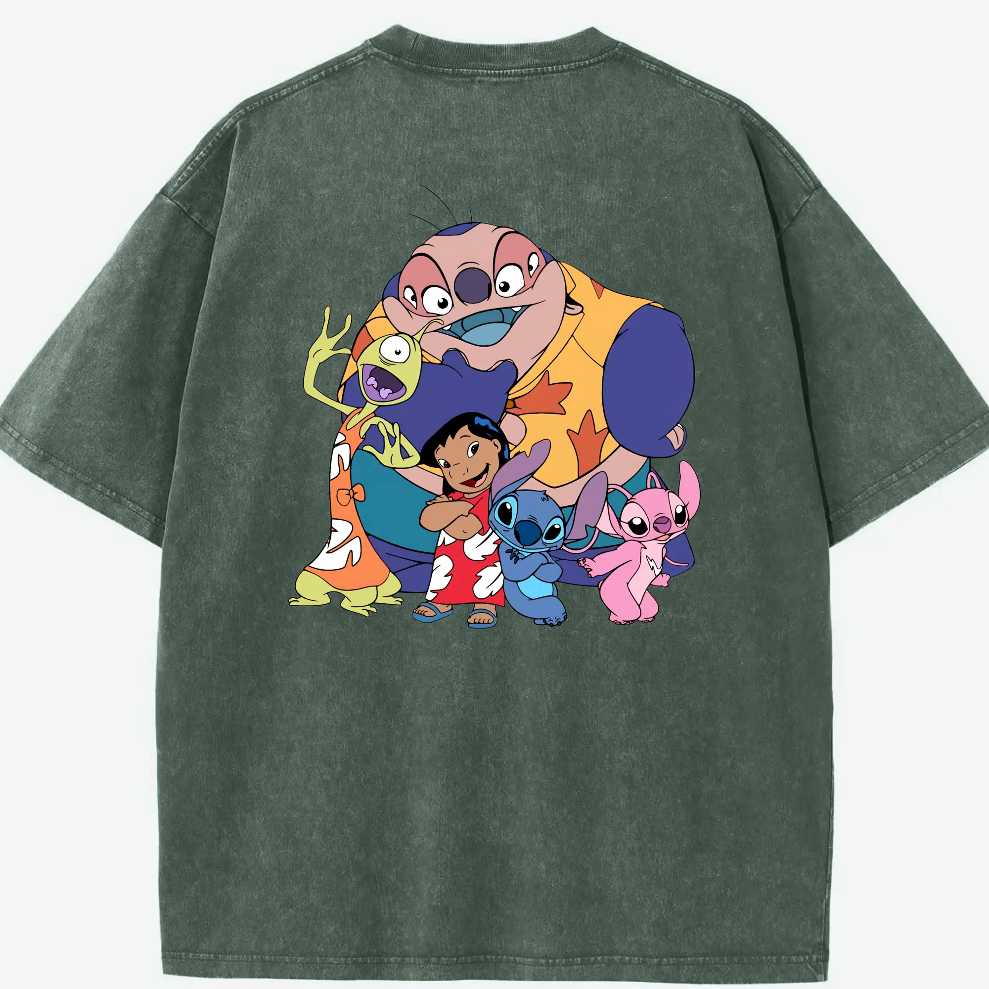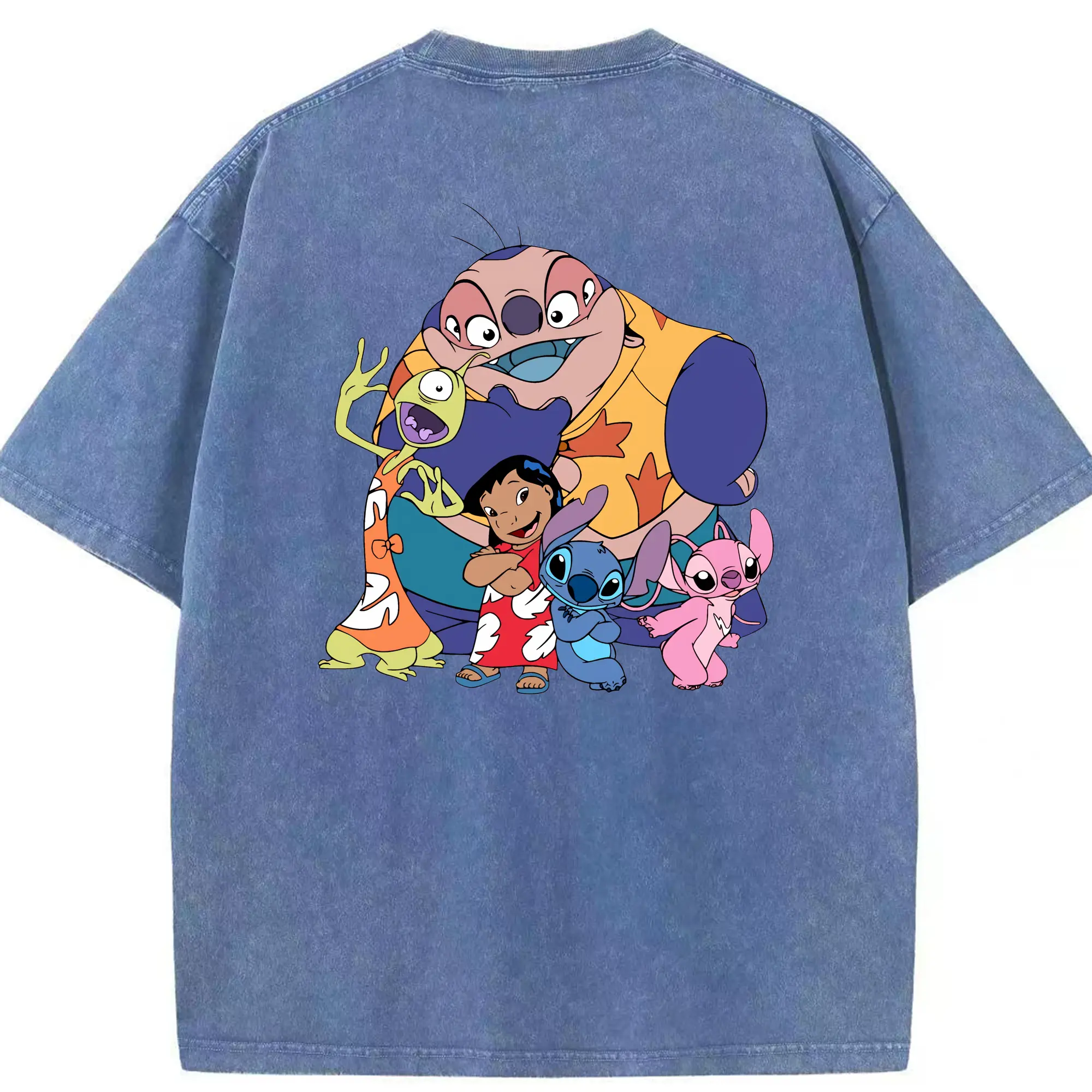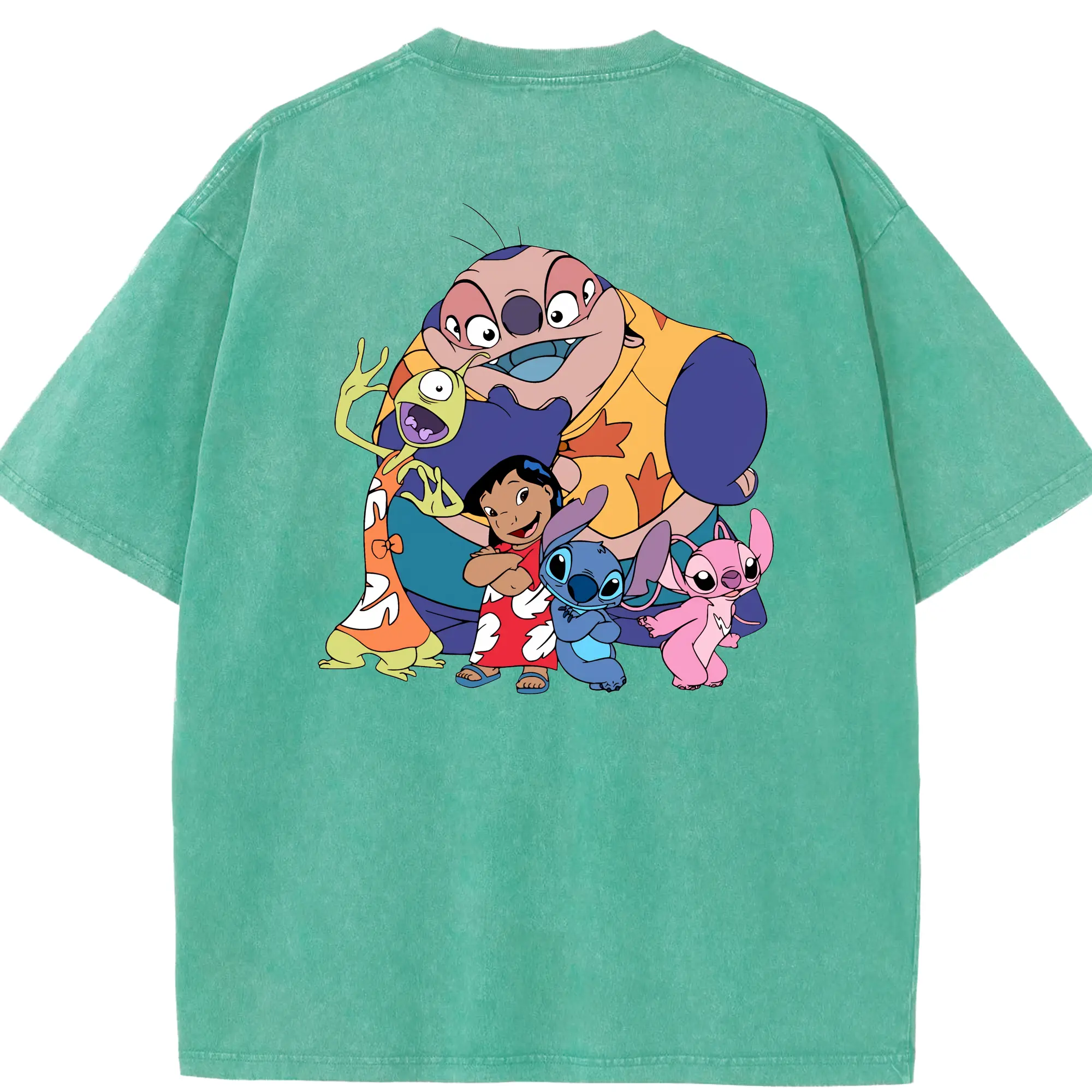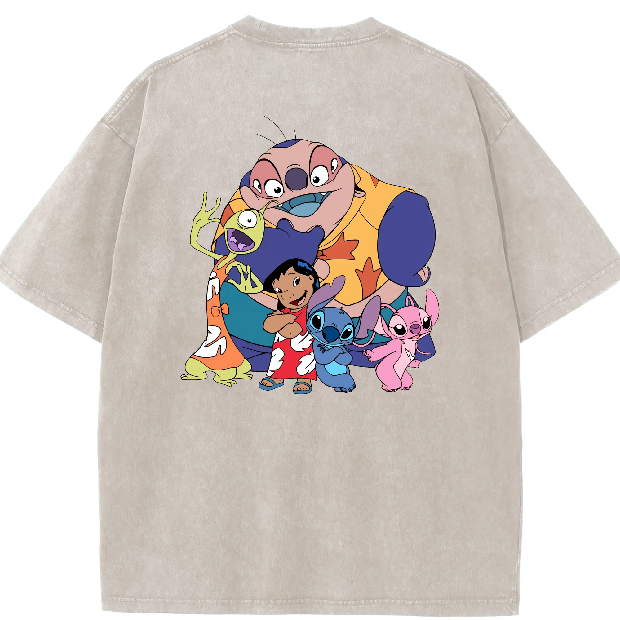 リロ&スティッチ グッズ エンジェル - 綿100% ヴィンテージ風 半袖Tシャツ ・ 背面プリント ・ 柔らか肌触り ・ 通気性 快適 ・ スポーツ カジュアル 外出用