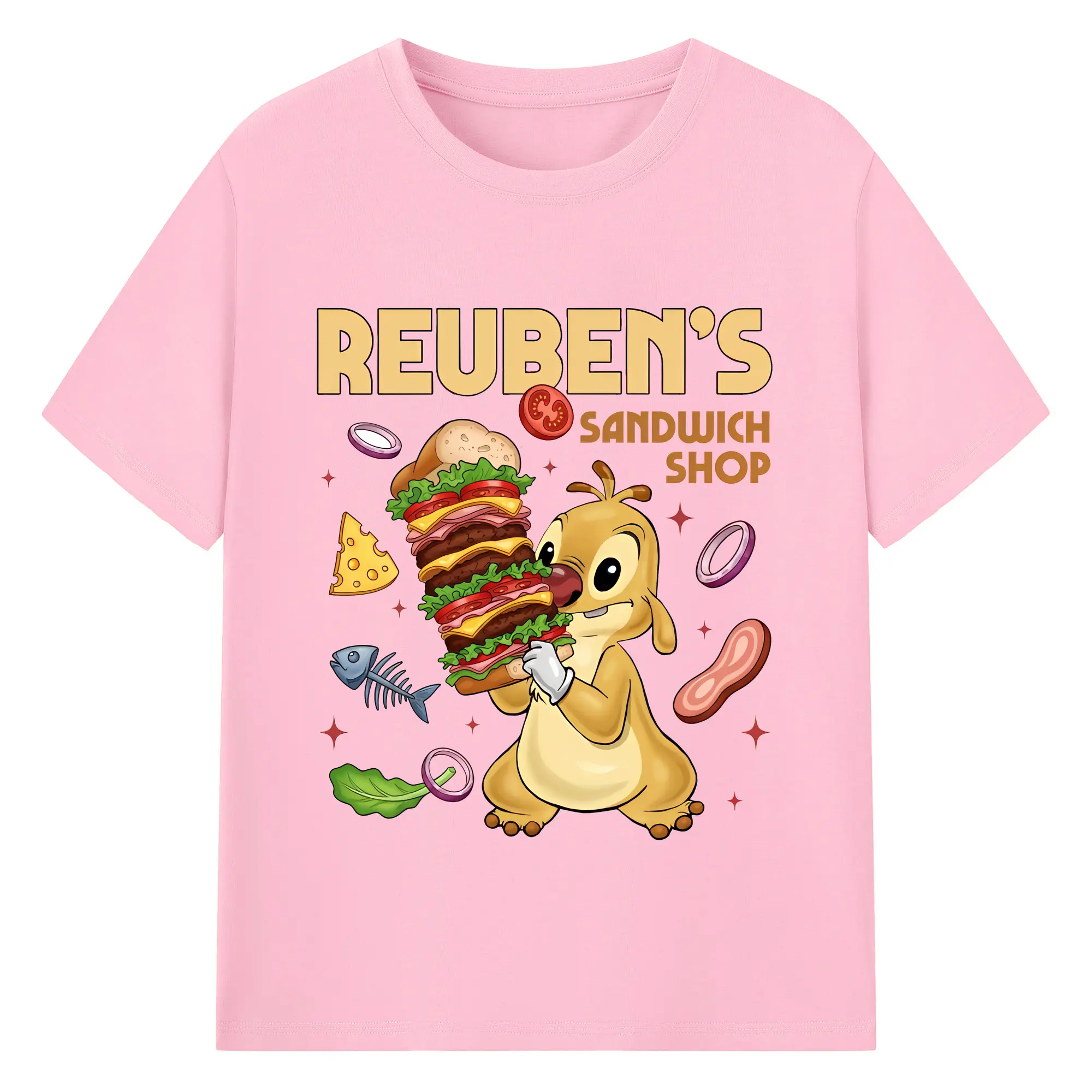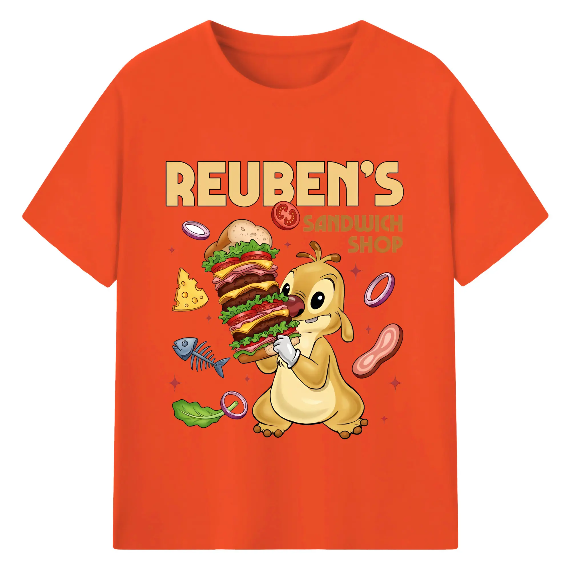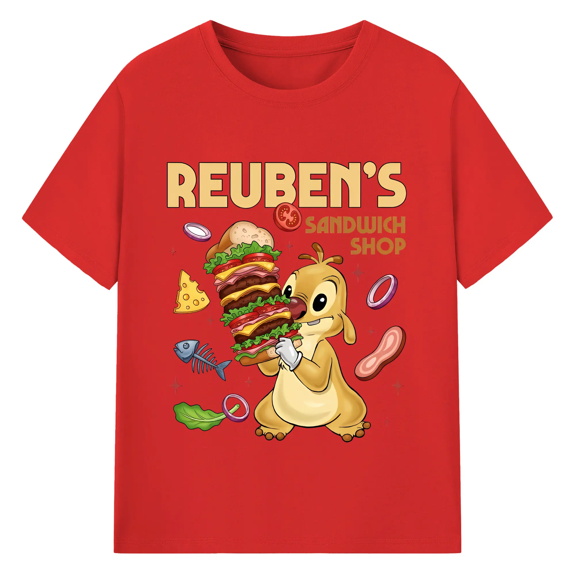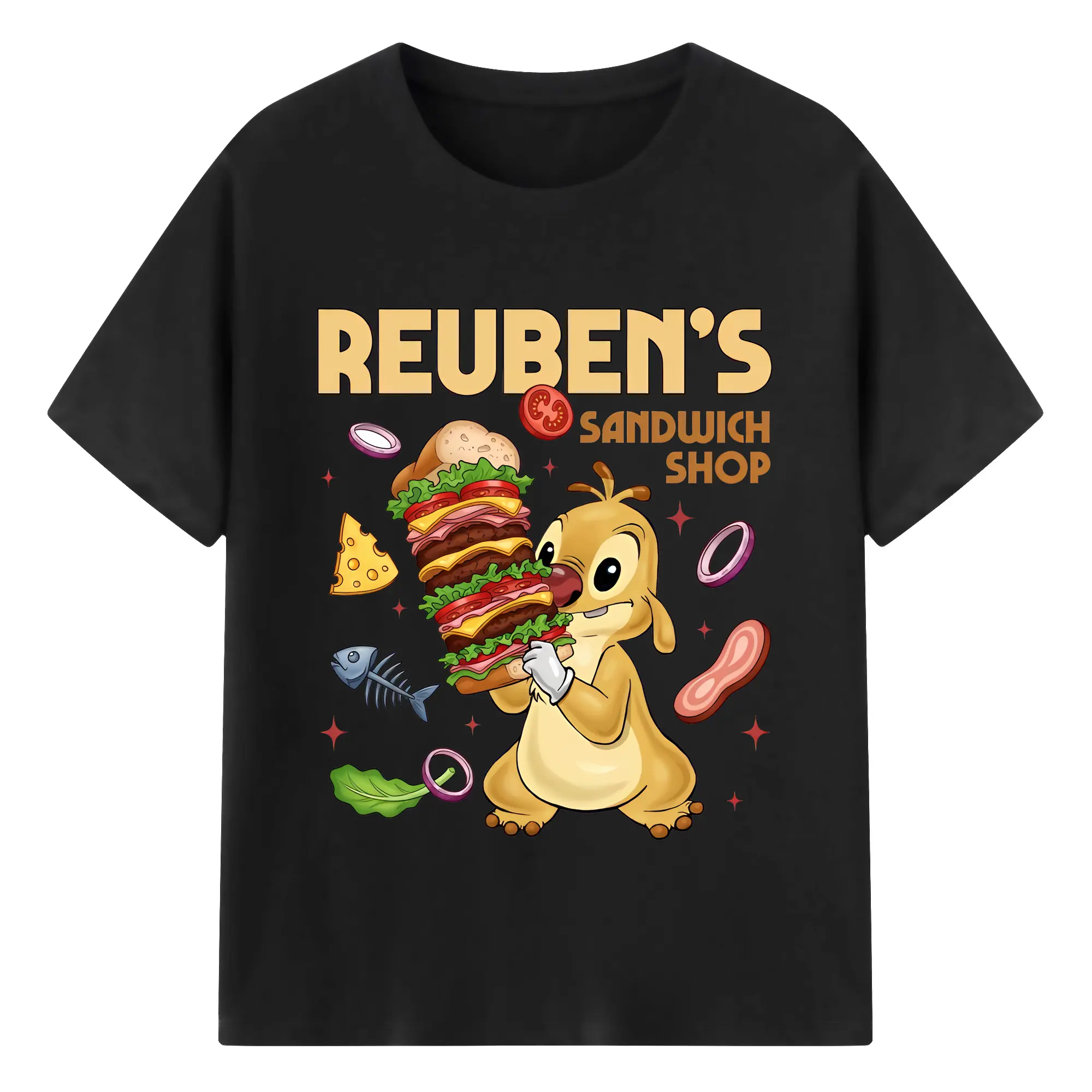 リロ&スティッチ グッズ ルーベン - 綿100% 半袖Tシャツ ・ バックプリント ・ 快適 通気性 ・ 日常使い 散歩 スポーツ用