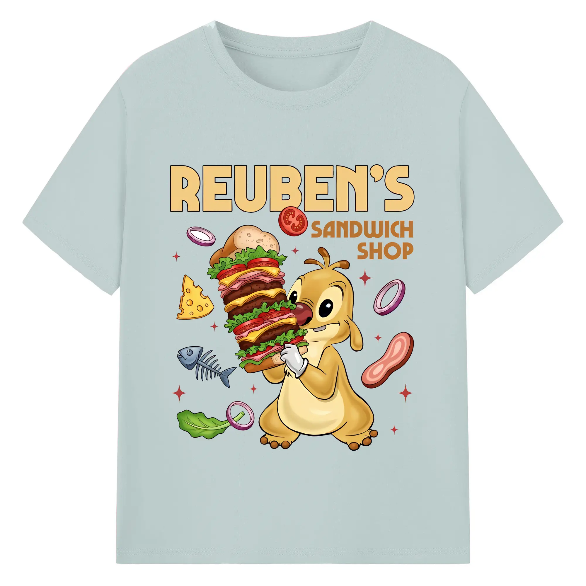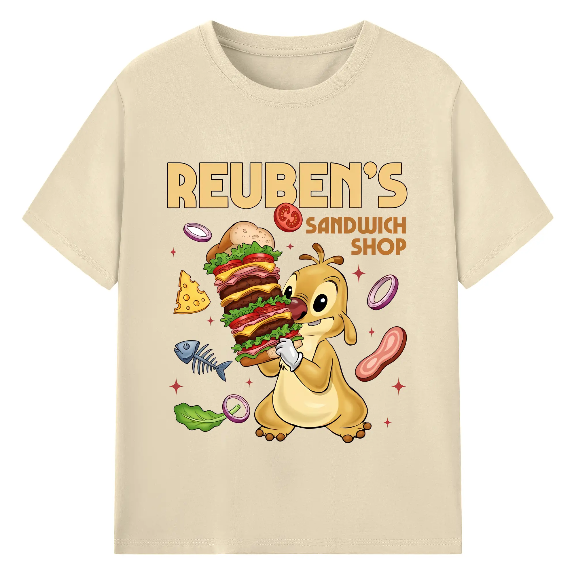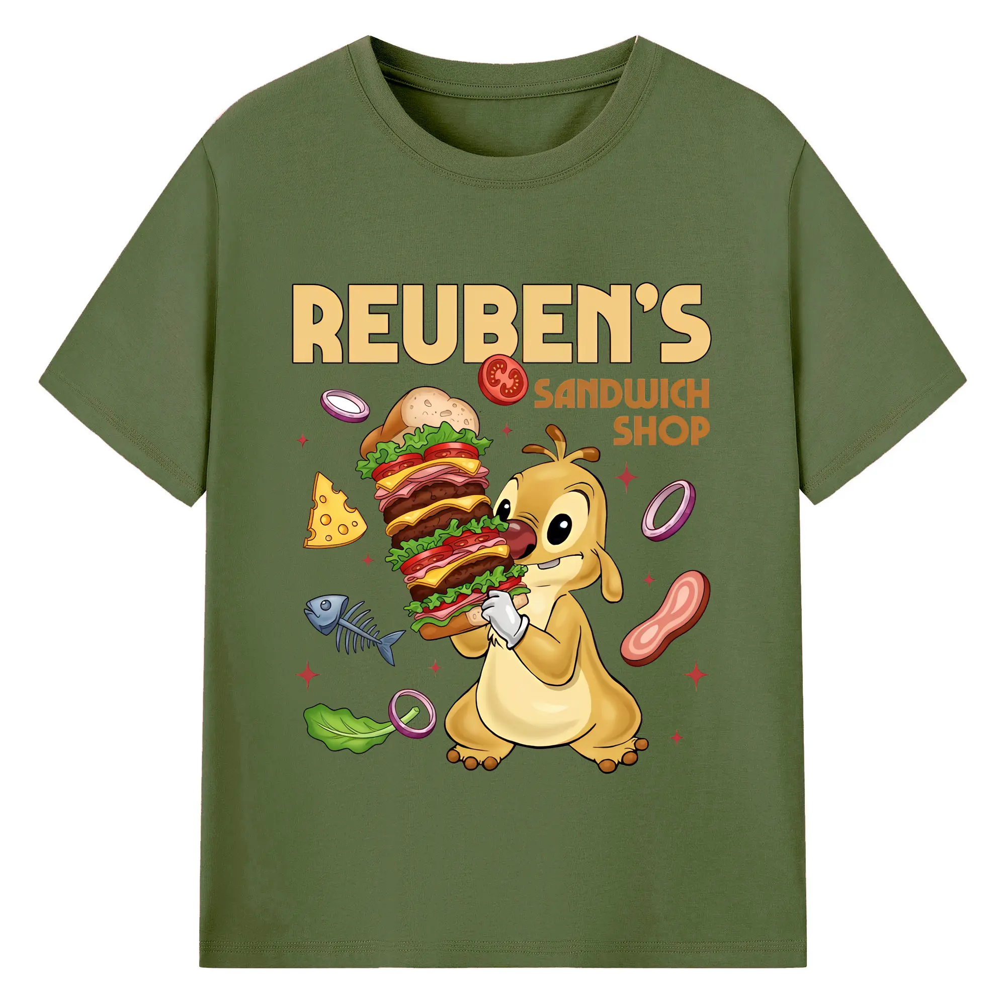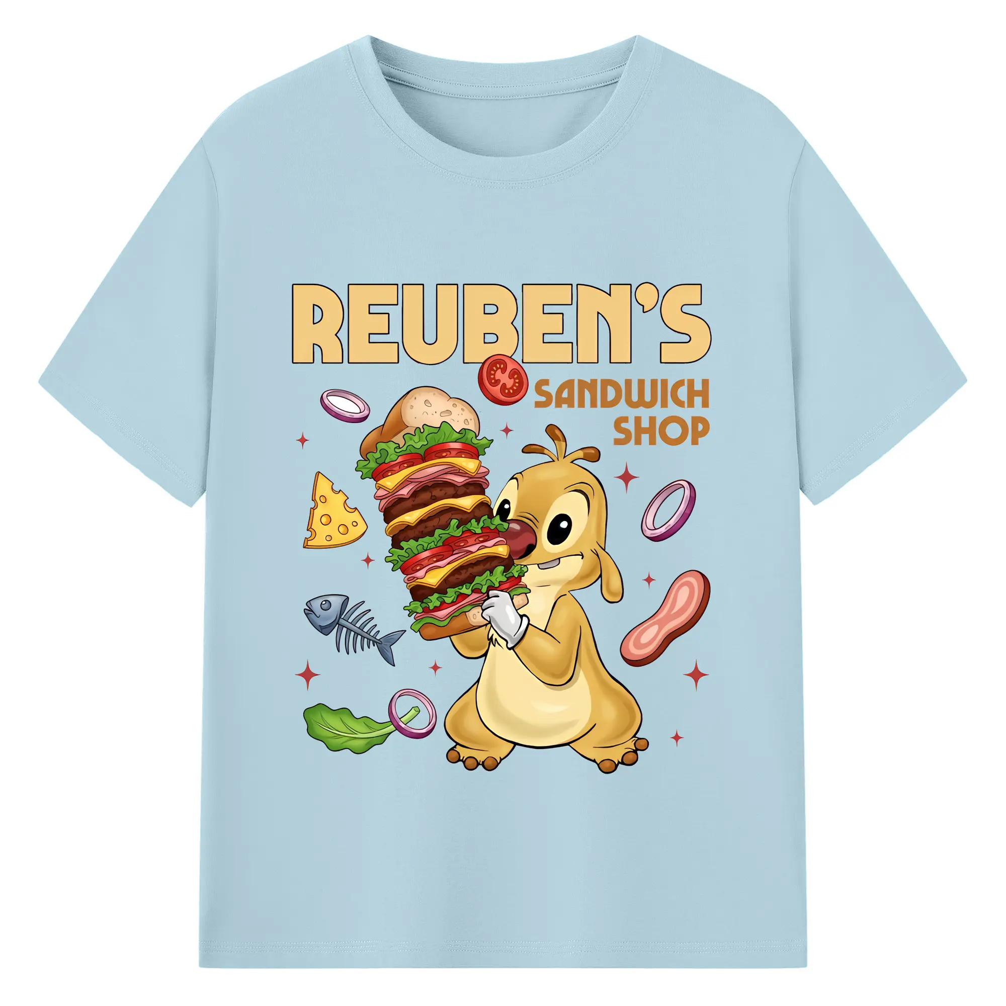 リロ&スティッチ グッズ ルーベン - 綿100% 半袖Tシャツ ・ バックプリント ・ 快適 通気性 ・ 日常使い 散歩 スポーツ用