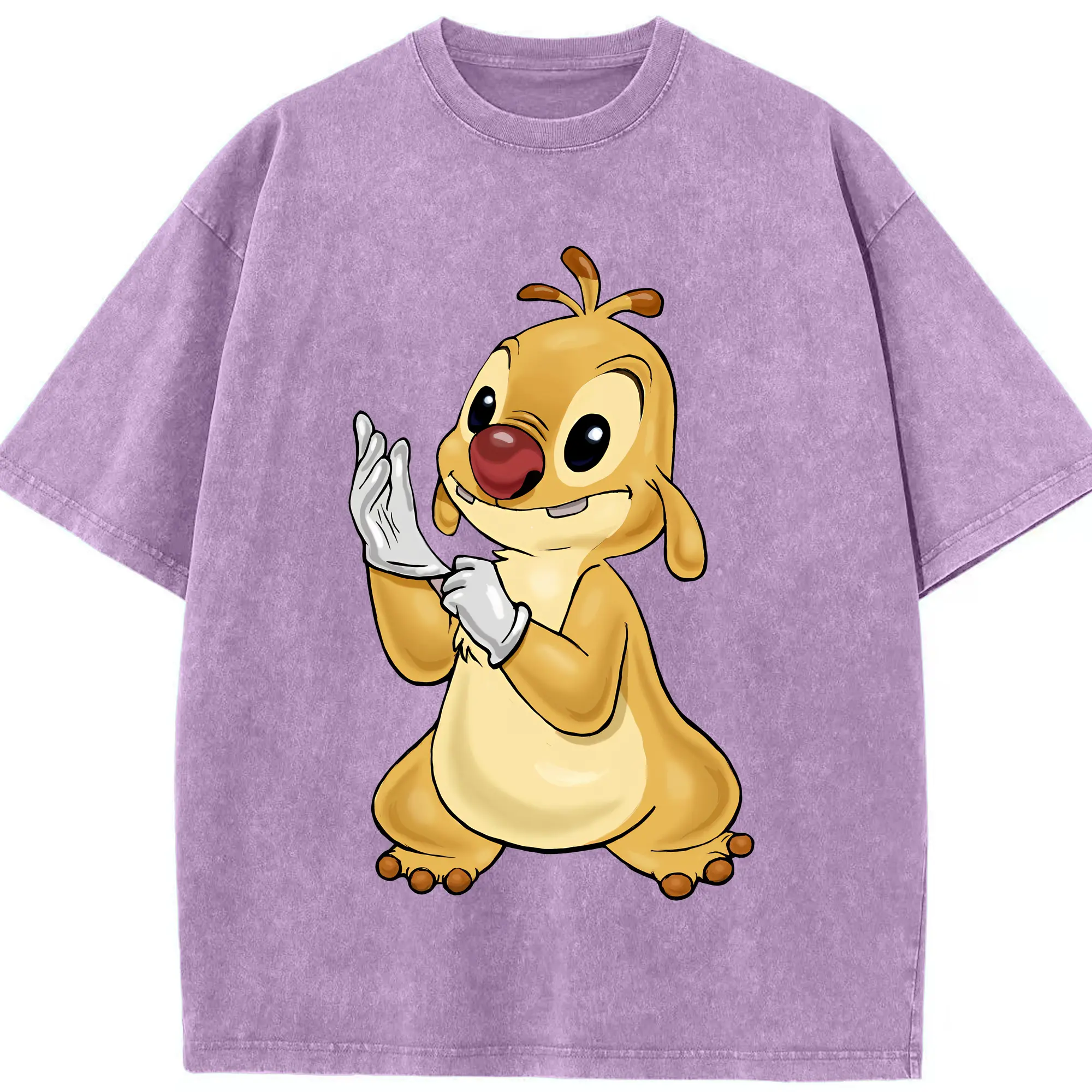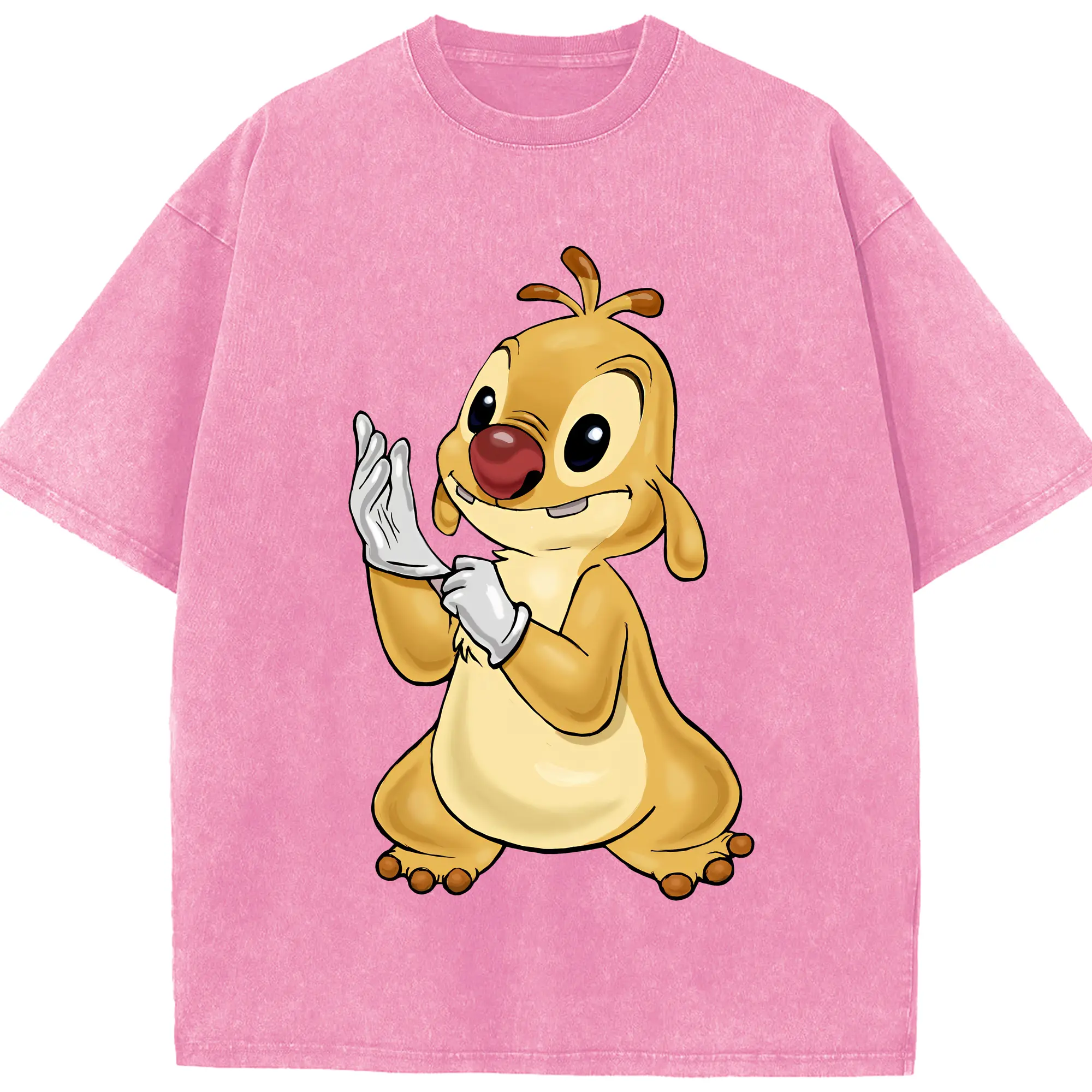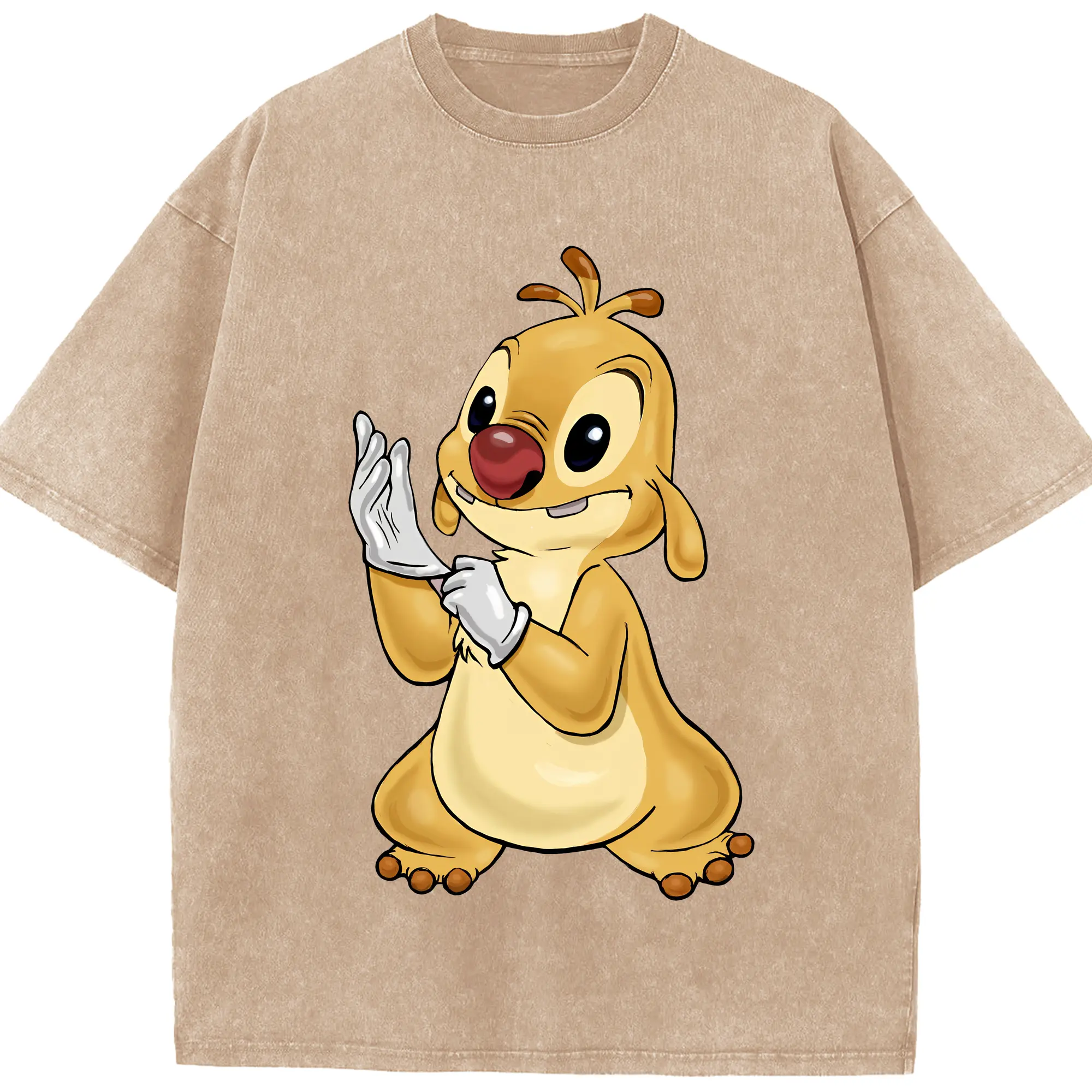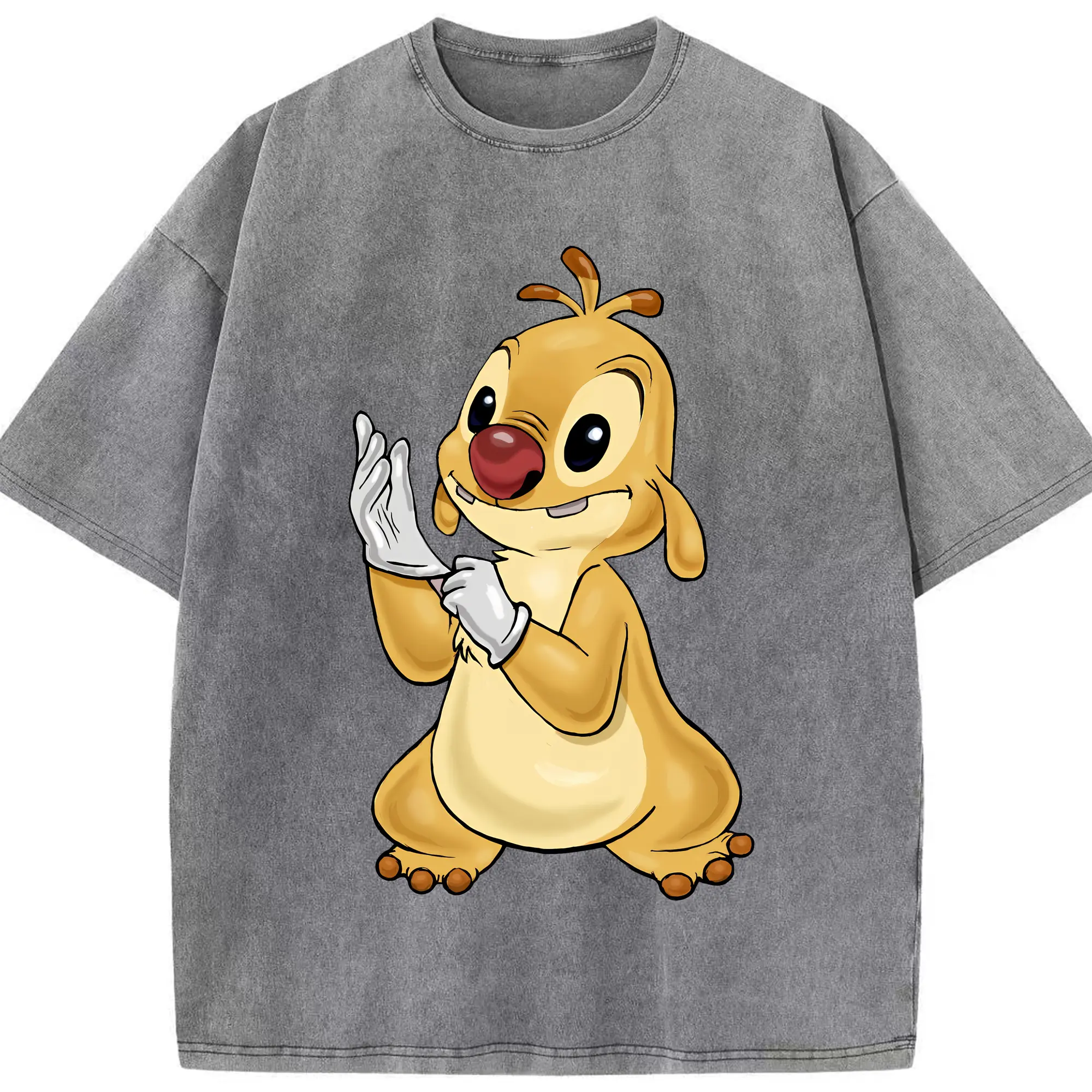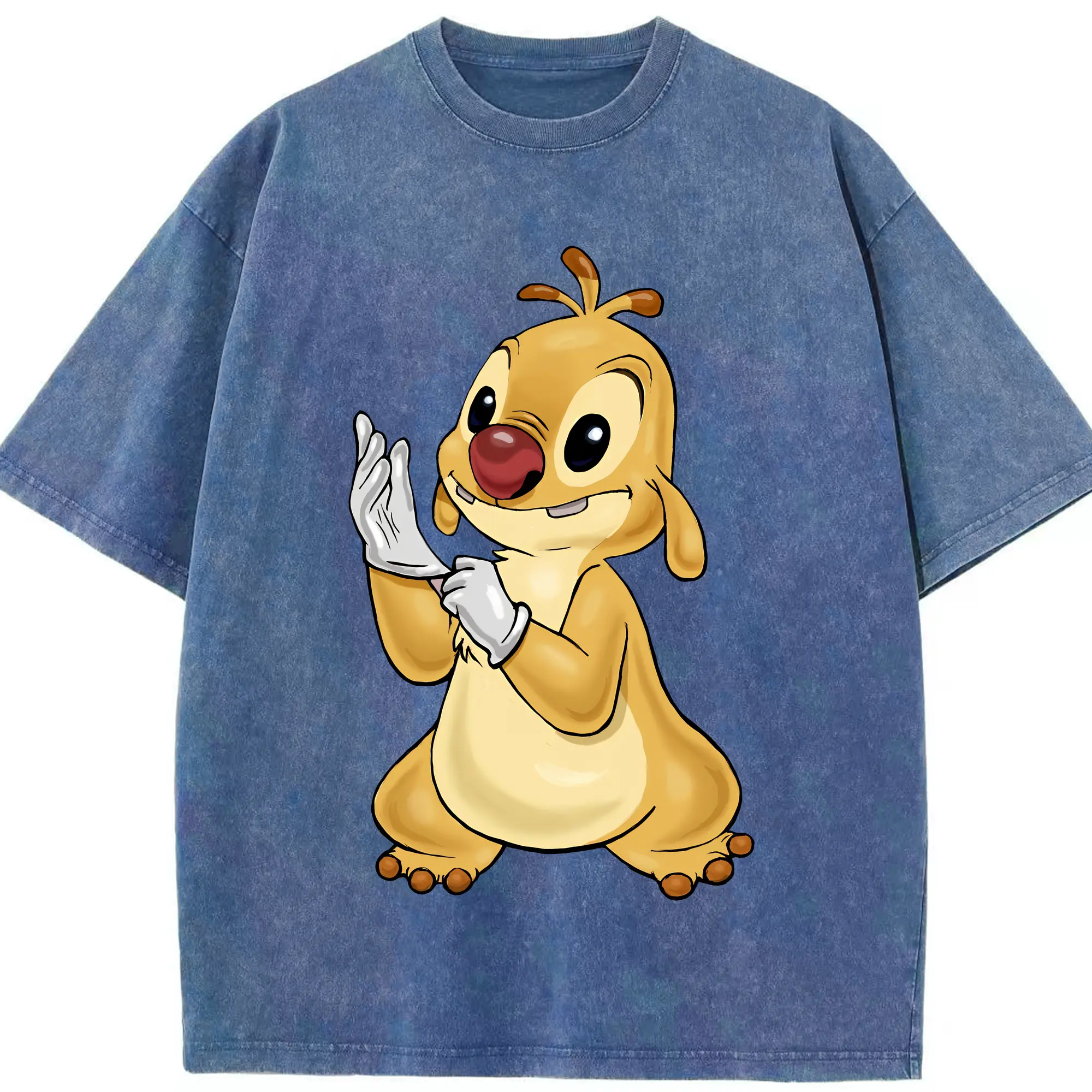 リロ&スティッチ グッズ ルーベン - 綿100% ヴィンテージ風 半袖Tシャツ ・ 背面プリント ・ 柔らか肌触り ・ 通気性 快適 ・ スポーツ カジュアル 外出用