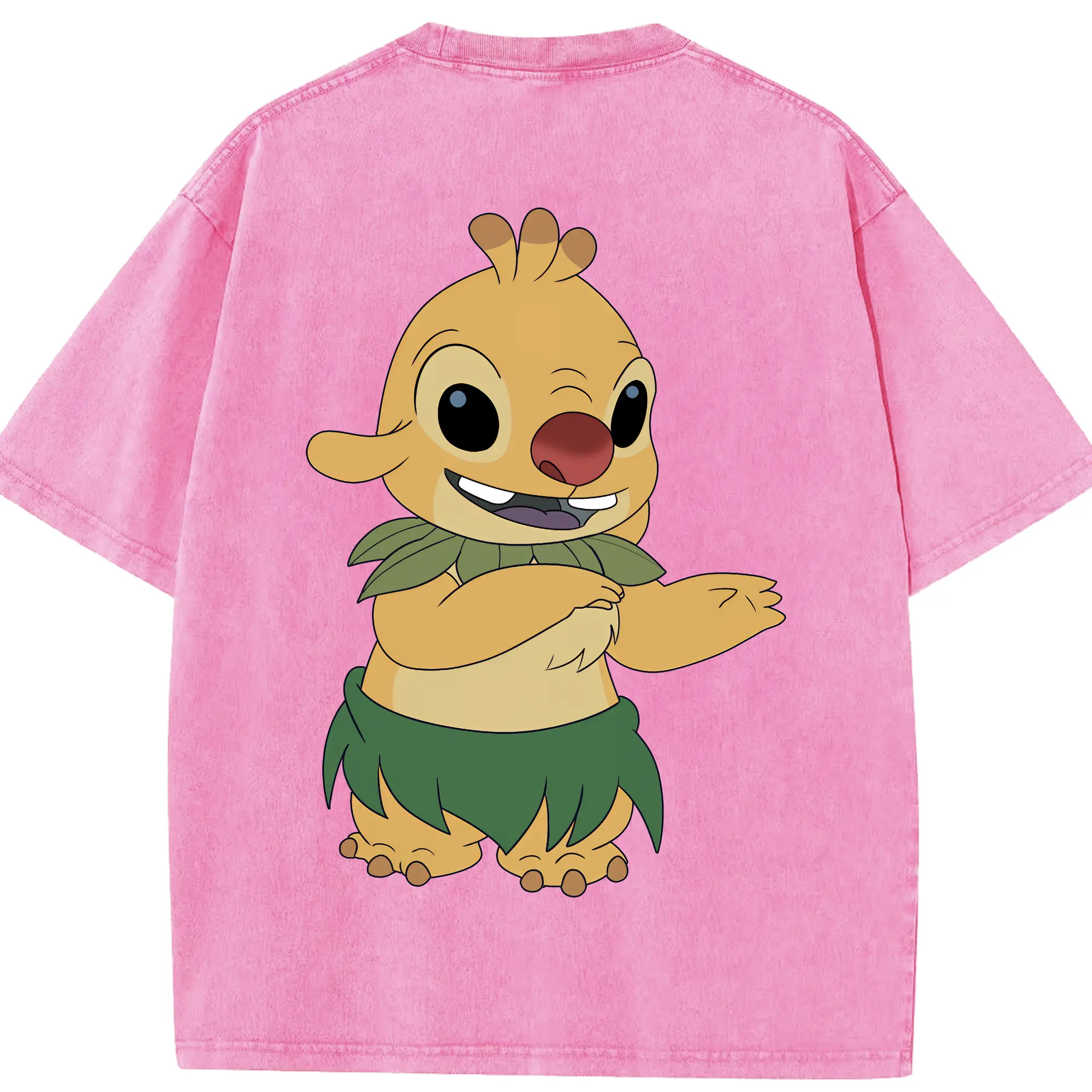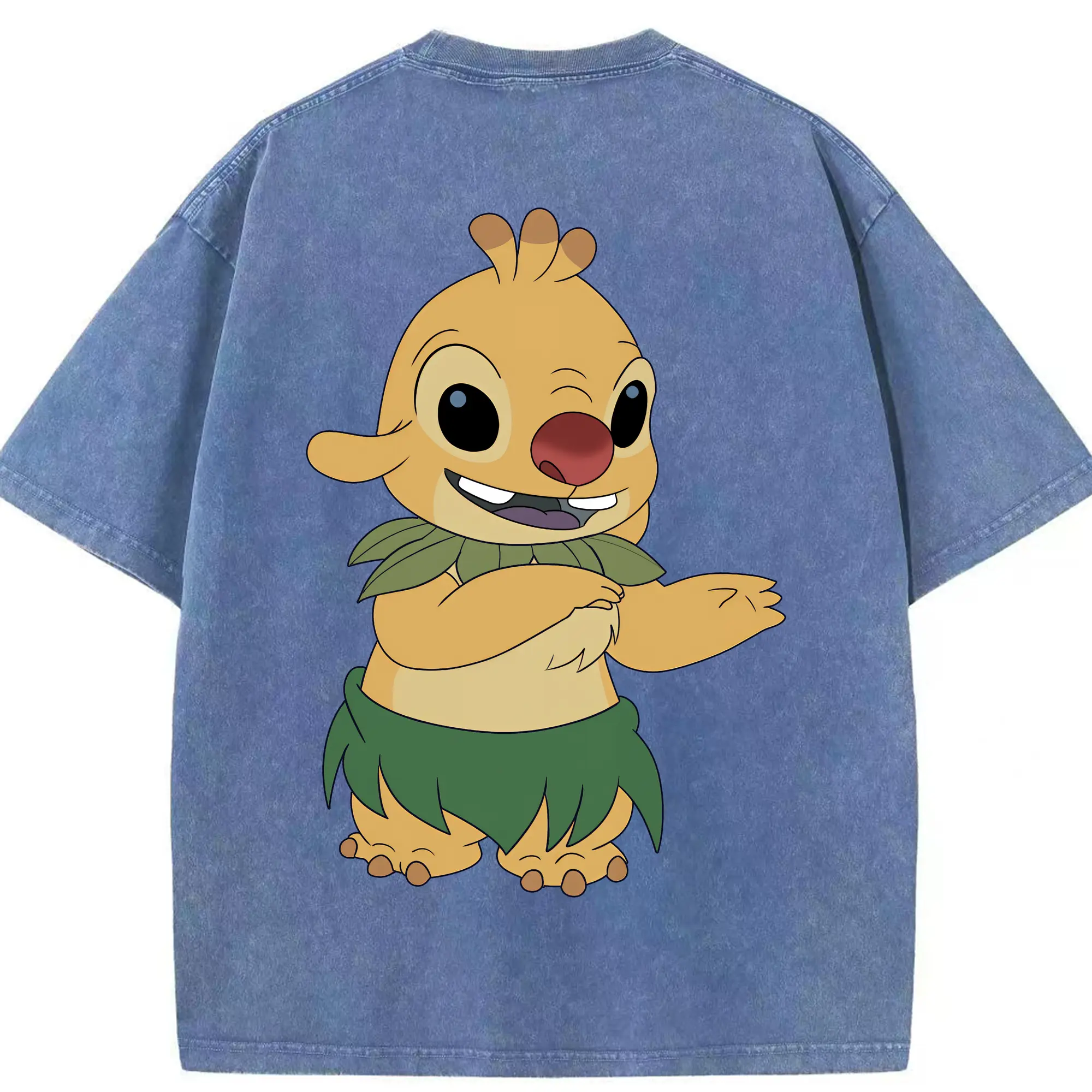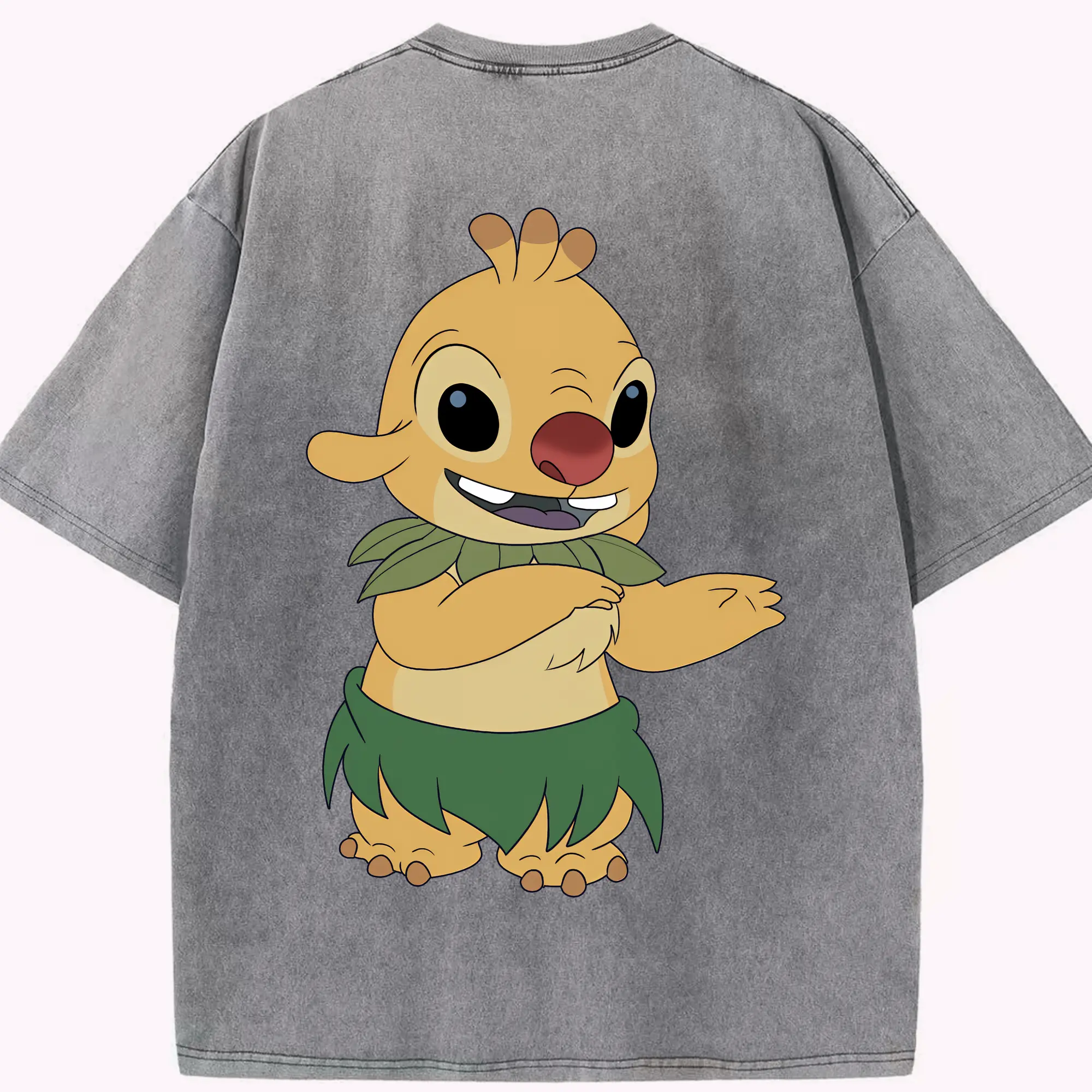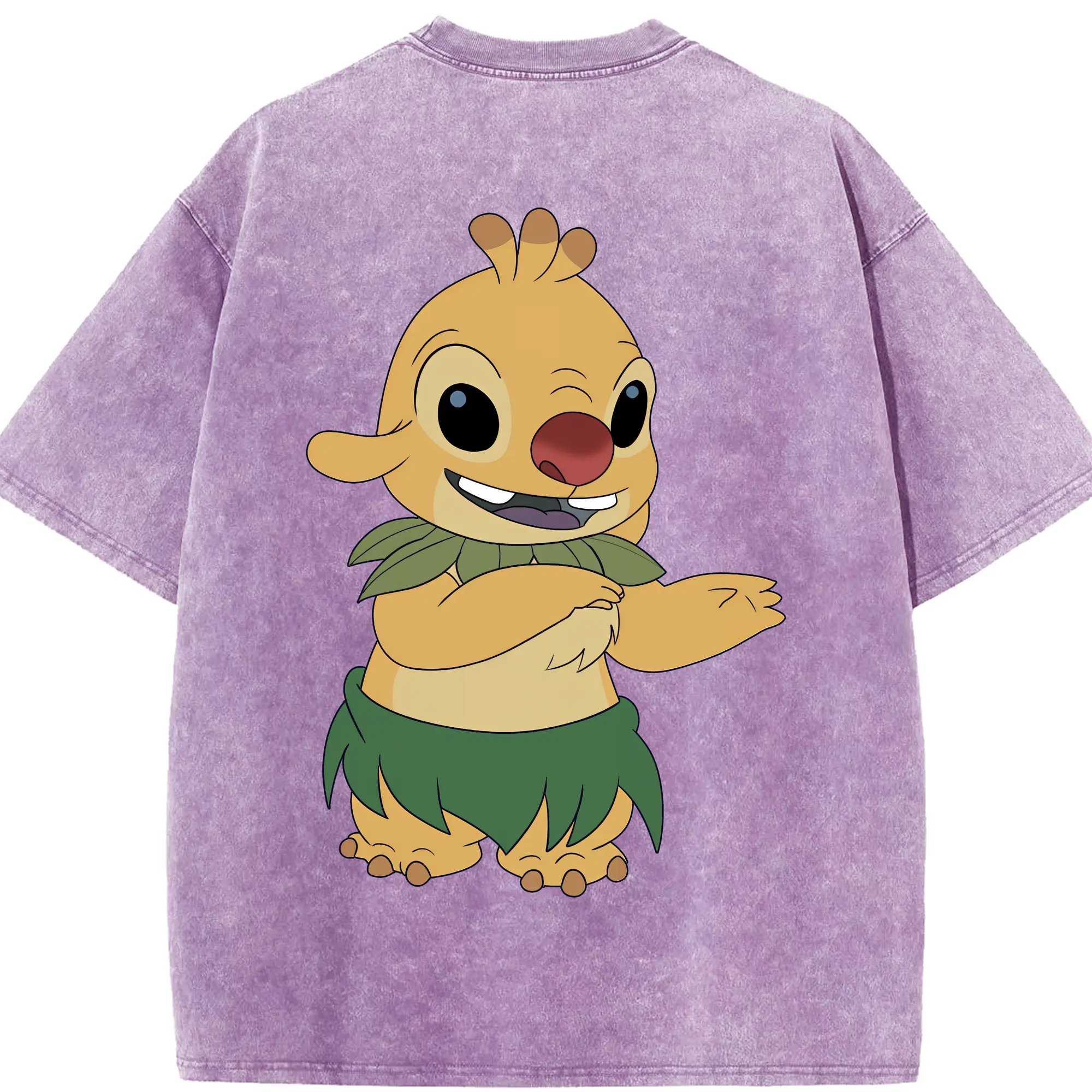 リロ&スティッチ グッズ ルーベン - 綿100% ヴィンテージ風 半袖Tシャツ ・ フロントプリント ・ 柔らか肌触り ・ 通気性 快適 ・ スポーツ カジュアル 外出用