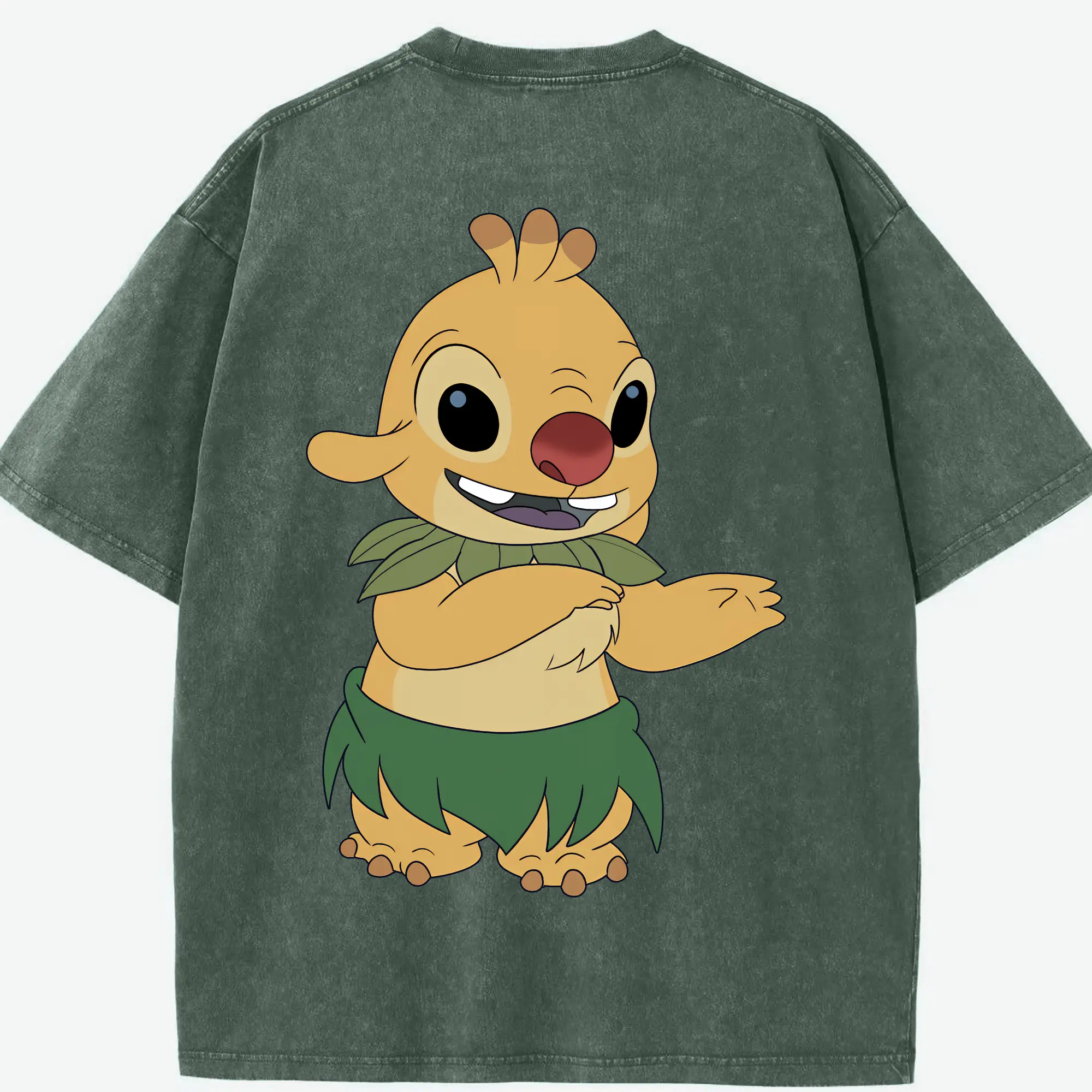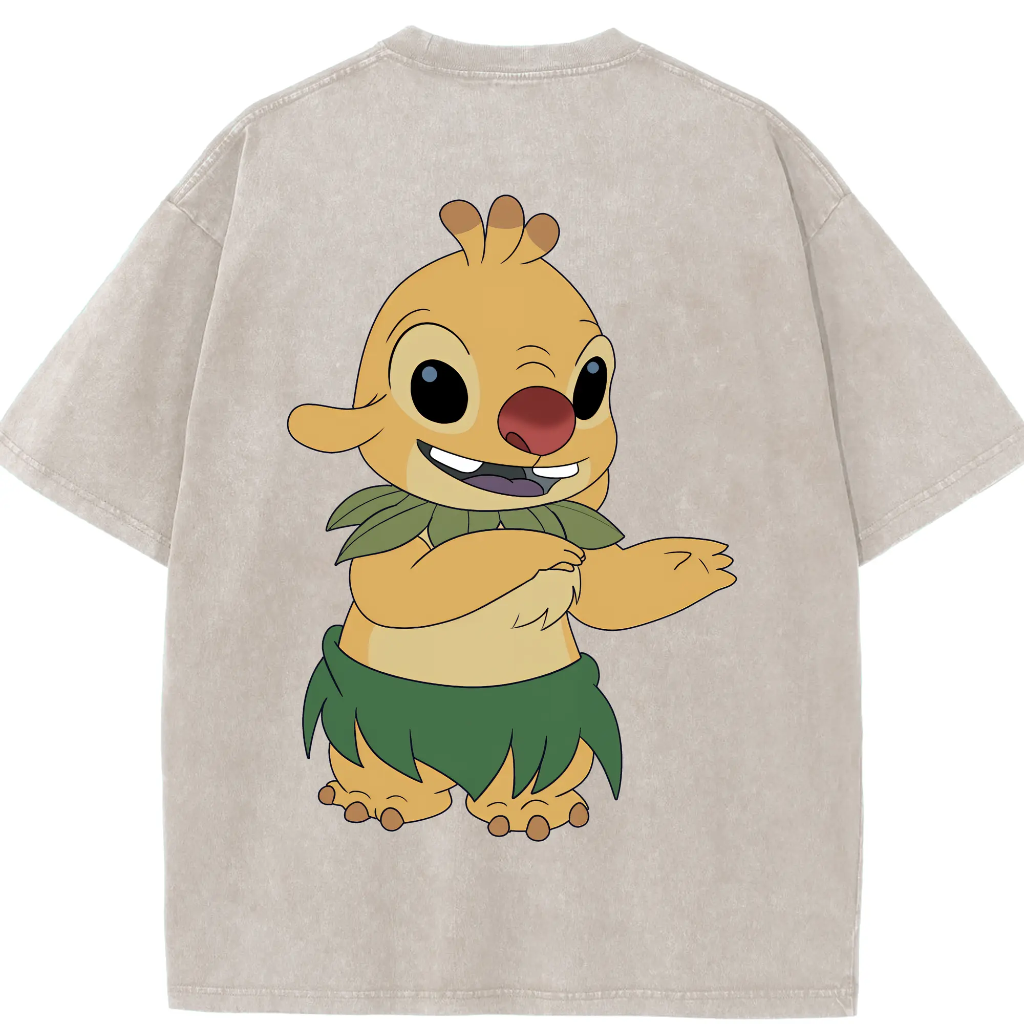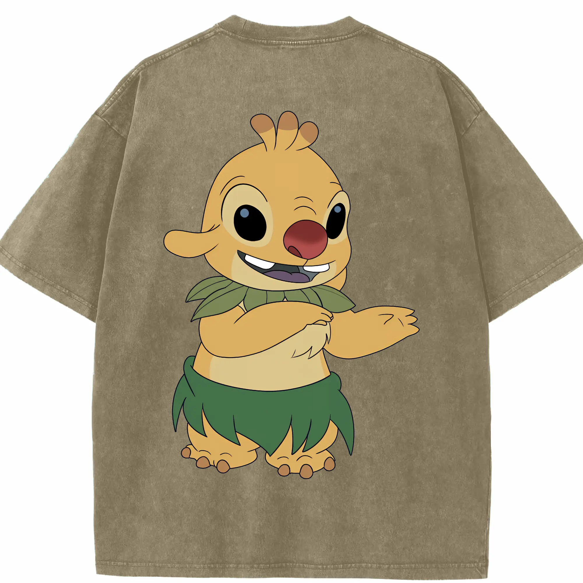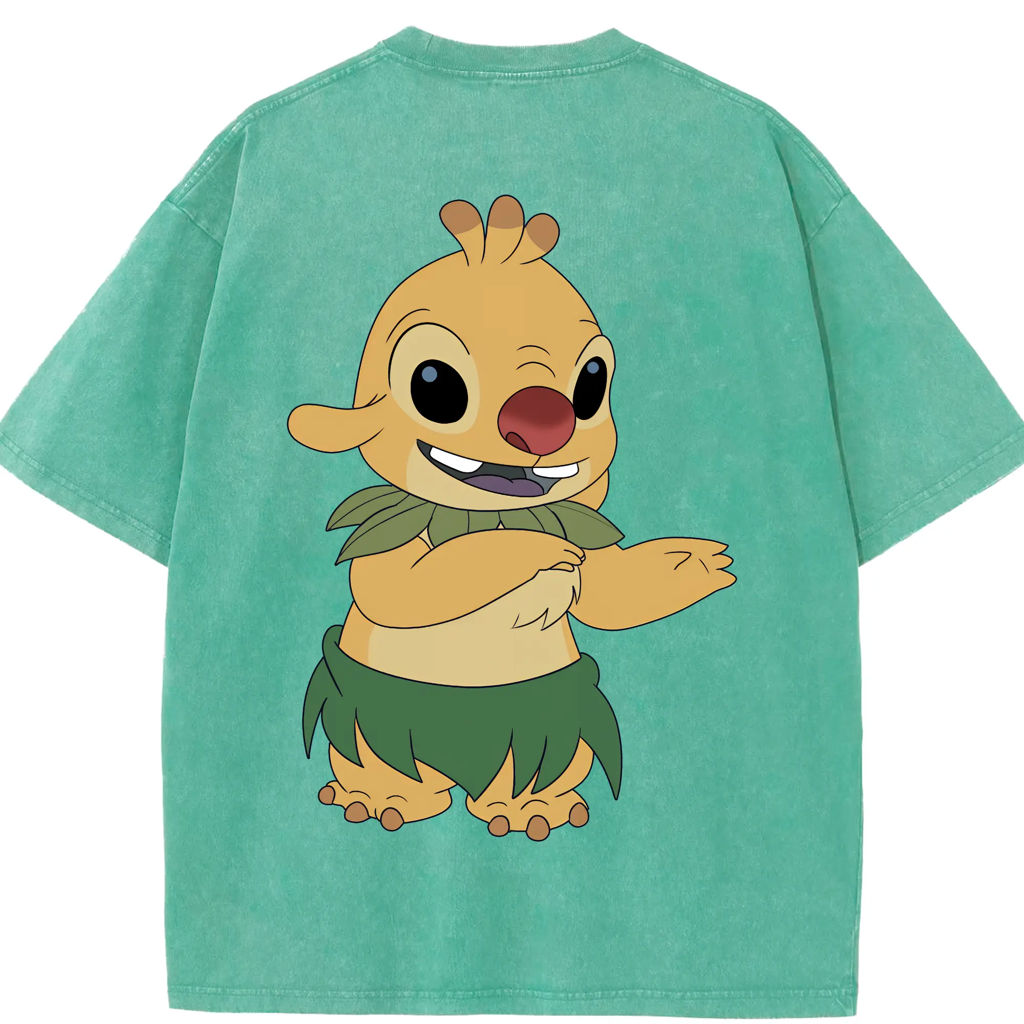 リロ&スティッチ グッズ ルーベン - 綿100% ヴィンテージ風 半袖Tシャツ ・ フロントプリント ・ 柔らか肌触り ・ 通気性 快適 ・ スポーツ カジュアル 外出用
