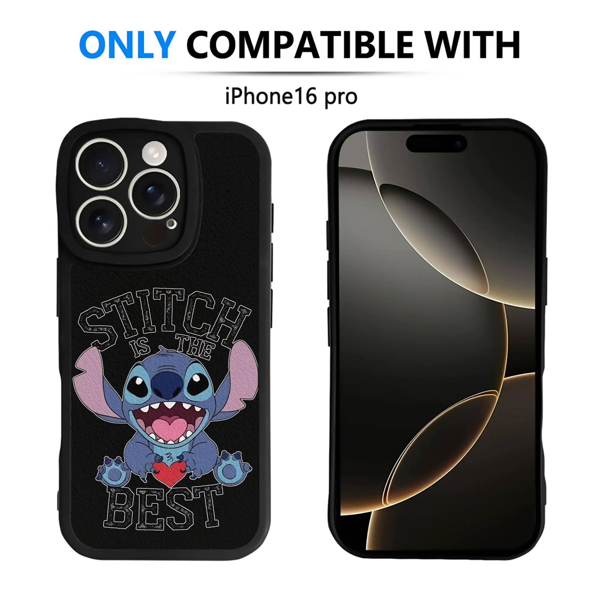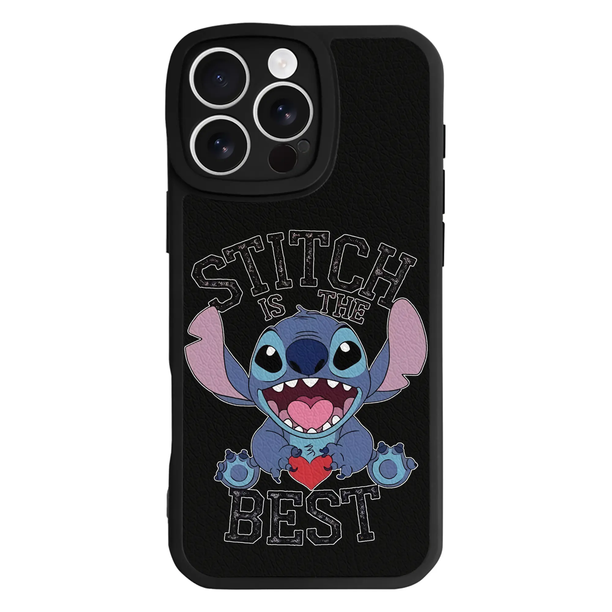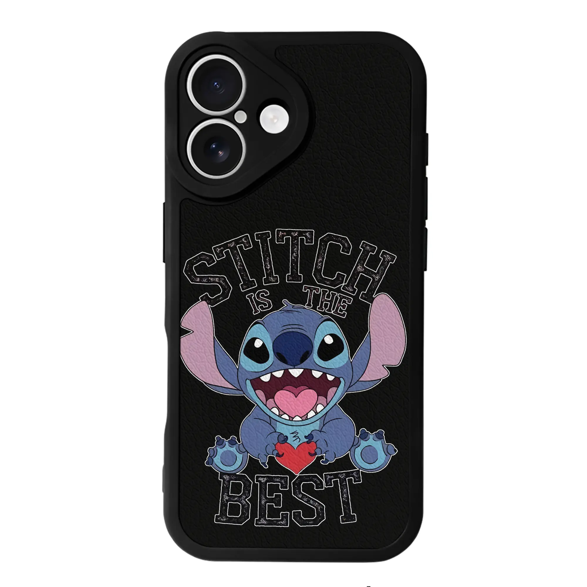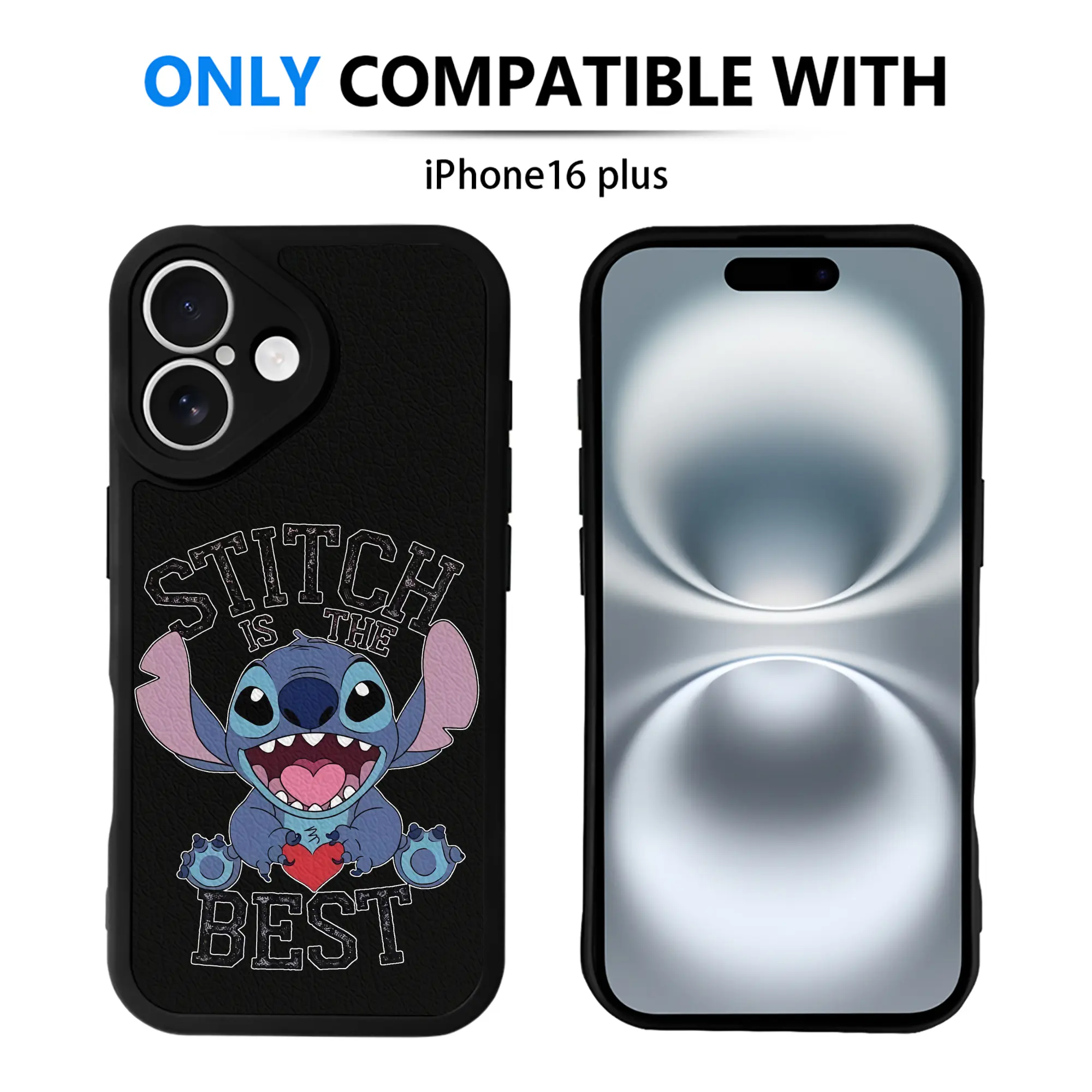 リロ&スティッチ グッズ スティッチ - IPhone 16シリーズ対応 ・ シリコンスマホケース ・ レザー調 ・ 高精度フィット ・ 耐衝撃 ・ ワイヤレス充電対応 ・ 精密カット