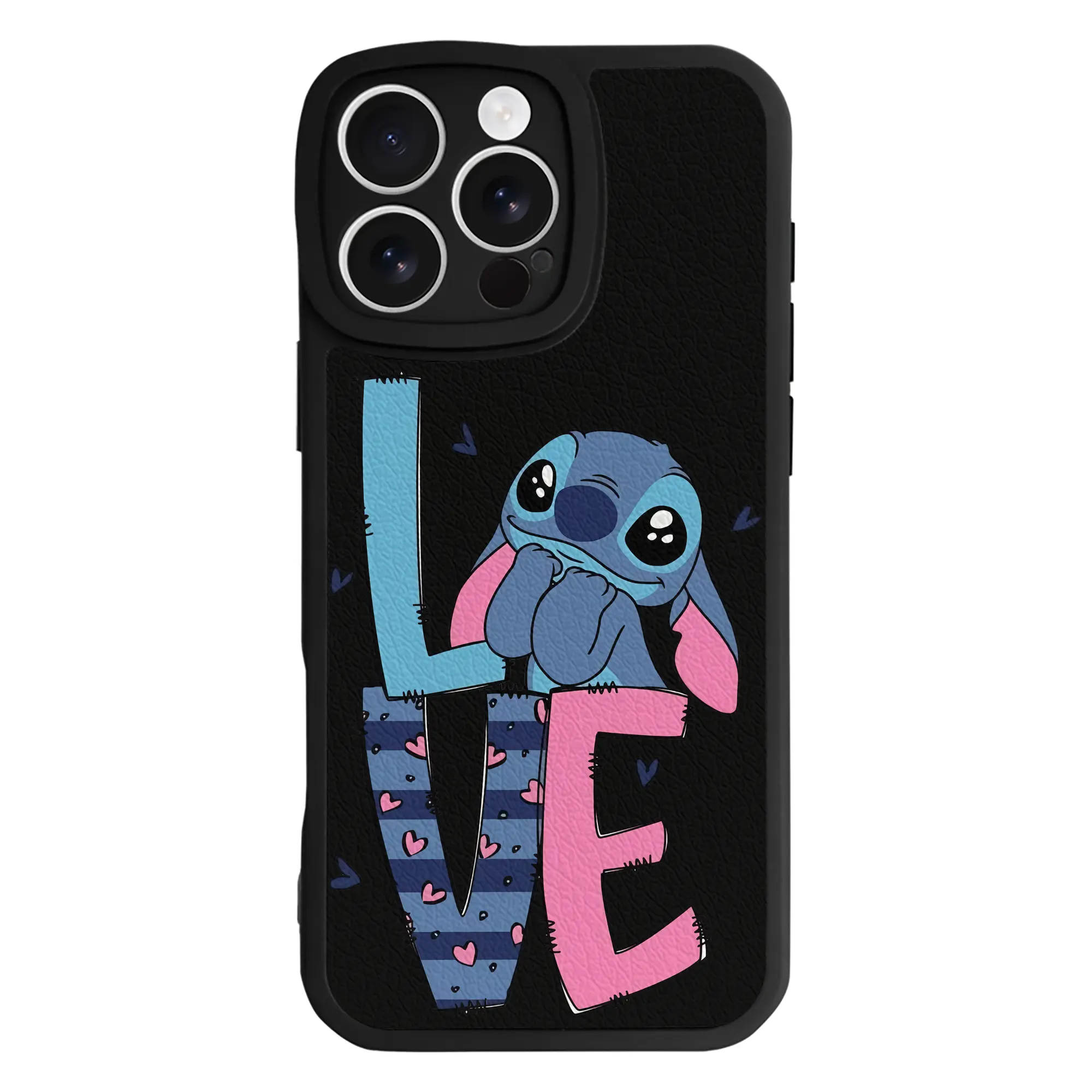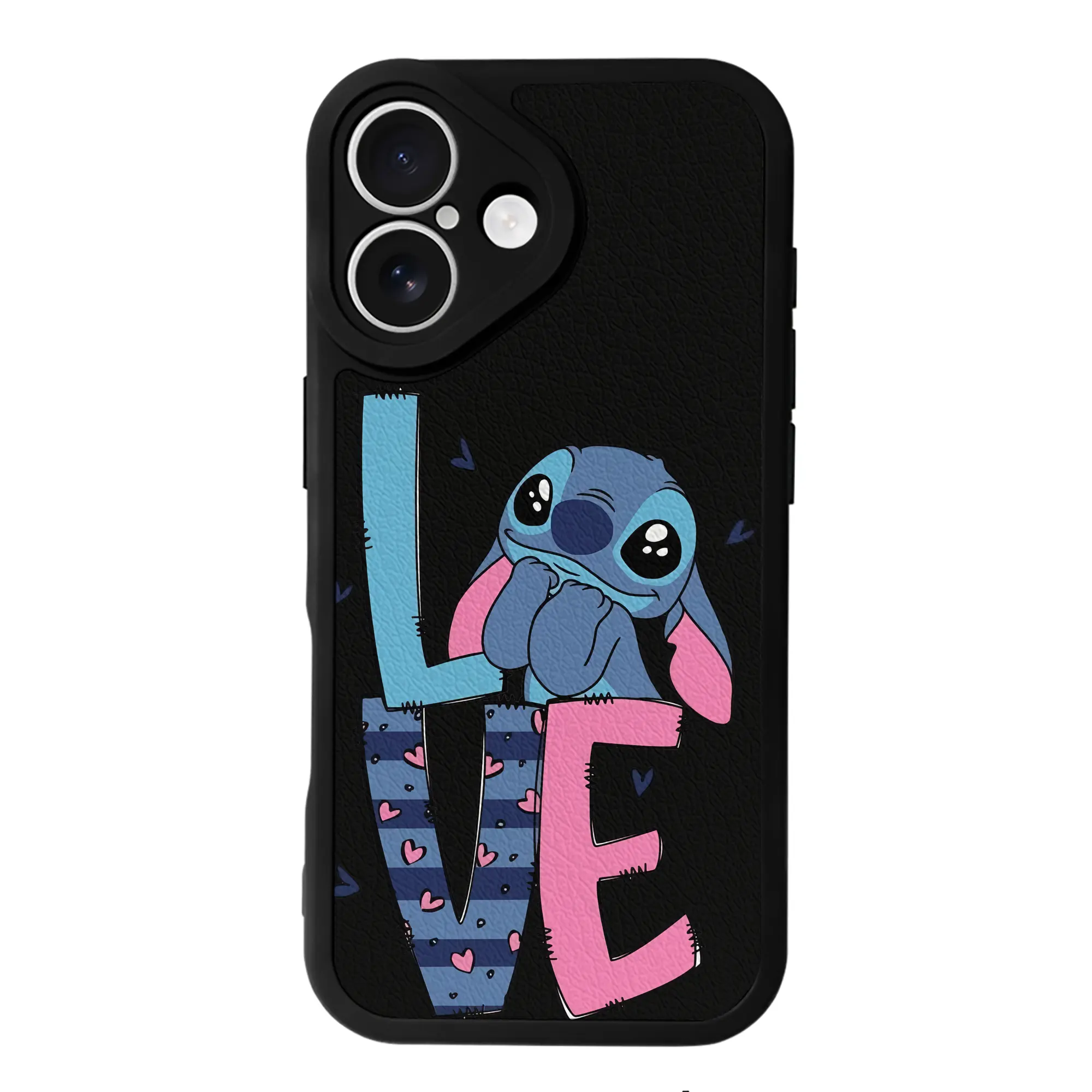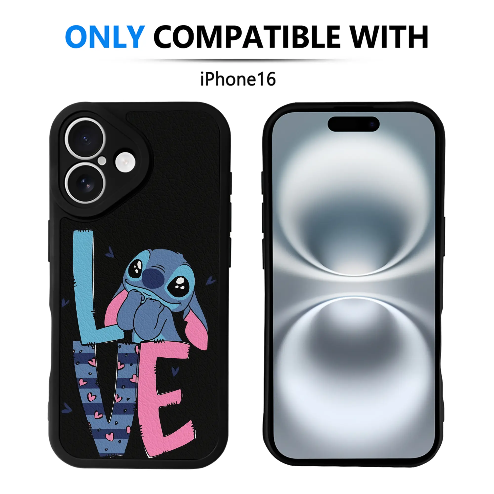 リロ&スティッチ グッズ スティッチ - IPhone 16シリーズ対応 ・ シリコンスマホケース ・ レザー調 ・ 高精度フィット ・ 耐衝撃 ・ ワイヤレス充電対応 ・ 精密カット
