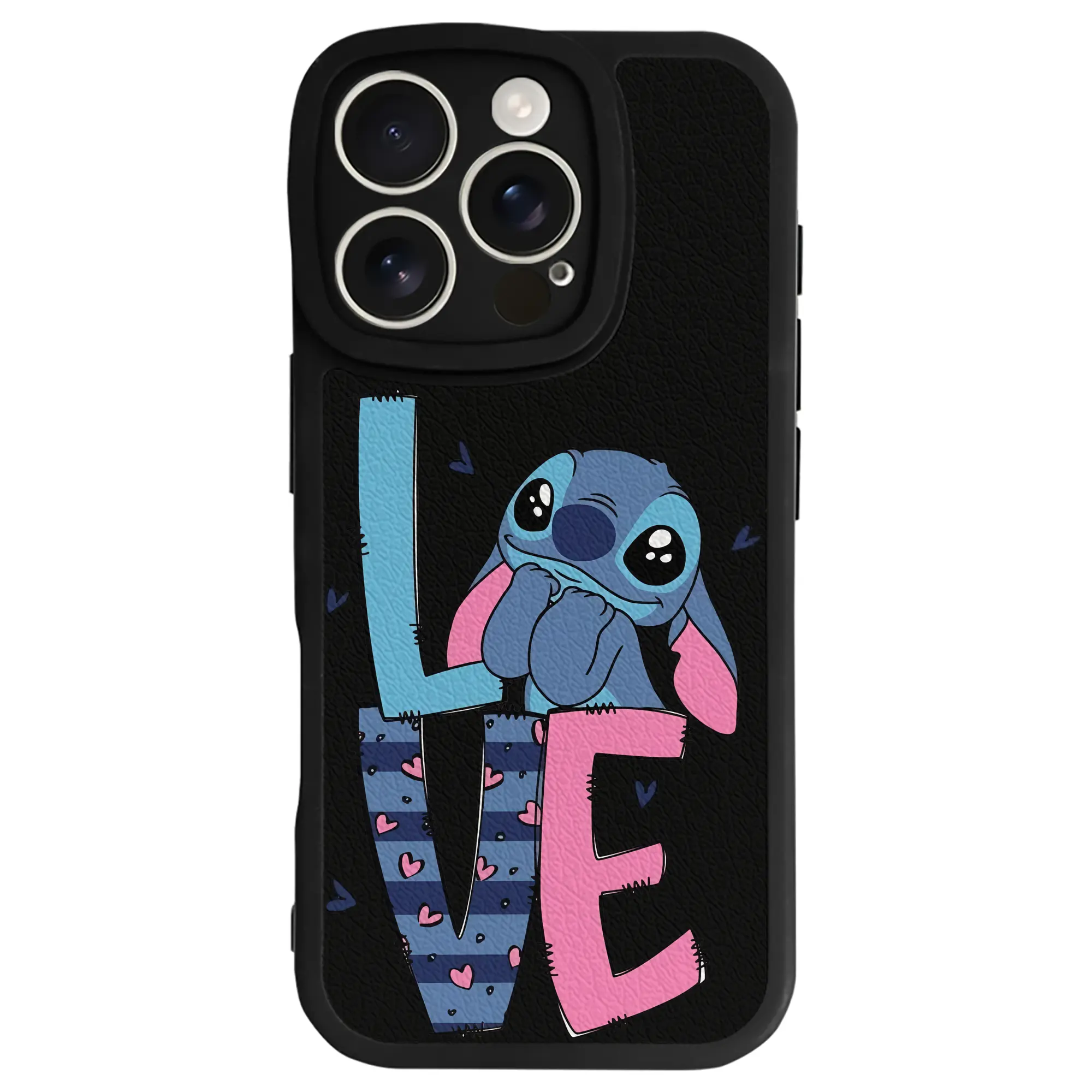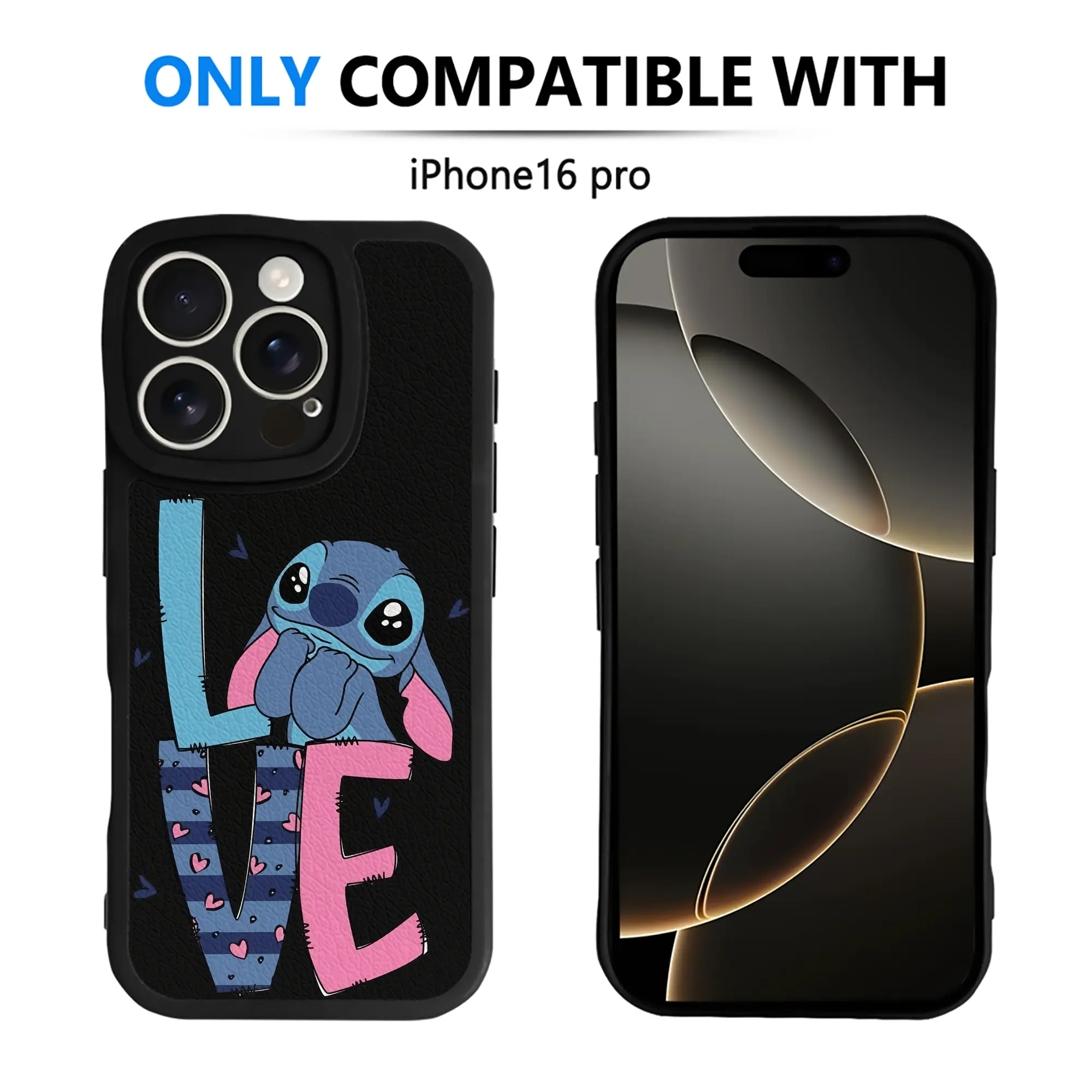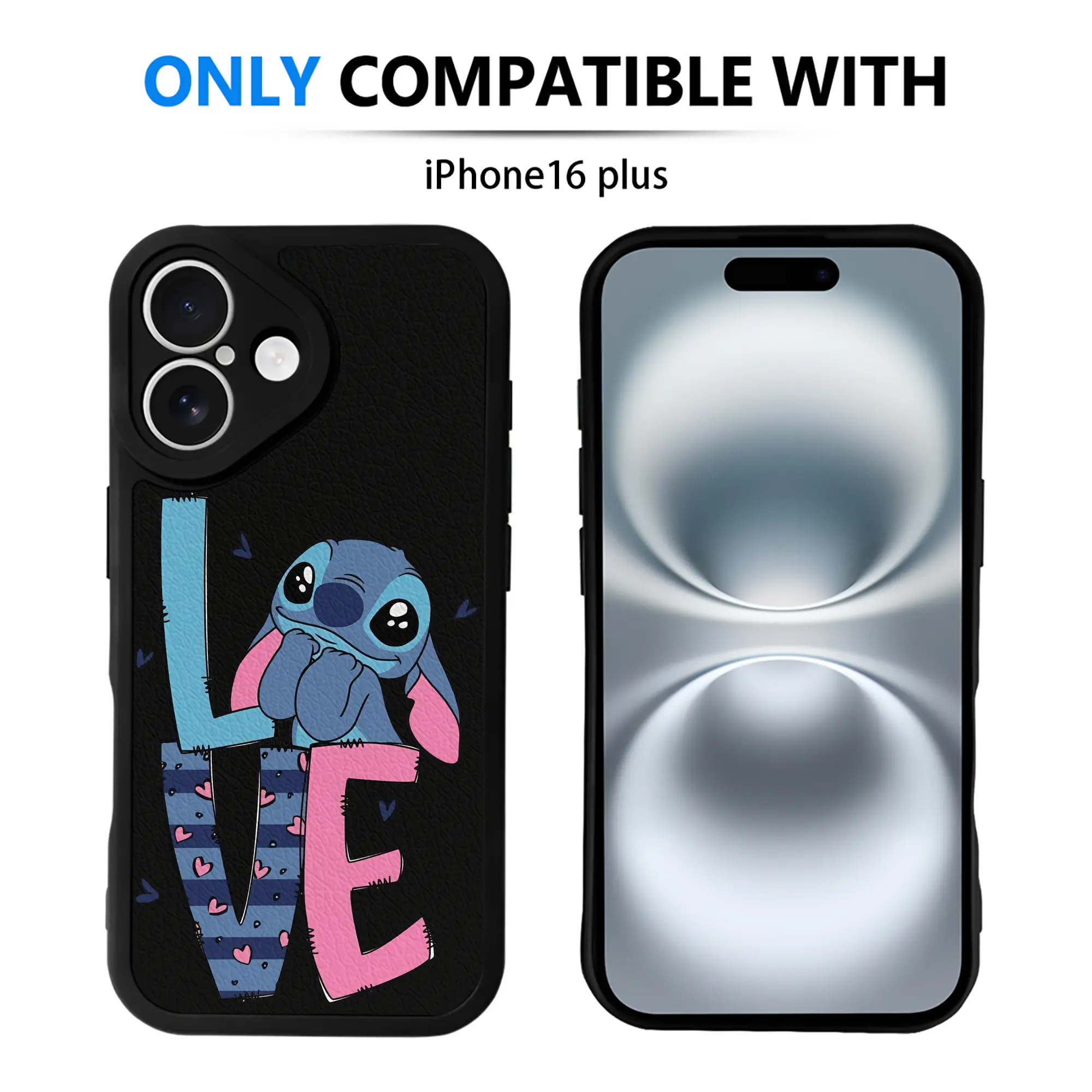 リロ&スティッチ グッズ スティッチ - IPhone 16シリーズ対応 ・ シリコンスマホケース ・ レザー調 ・ 高精度フィット ・ 耐衝撃 ・ ワイヤレス充電対応 ・ 精密カット