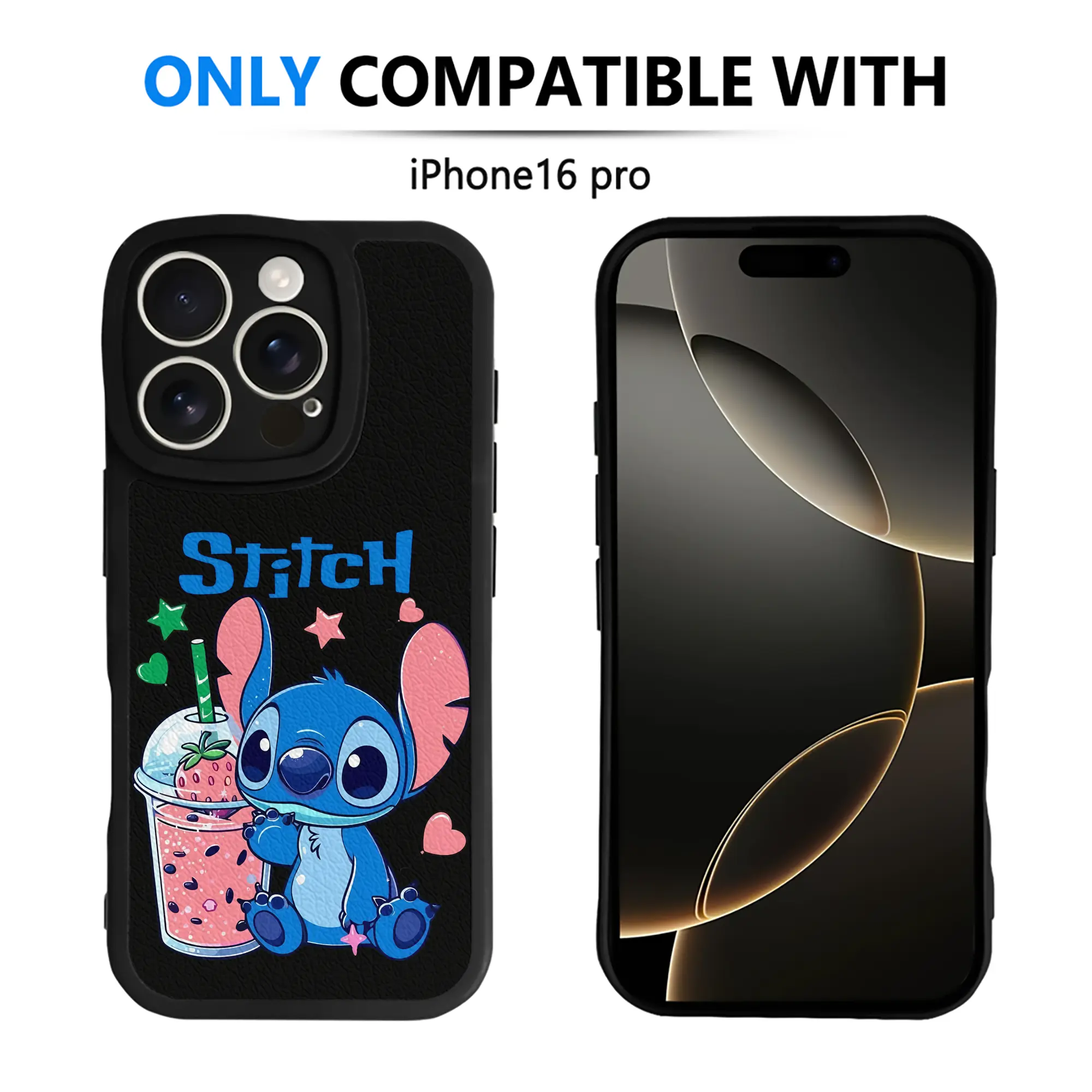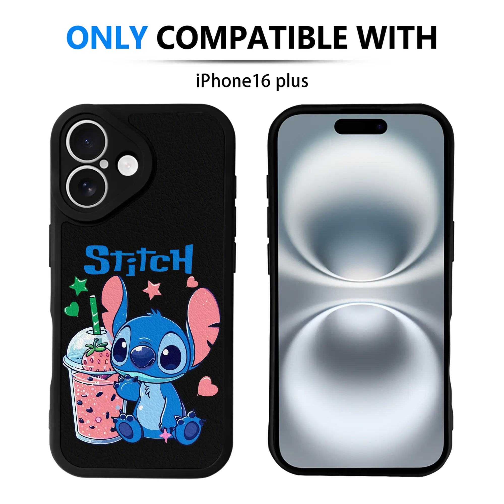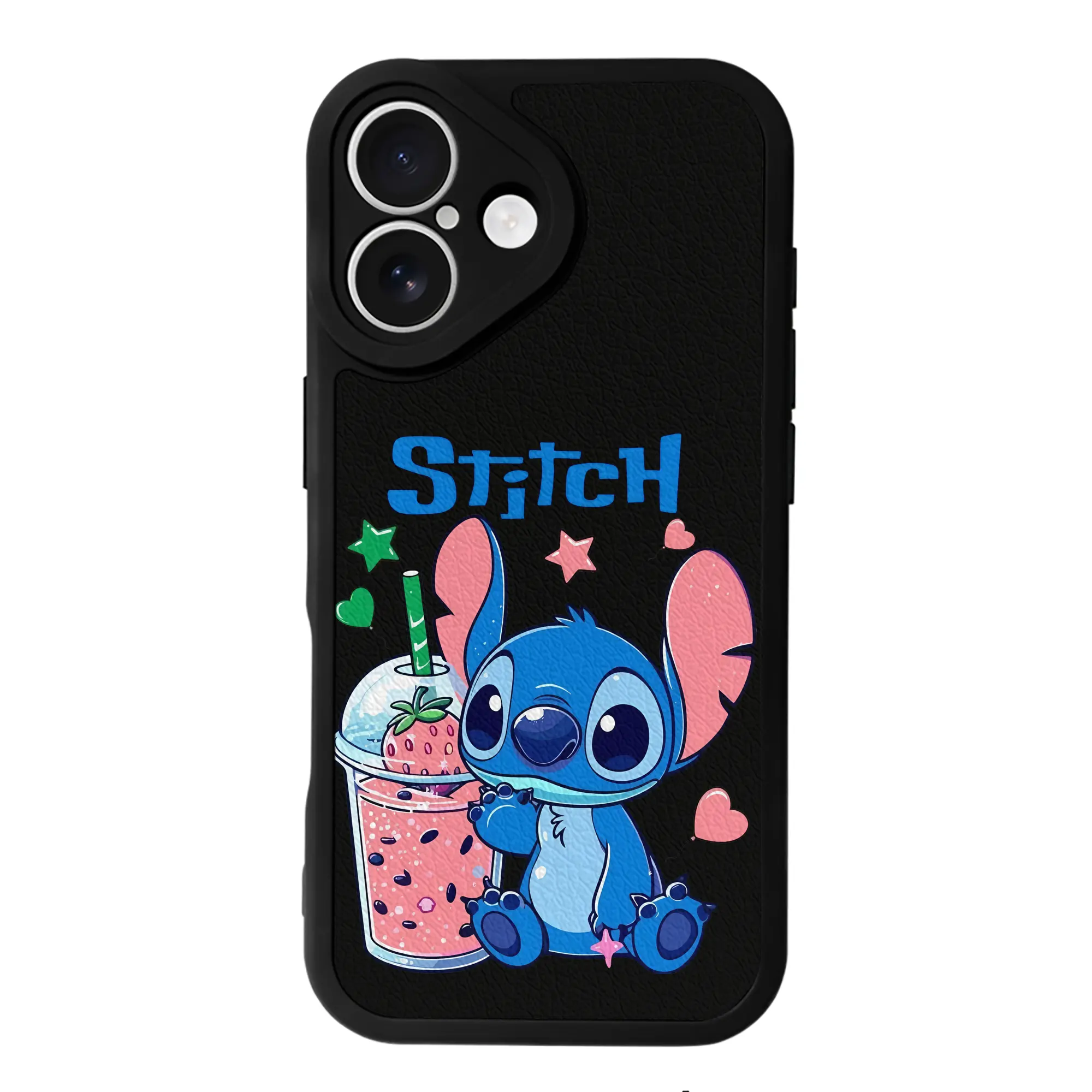 リロ&スティッチ グッズ スティッチ - IPhone 16シリーズ対応 ・ シリコンスマホケース ・ レザー調 ・ 高精度フィット ・ 耐衝撃 ・ ワイヤレス充電対応 ・ 精密カット
