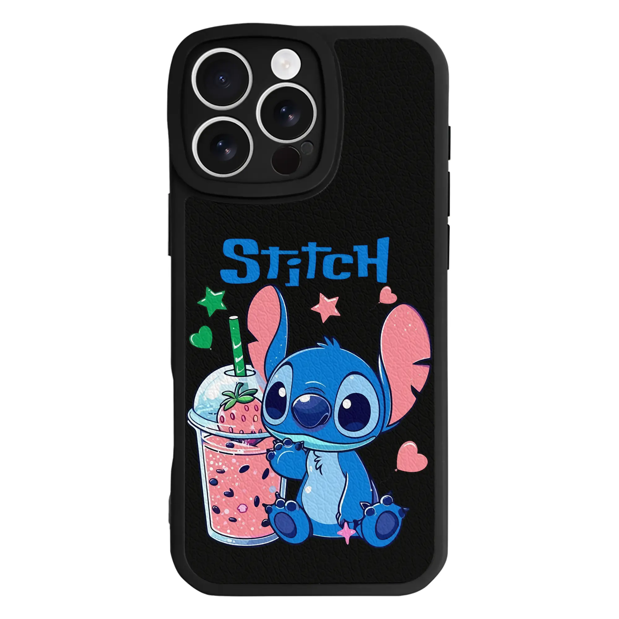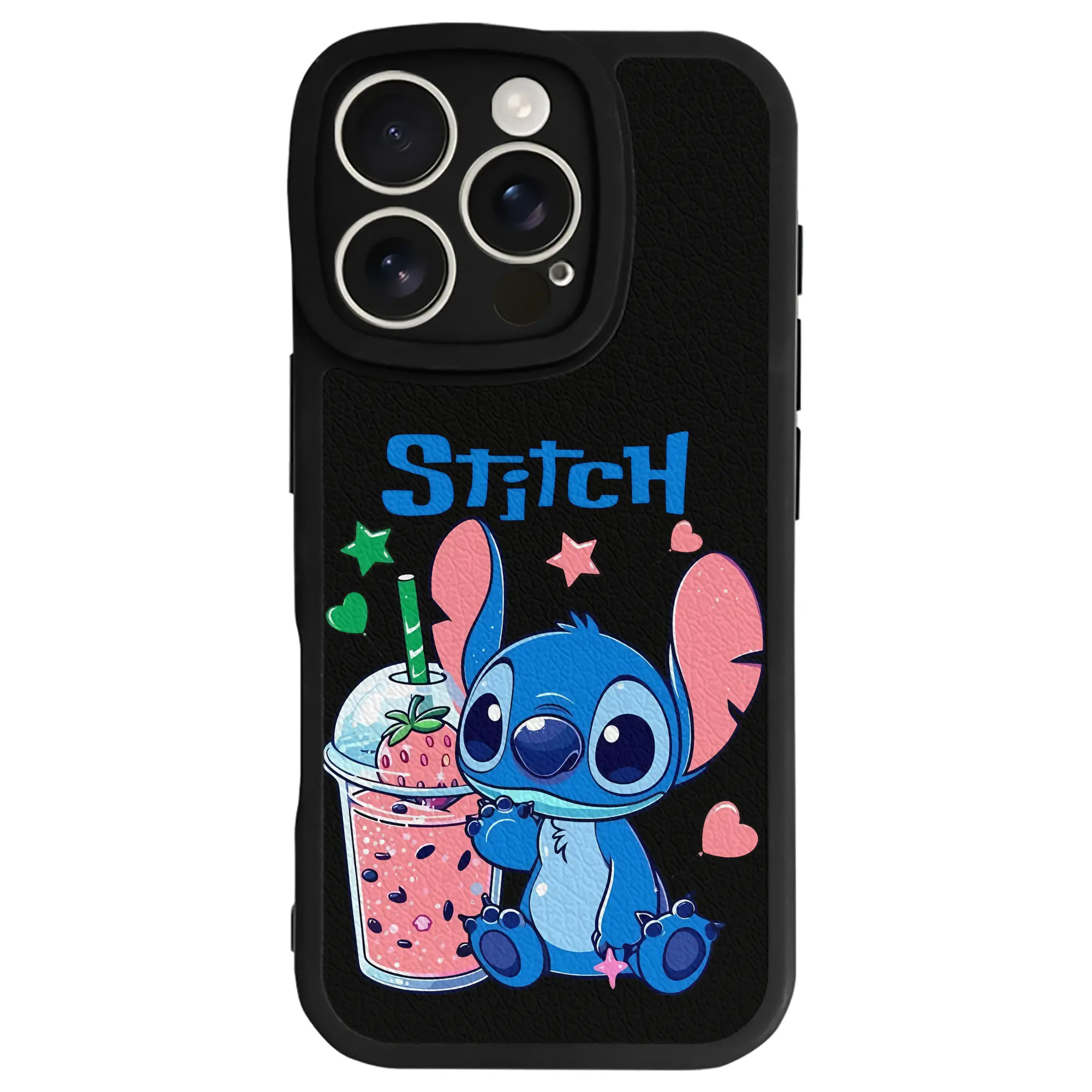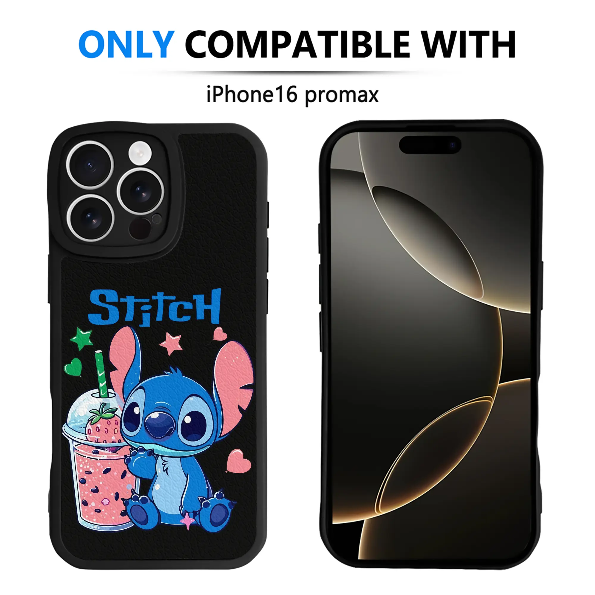 リロ&スティッチ グッズ スティッチ - IPhone 16シリーズ対応 ・ シリコンスマホケース ・ レザー調 ・ 高精度フィット ・ 耐衝撃 ・ ワイヤレス充電対応 ・ 精密カット