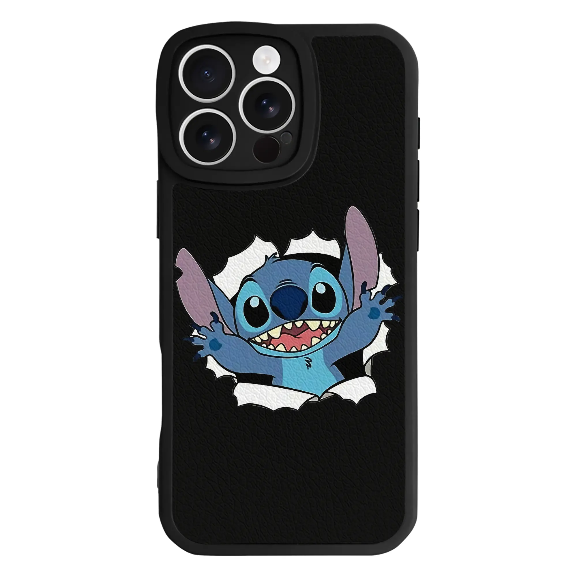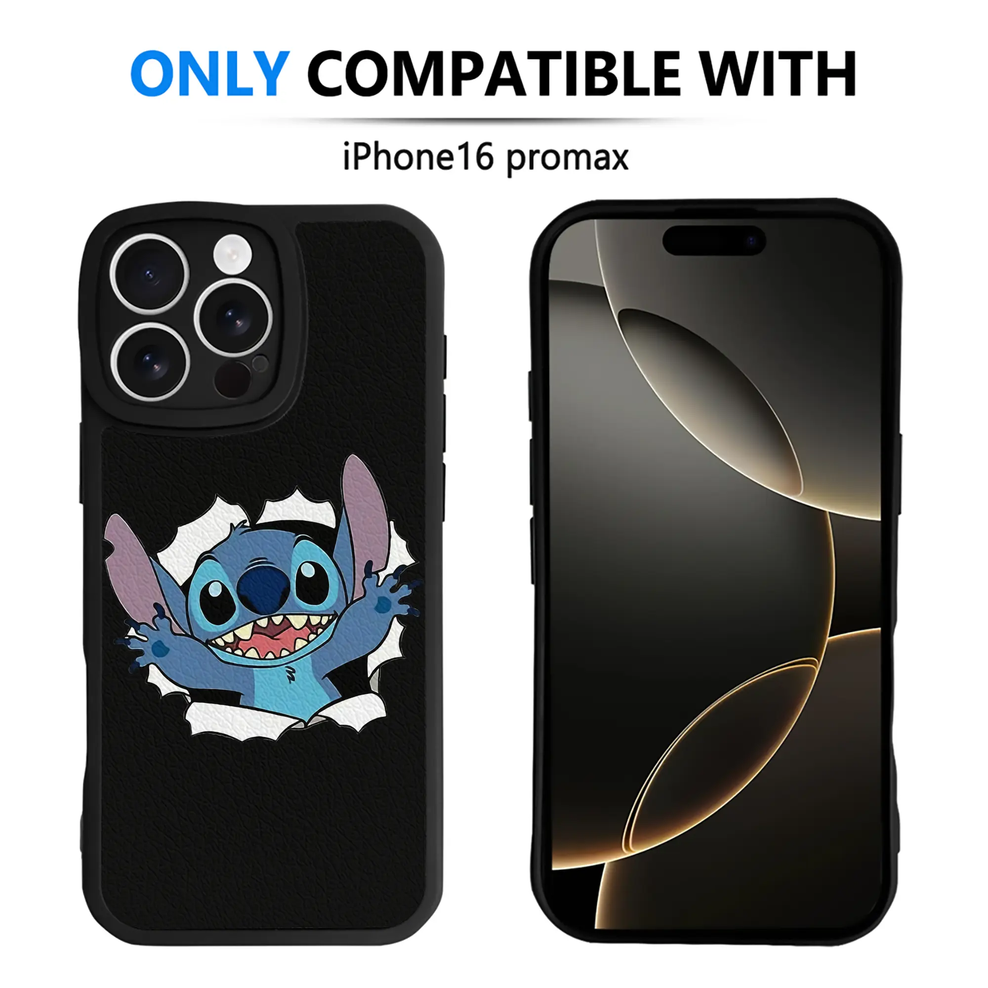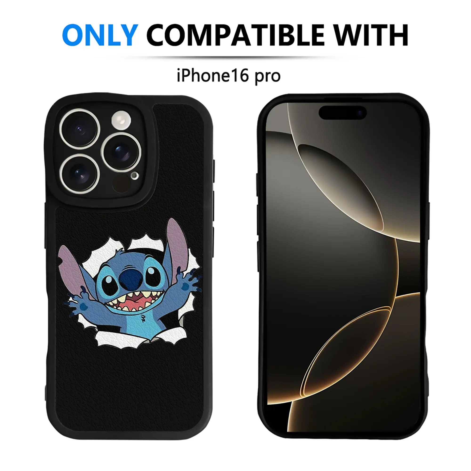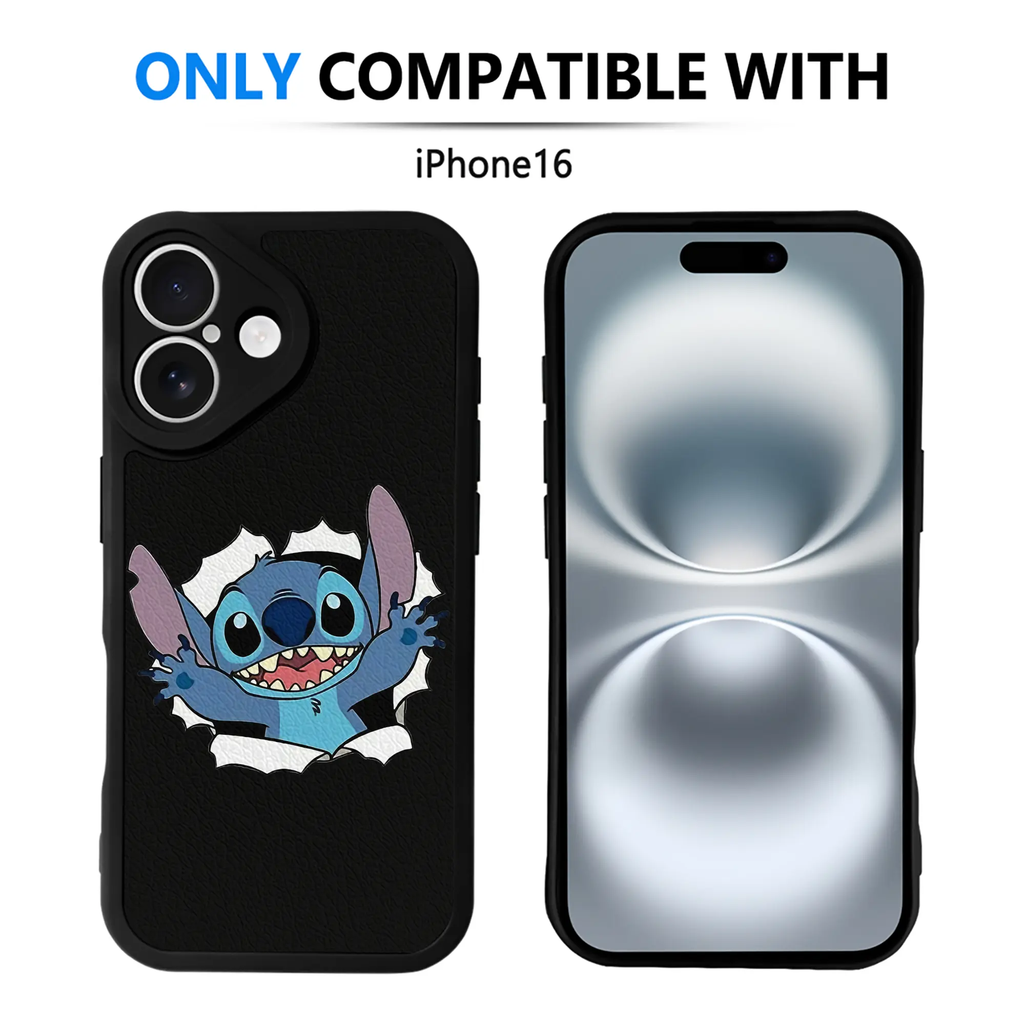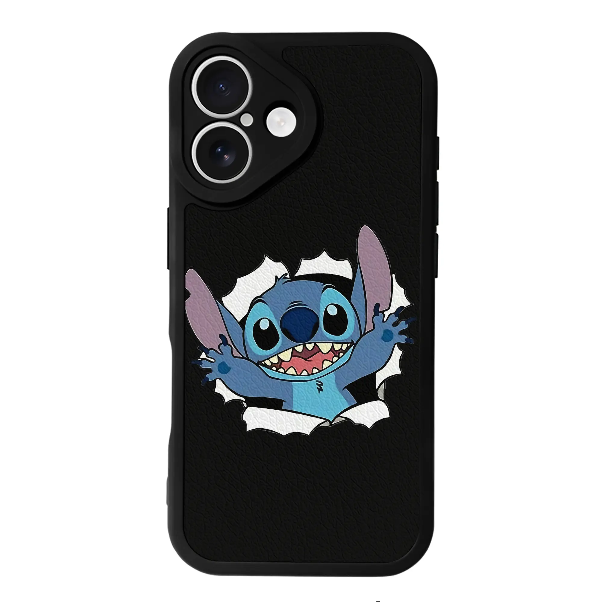 リロ&スティッチ グッズ スティッチ - IPhone 16シリーズ対応 ・ シリコンスマホケース ・ レザー調 ・ 高精度フィット ・ 耐衝撃 ・ ワイヤレス充電対応 ・ 精密カット