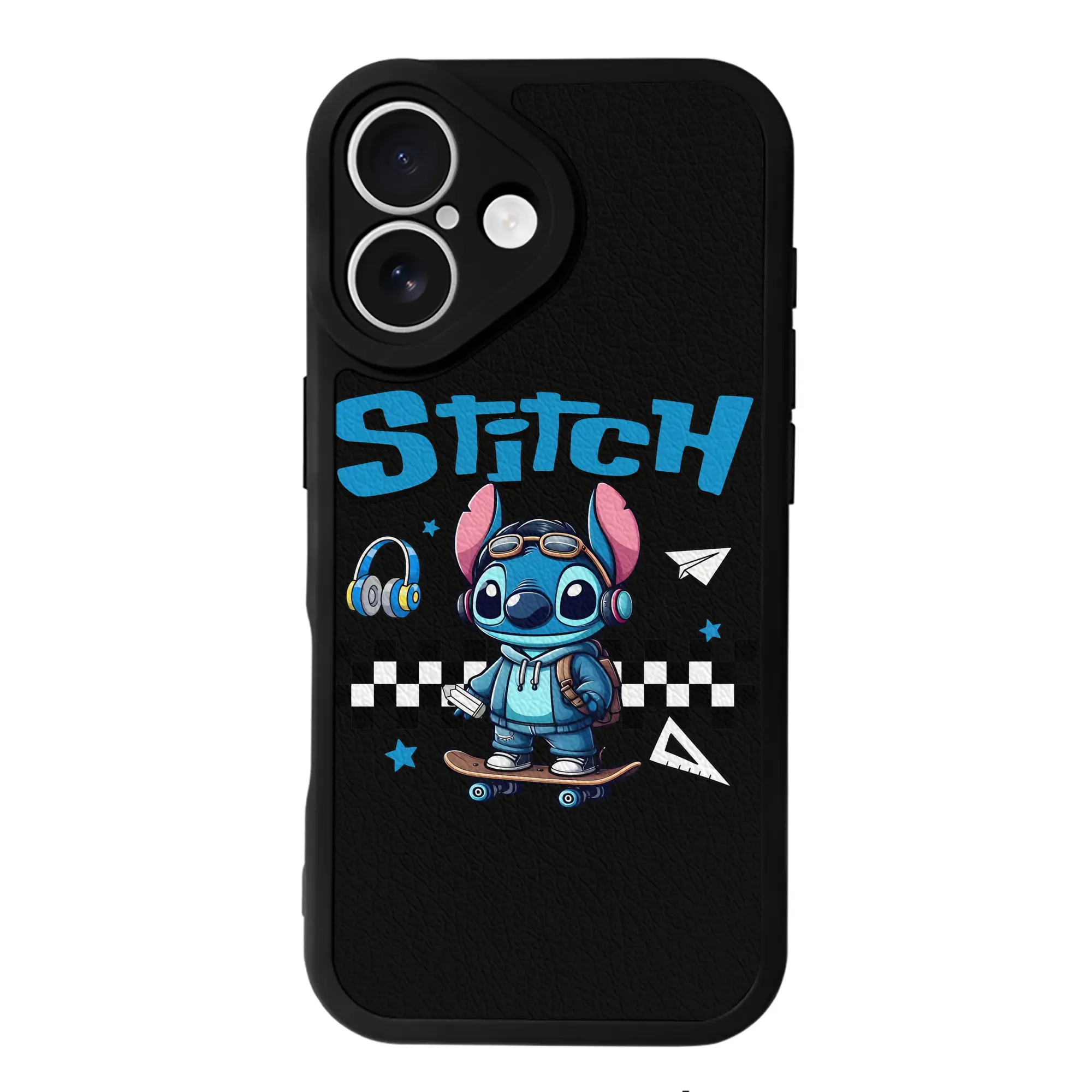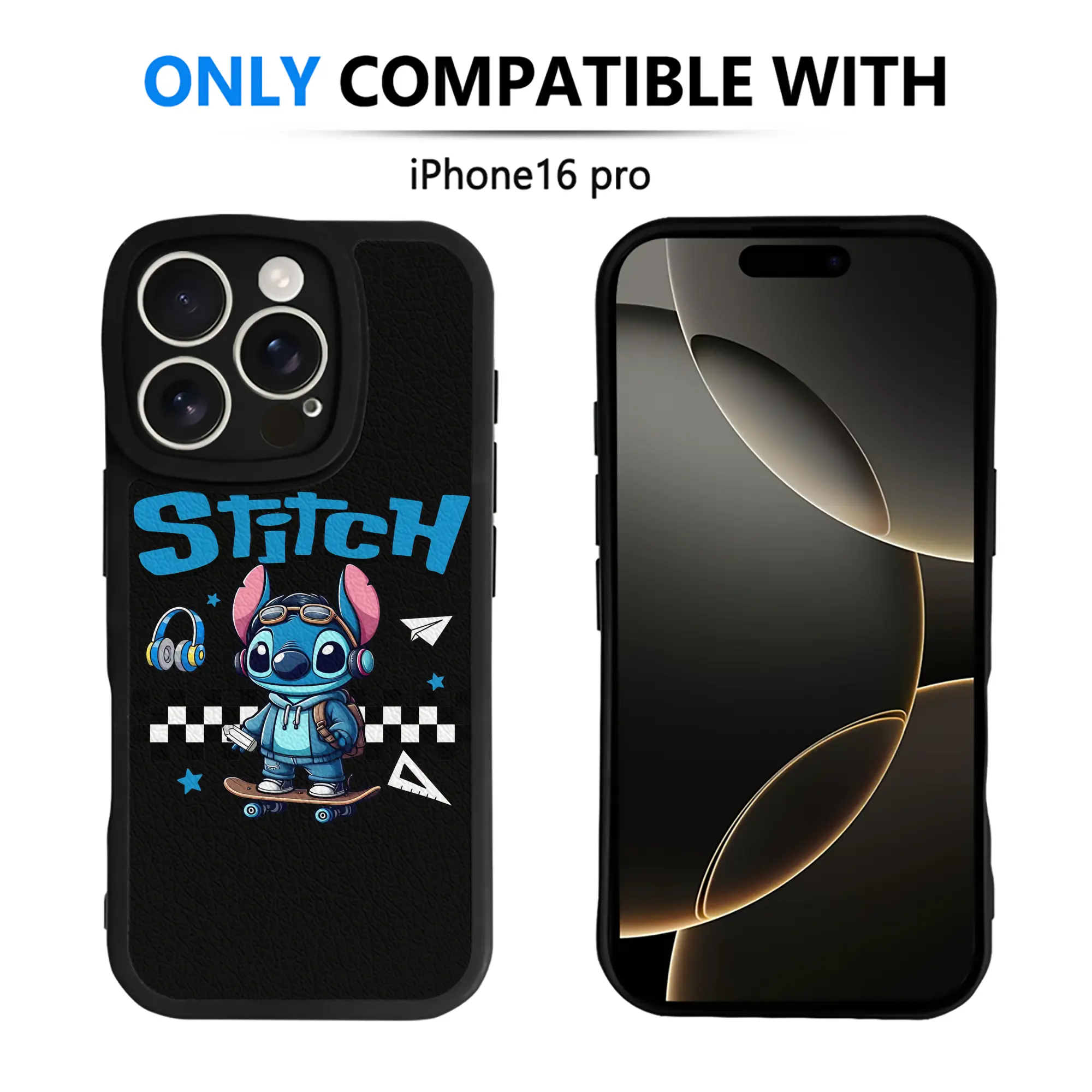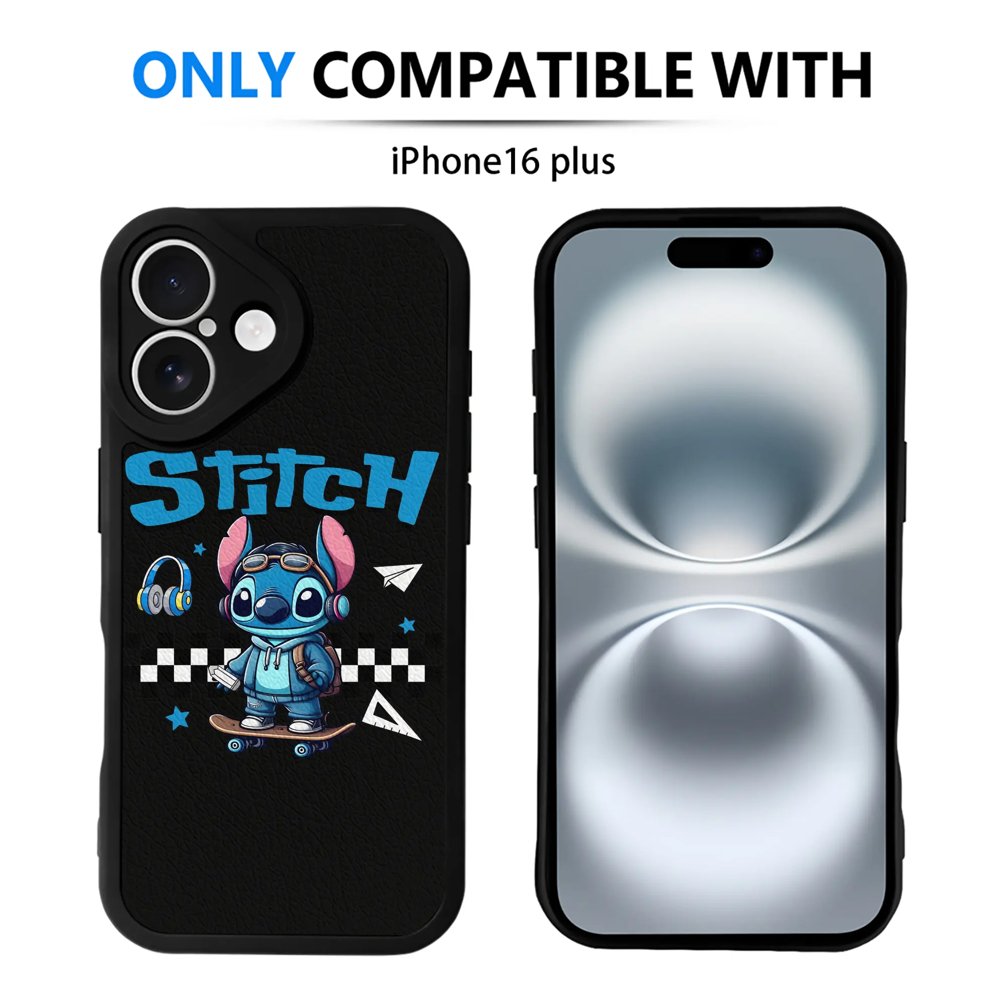リロ&スティッチ グッズ スティッチ - IPhone 16シリーズ対応 ・ シリコンスマホケース ・ レザー調 ・ 高精度フィット ・ 耐衝撃 ・ ワイヤレス充電対応 ・ 精密カット