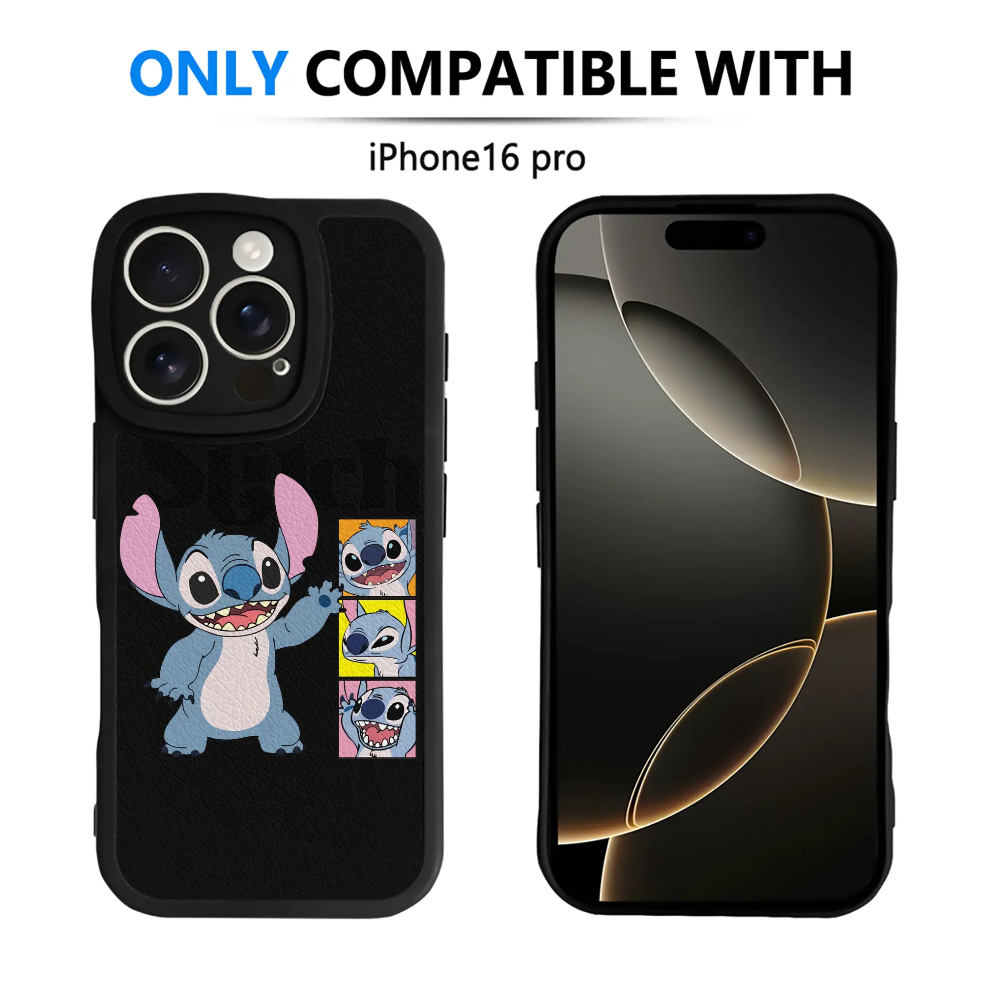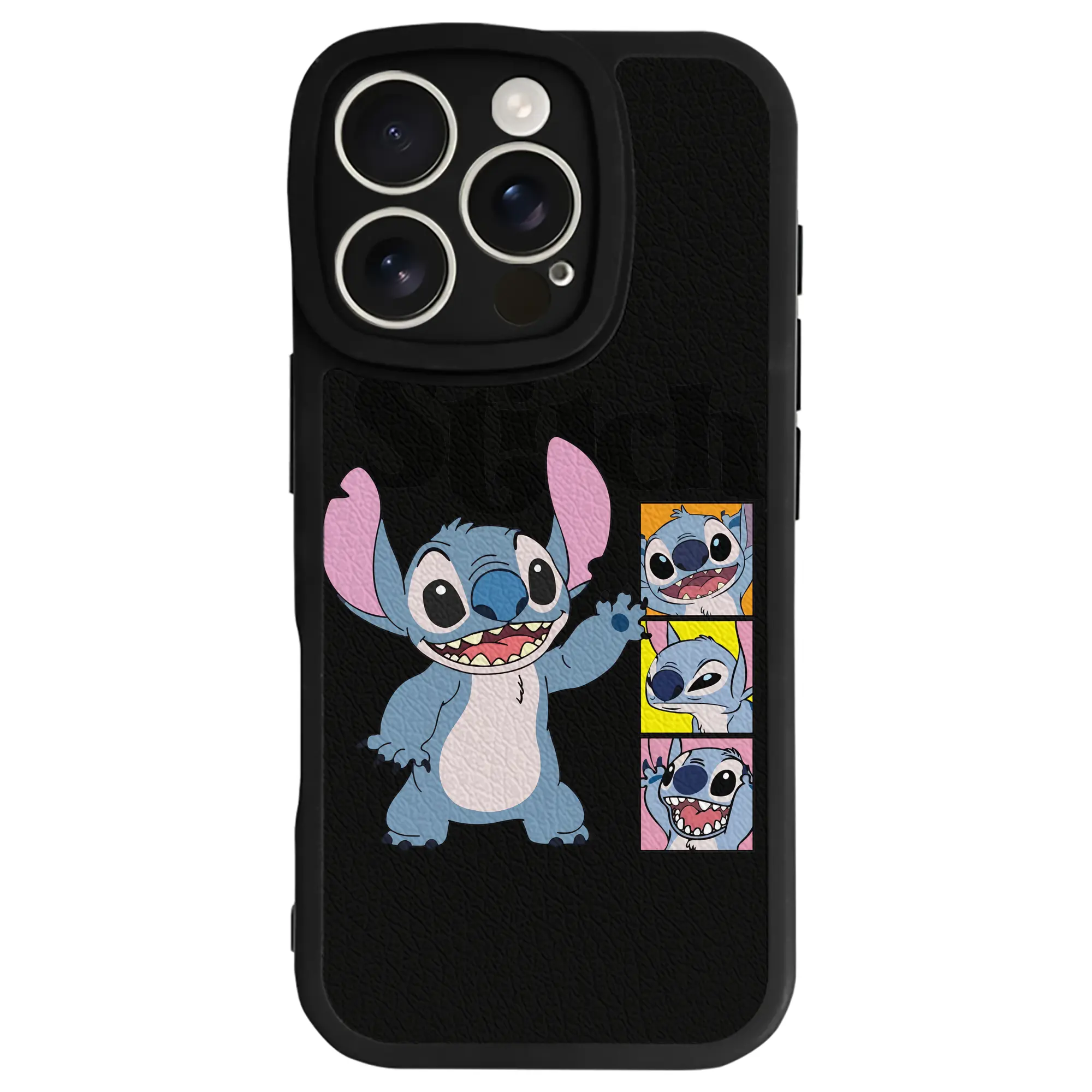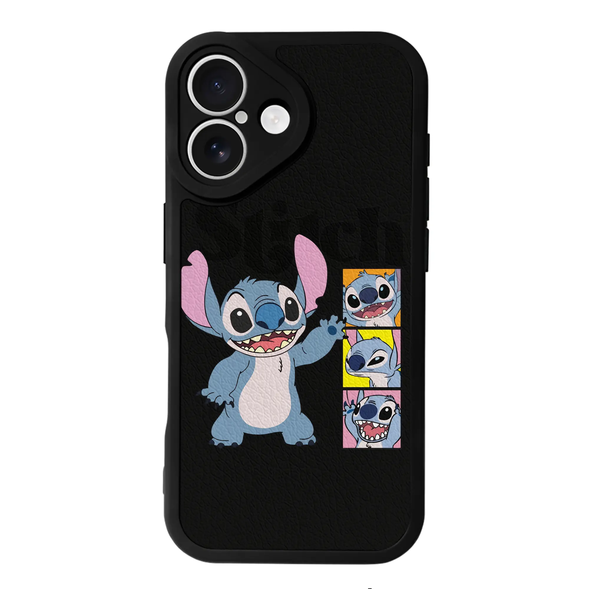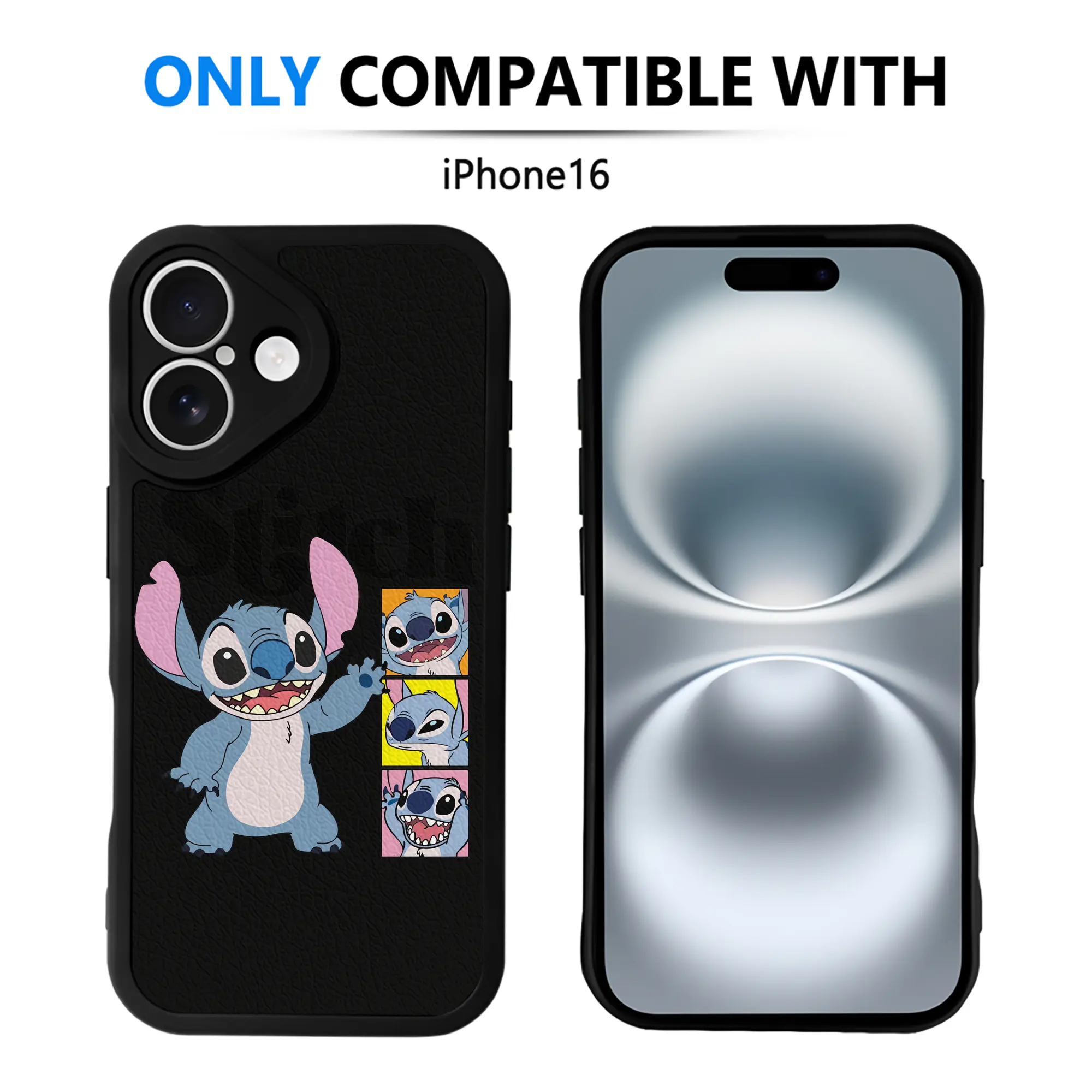リロ&スティッチ グッズ スティッチ - IPhone 16シリーズ対応 ・ シリコンスマホケース ・ レザー調 ・ 高精度フィット ・ 耐衝撃 ・ ワイヤレス充電対応 ・ 精密カット