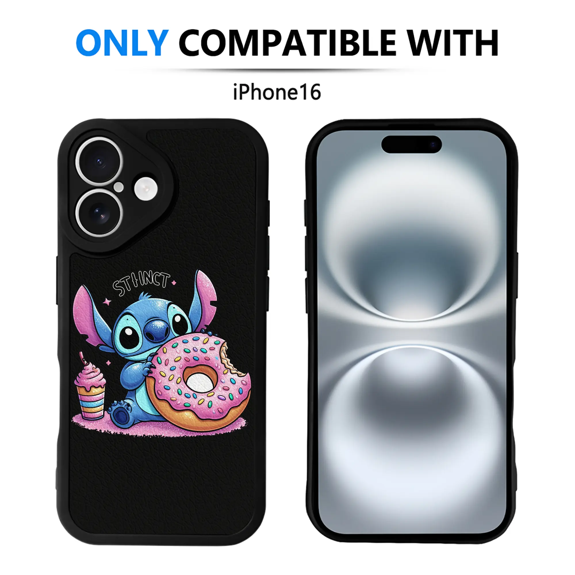 リロ&スティッチ グッズ スティッチ - IPhone 16シリーズ対応 ・ シリコンスマホケース ・ レザー調 ・ 高精度フィット ・ 耐衝撃 ・ ワイヤレス充電対応 ・ 精密カット