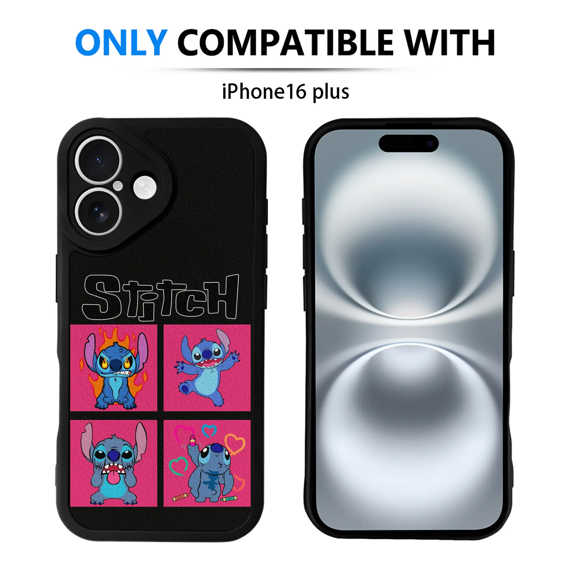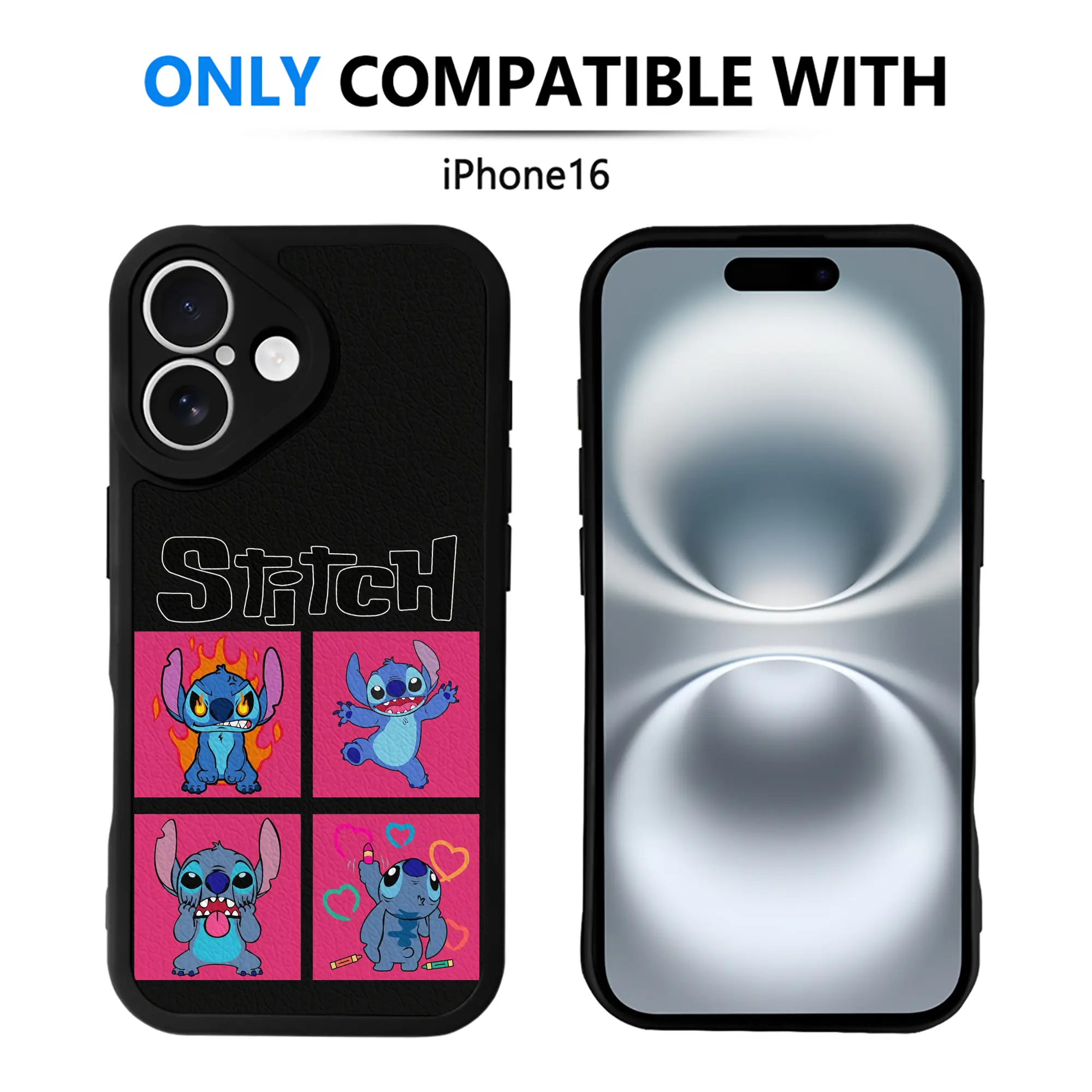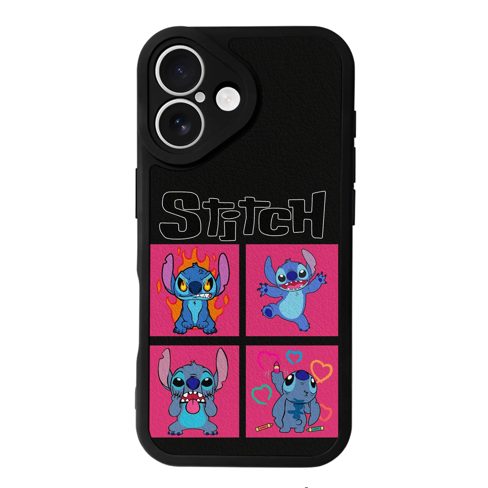 リロ&スティッチ グッズ スティッチ - IPhone 16シリーズ対応 ・ シリコンスマホケース ・ レザー調 ・ 高精度フィット ・ 耐衝撃 ・ ワイヤレス充電対応 ・ 精密カット
