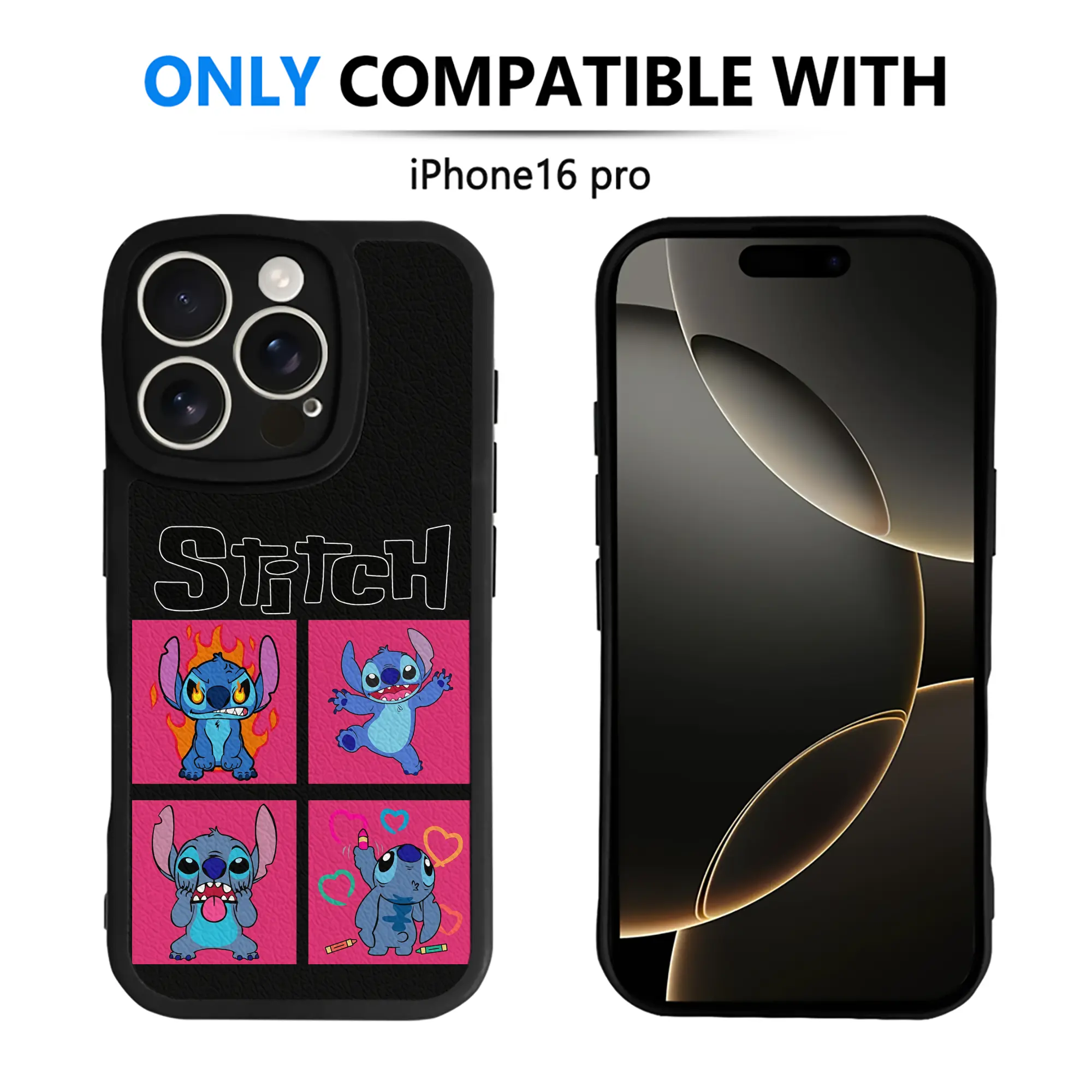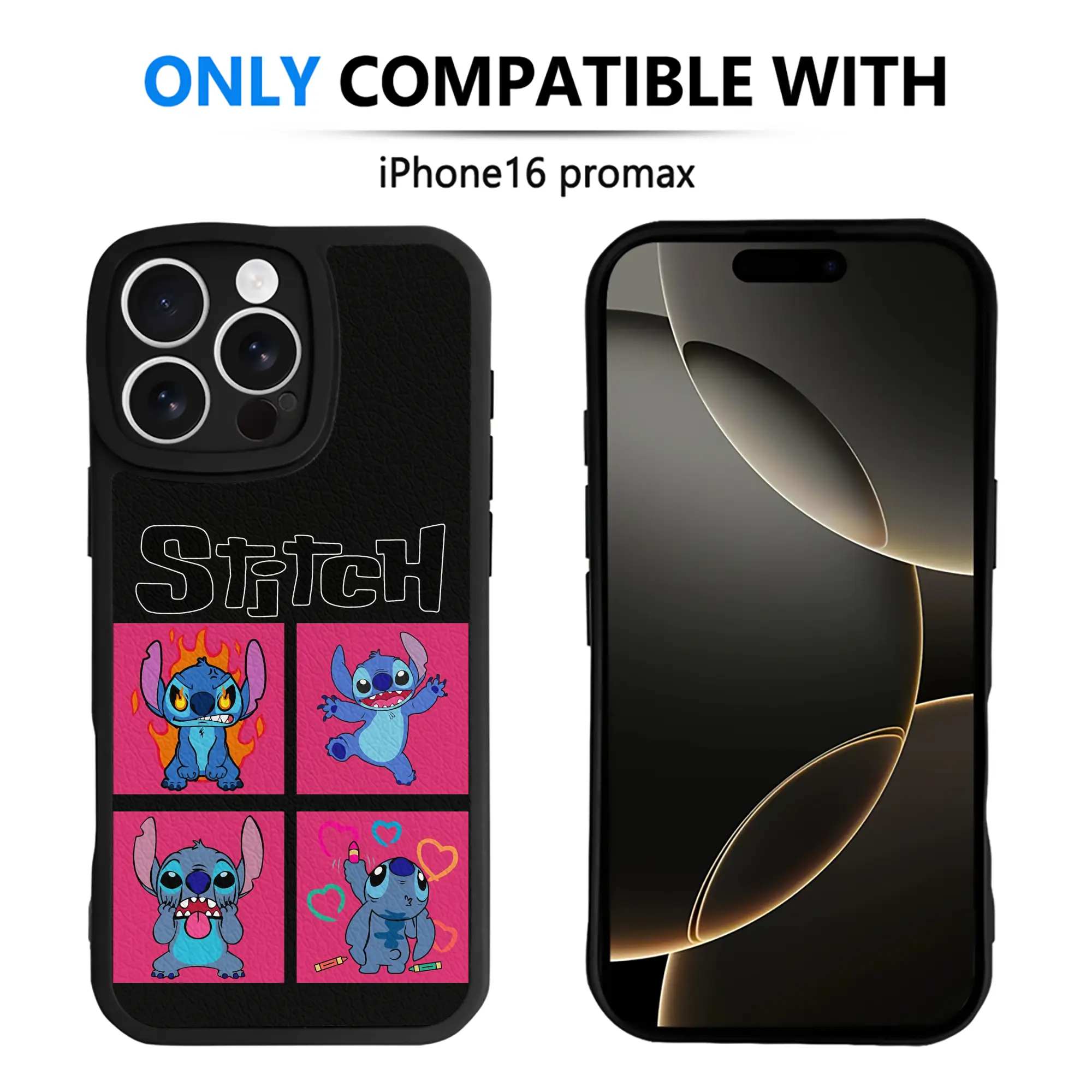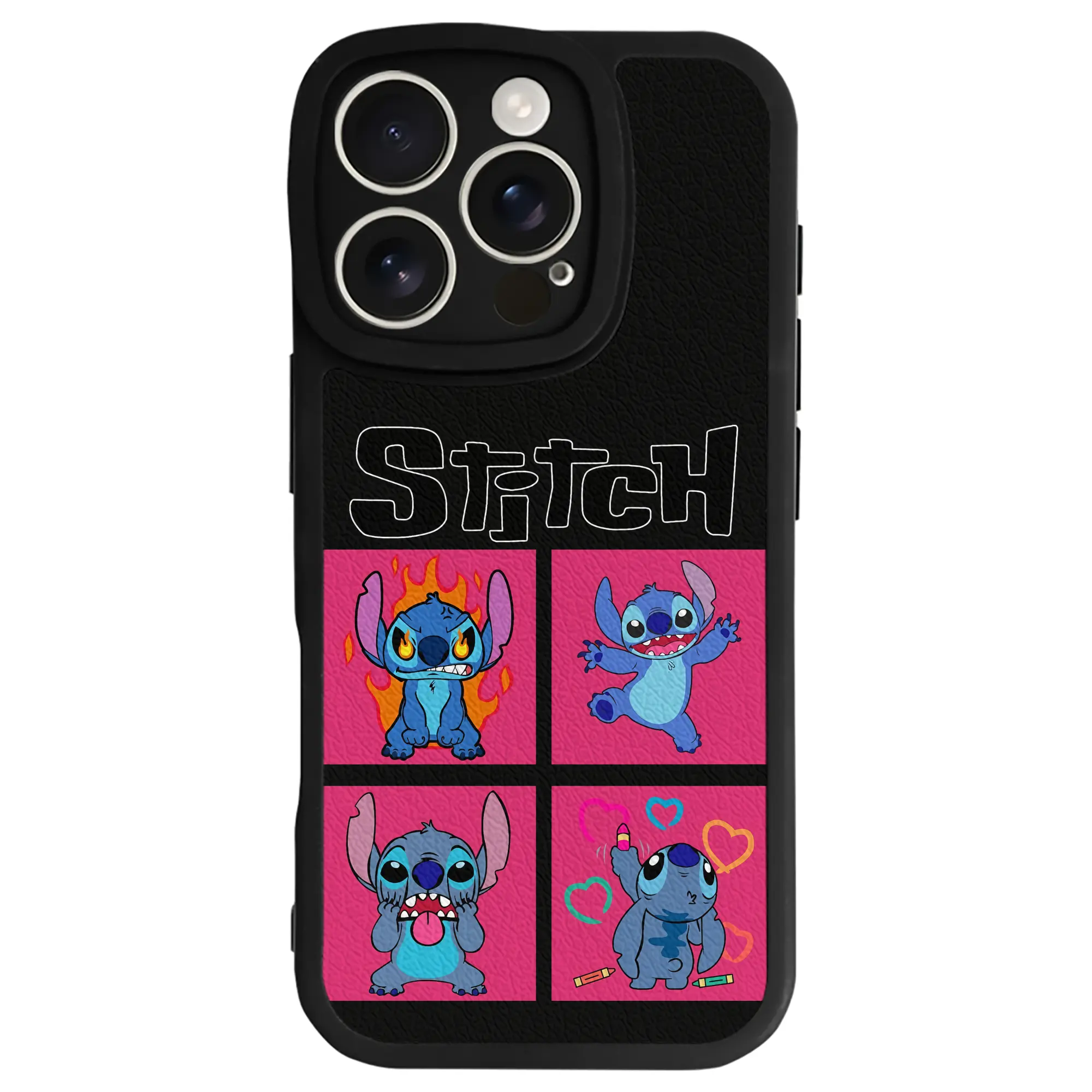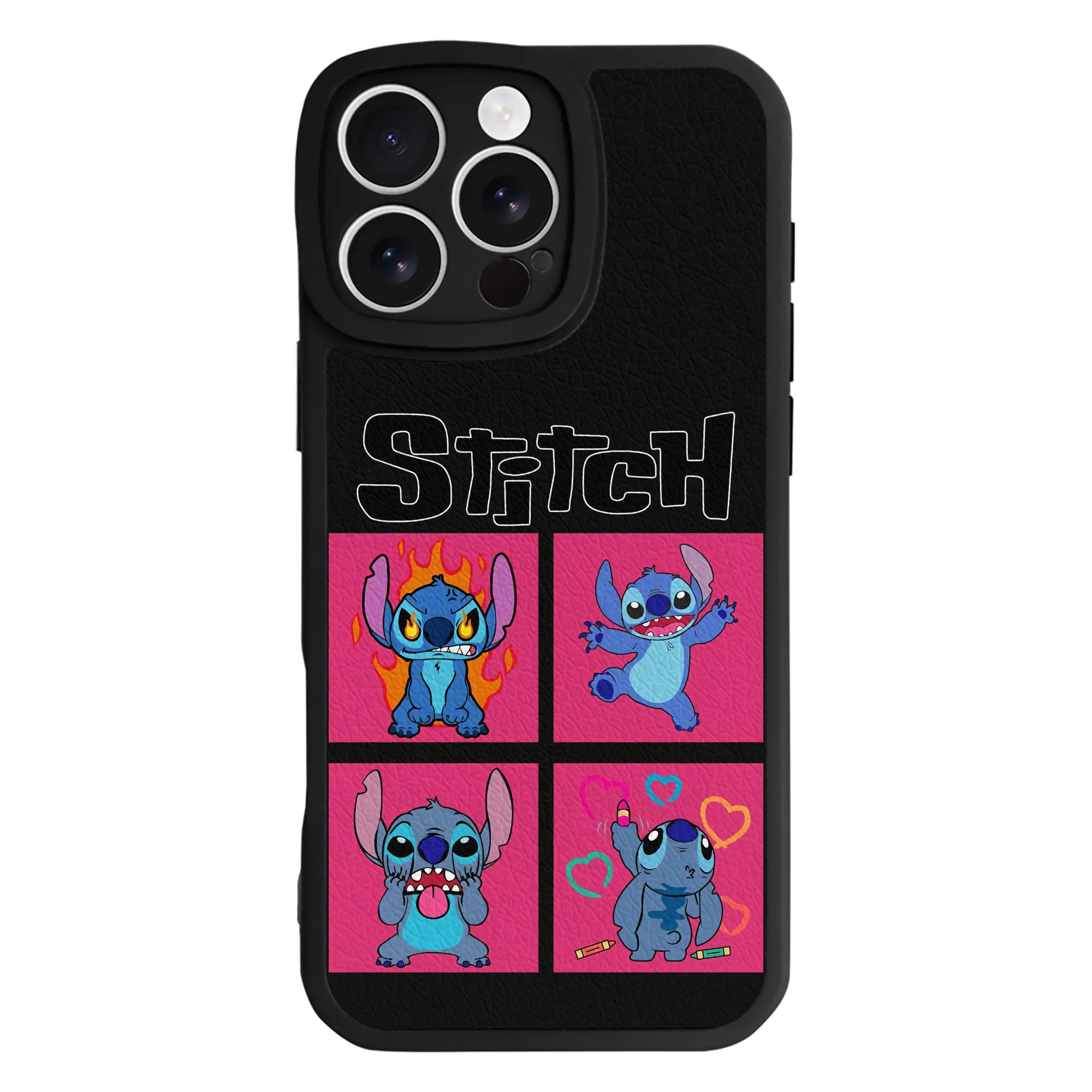 リロ&スティッチ グッズ スティッチ - IPhone 16シリーズ対応 ・ シリコンスマホケース ・ レザー調 ・ 高精度フィット ・ 耐衝撃 ・ ワイヤレス充電対応 ・ 精密カット