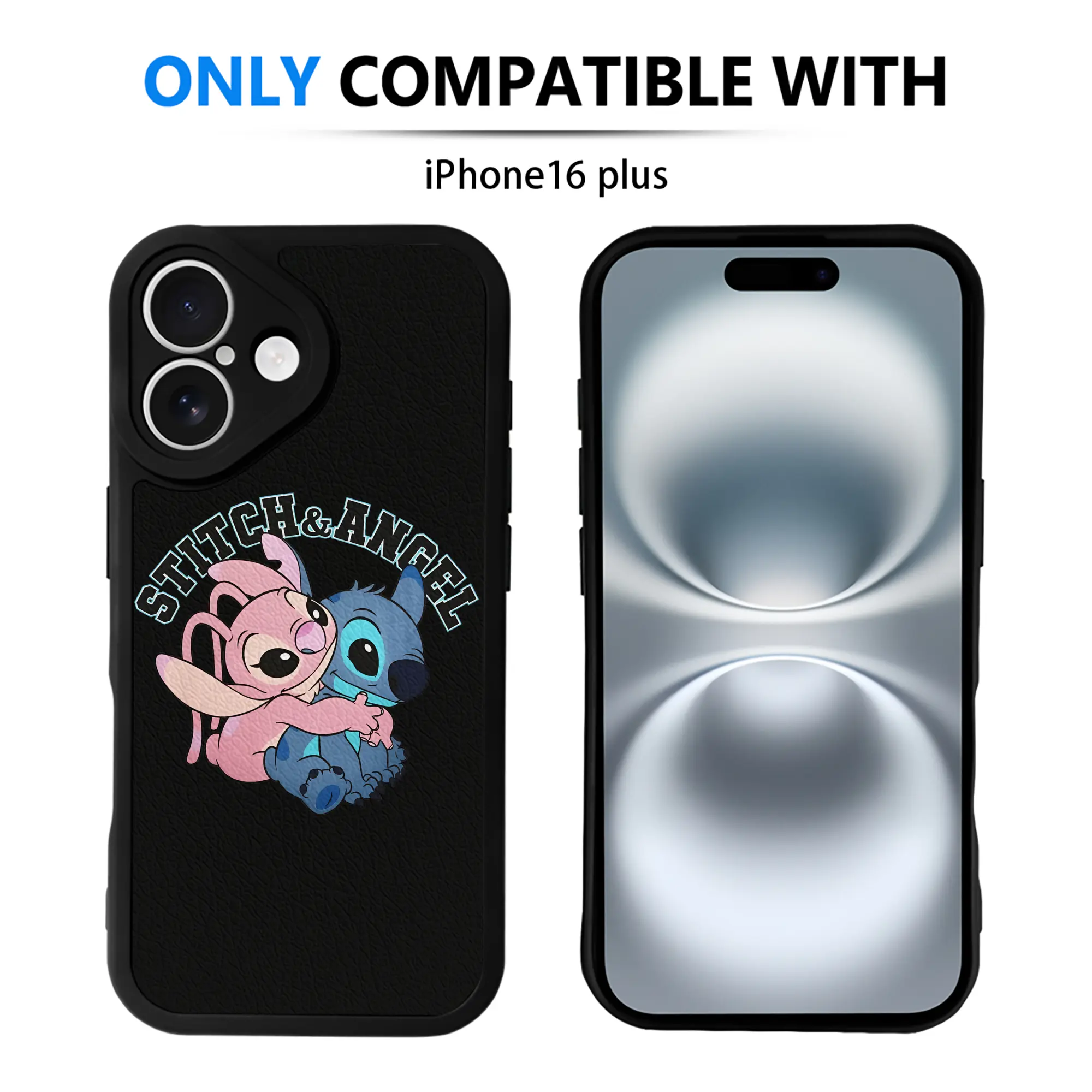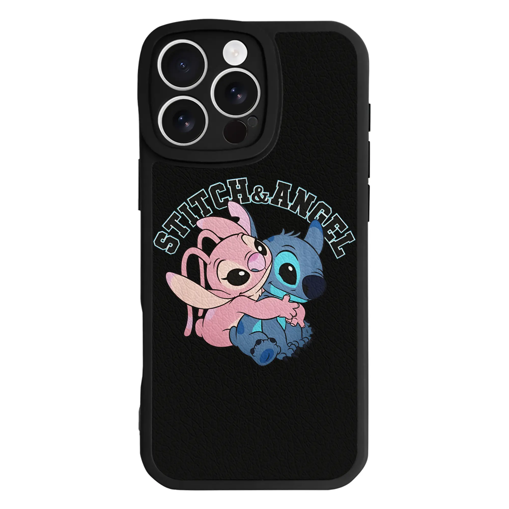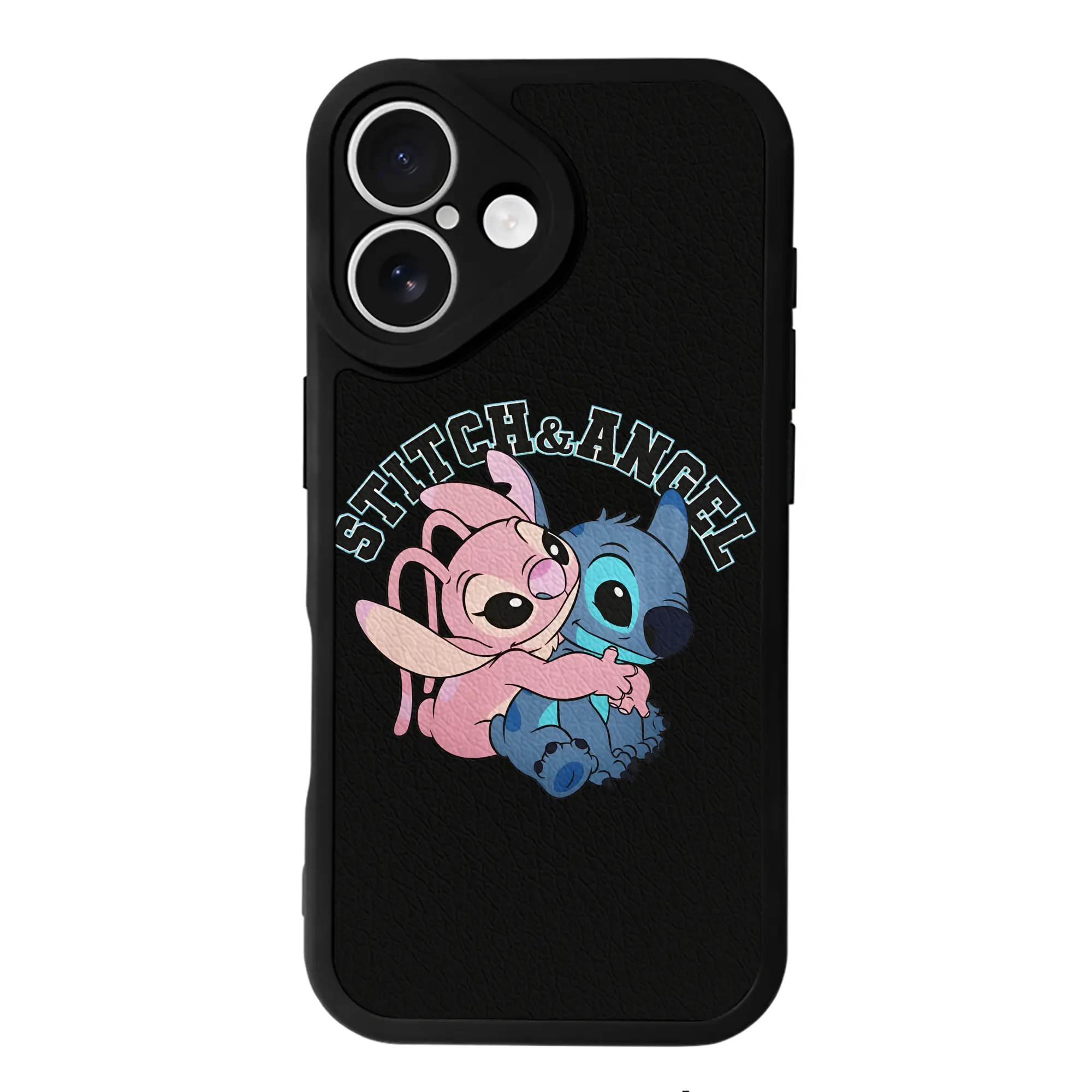 リロ&スティッチ グッズ エンジェル - IPhone 16シリーズ対応 ・ シリコンスマホケース ・ レザー調 ・ 高精度フィット ・ 耐衝撃 ・ ワイヤレス充電対応 ・ 精密カット