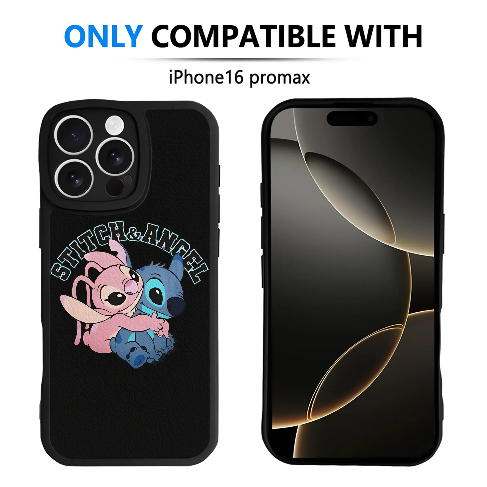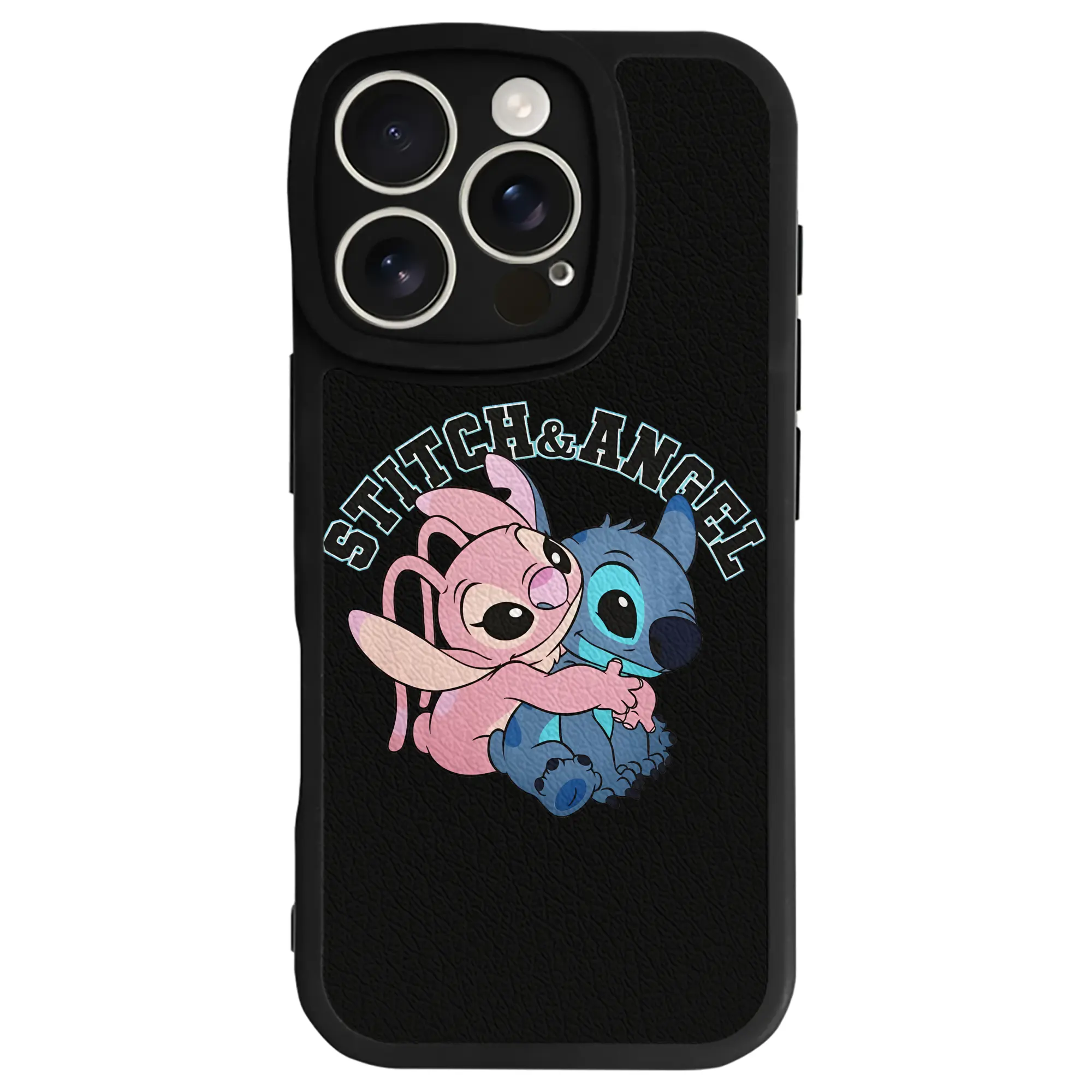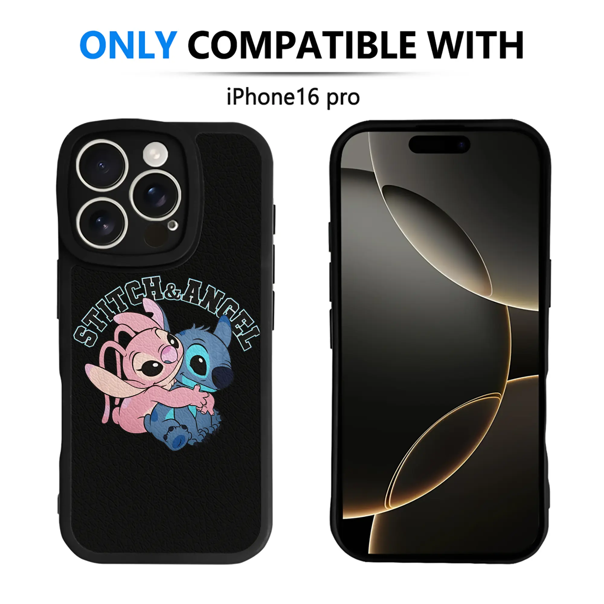 リロ&スティッチ グッズ エンジェル - IPhone 16シリーズ対応 ・ シリコンスマホケース ・ レザー調 ・ 高精度フィット ・ 耐衝撃 ・ ワイヤレス充電対応 ・ 精密カット