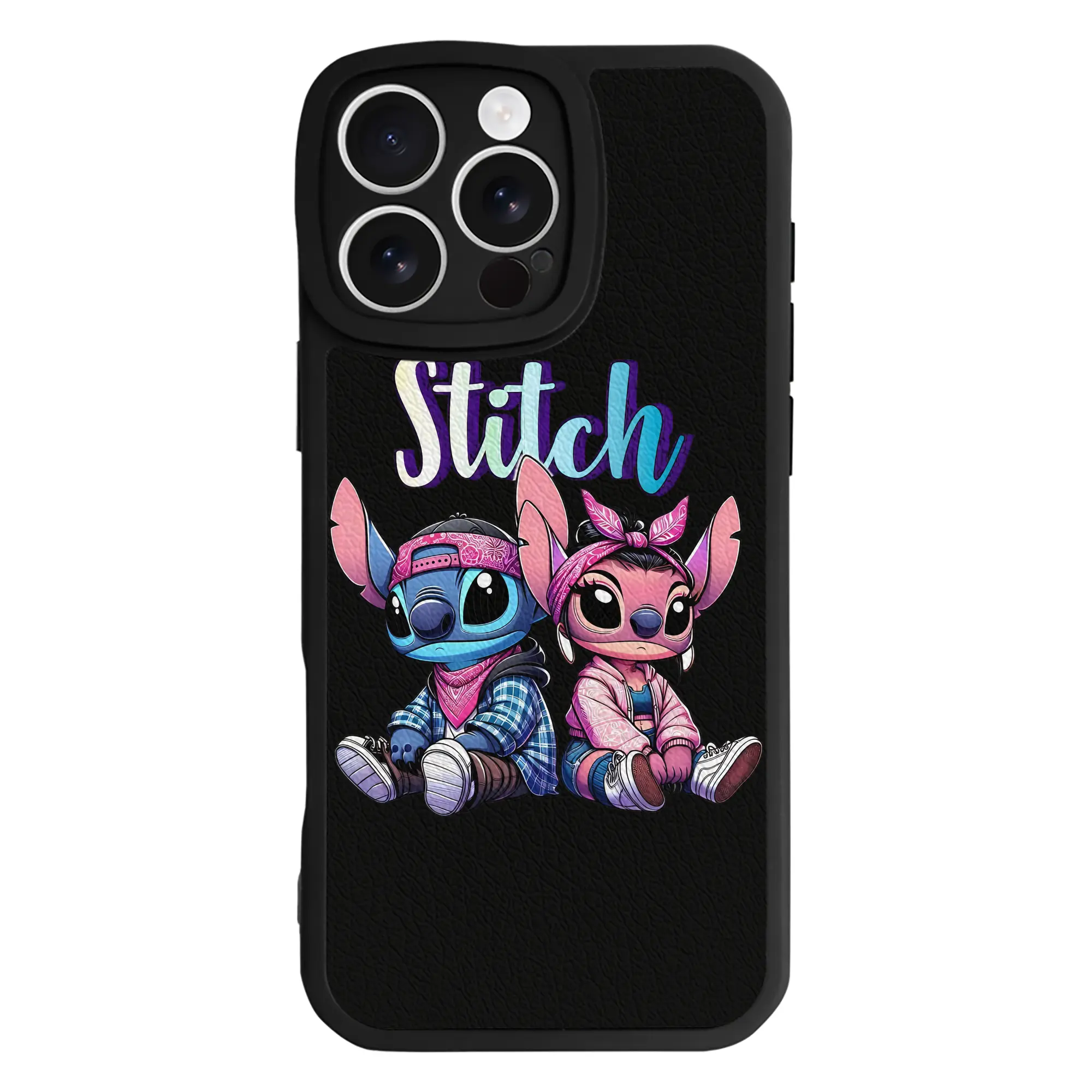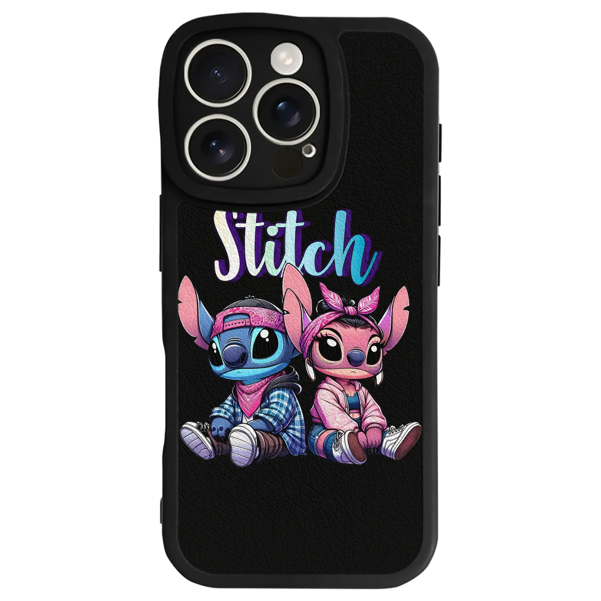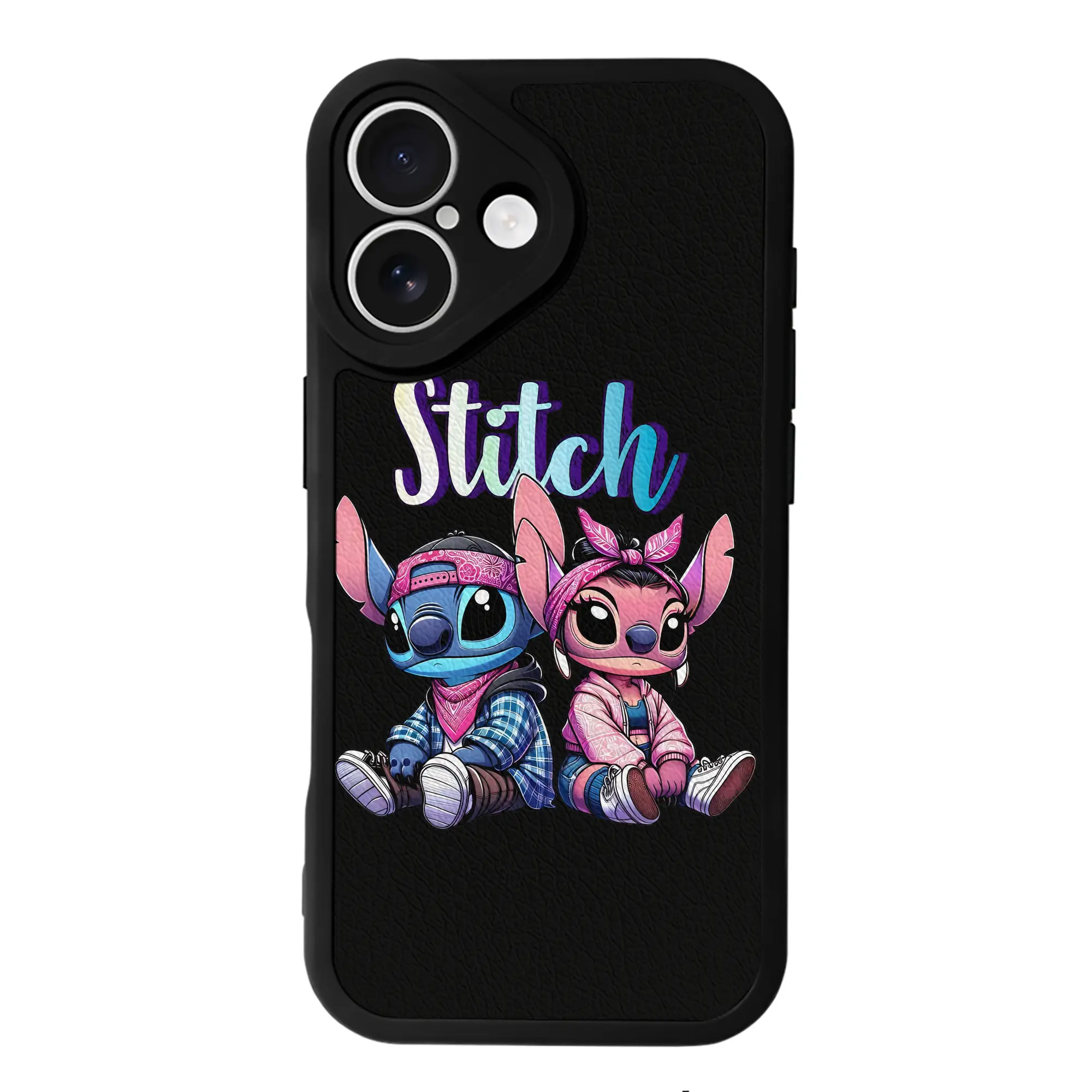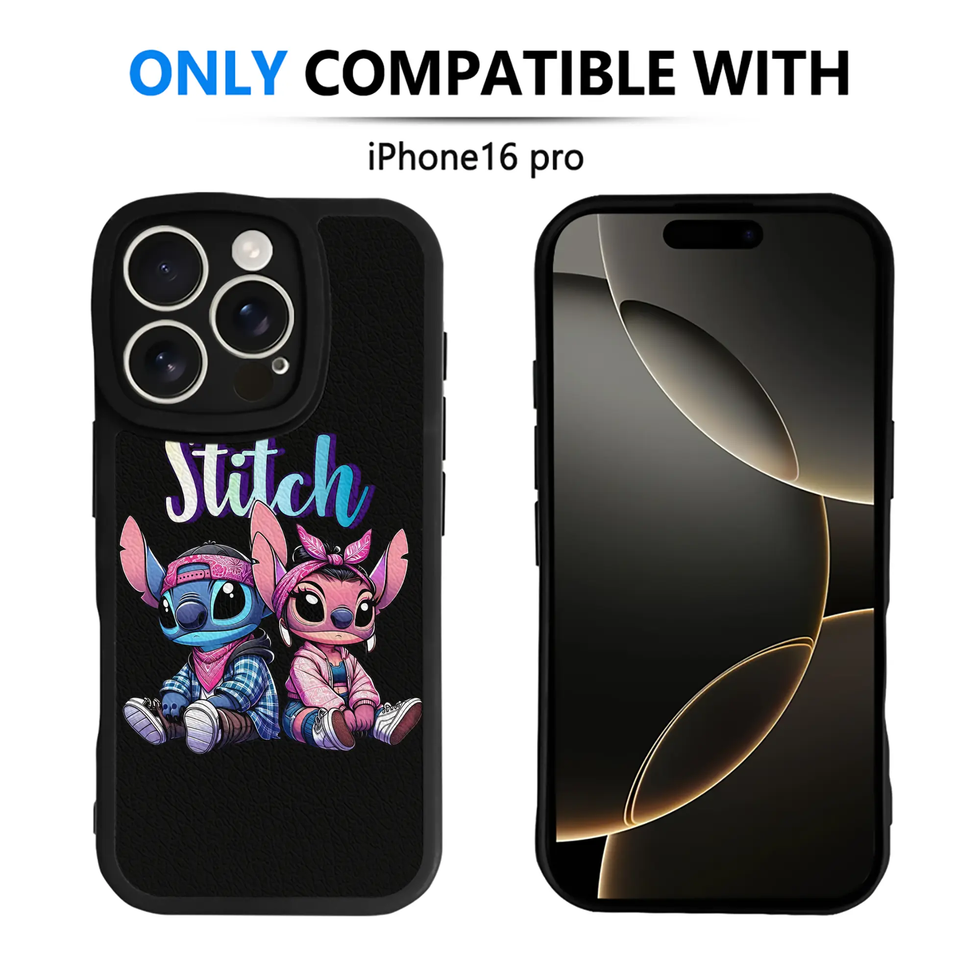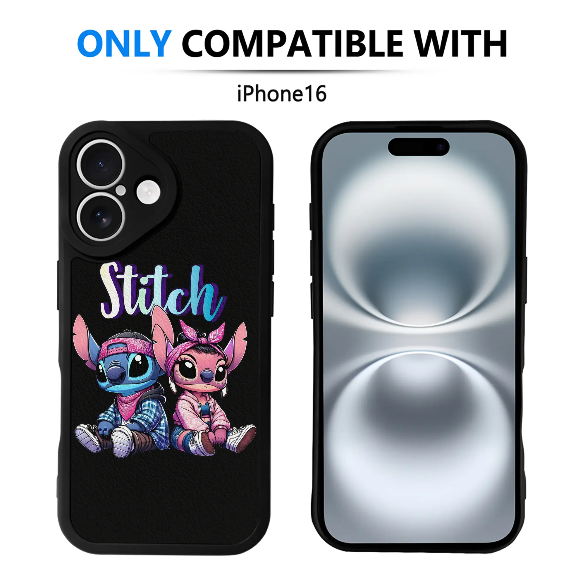 リロ&スティッチ グッズ エンジェル - IPhone 16シリーズ対応 ・ シリコンスマホケース ・ レザー調 ・ 高精度フィット ・ 耐衝撃 ・ ワイヤレス充電対応 ・ 精密カット