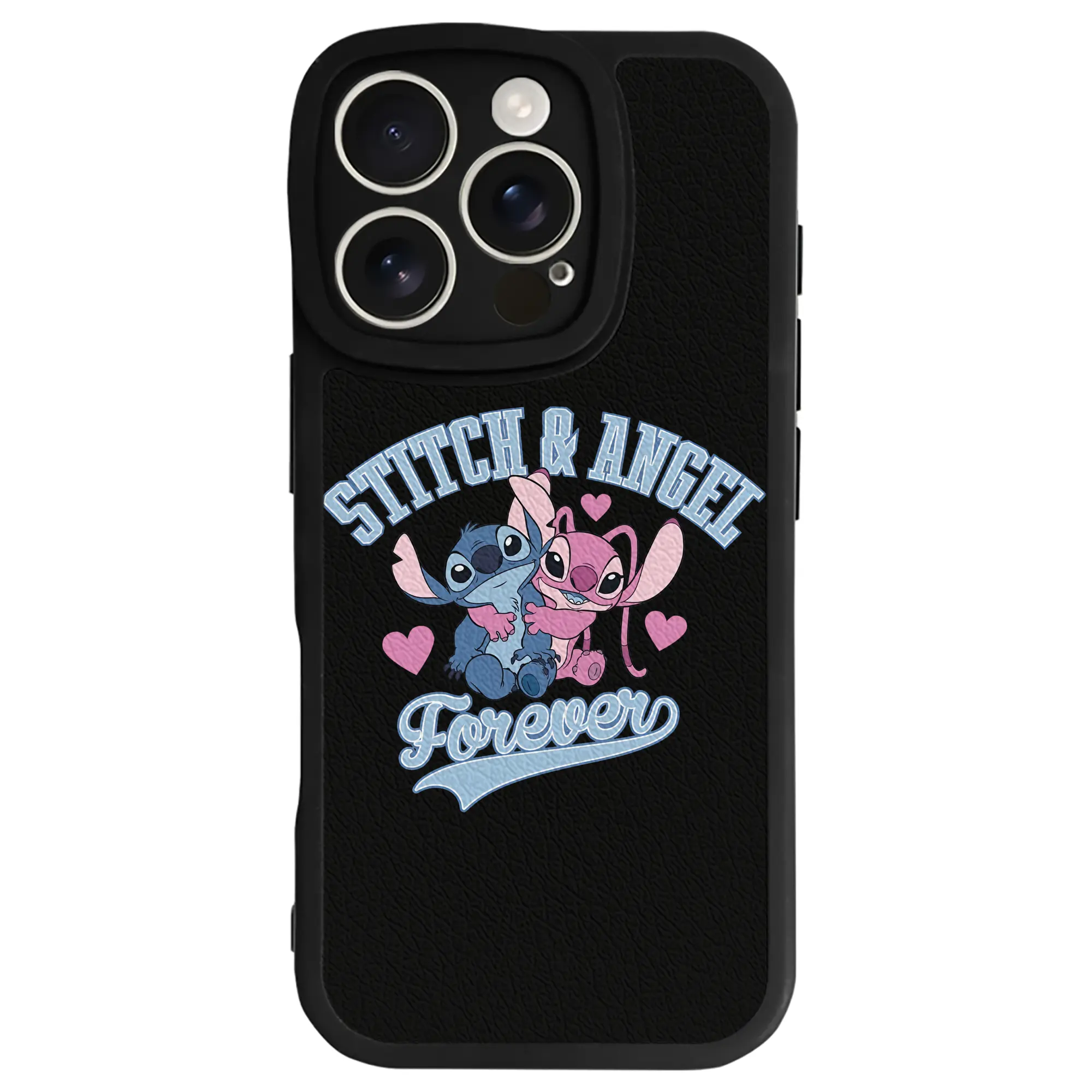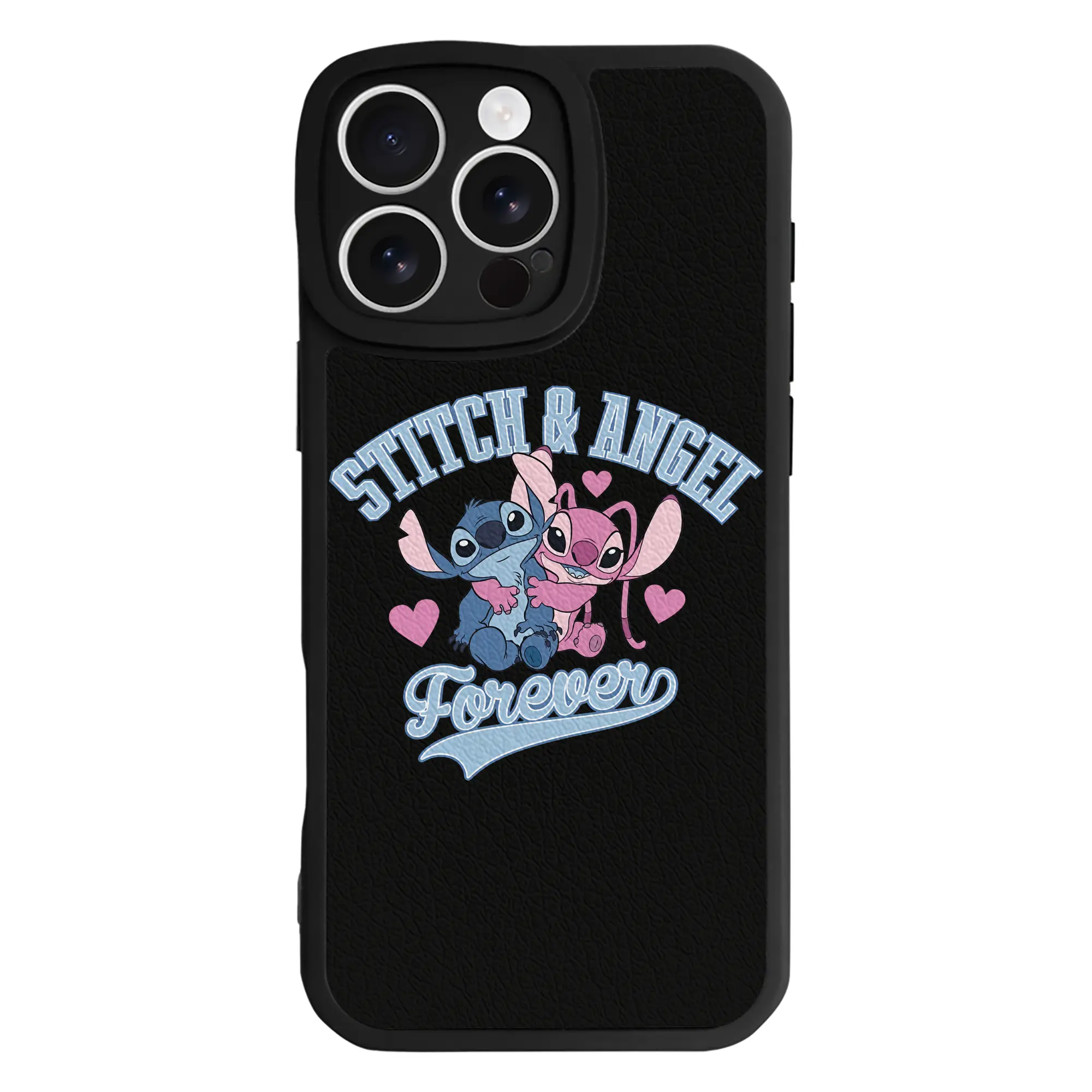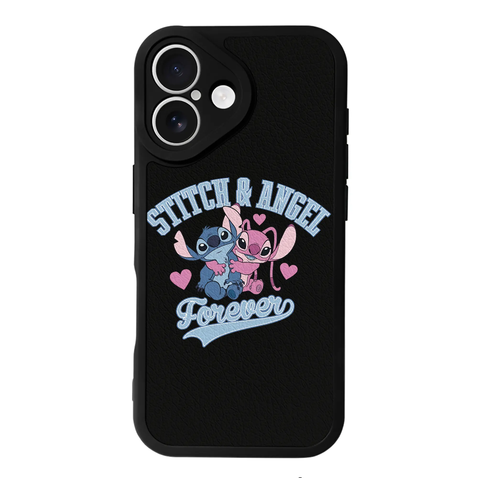 リロ&スティッチ グッズ エンジェル - IPhone 16シリーズ対応 ・ シリコンスマホケース ・ レザー調 ・ 高精度フィット ・ 耐衝撃 ・ ワイヤレス充電対応 ・ 精密カット