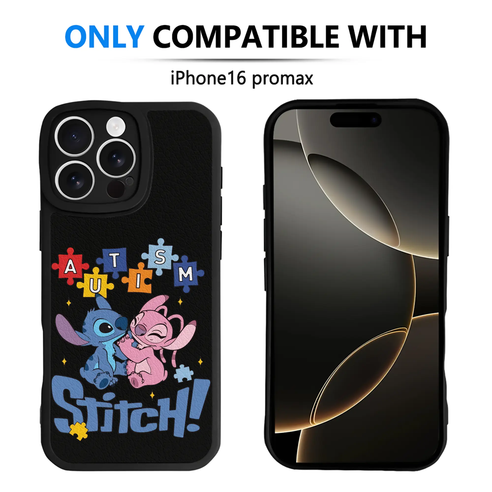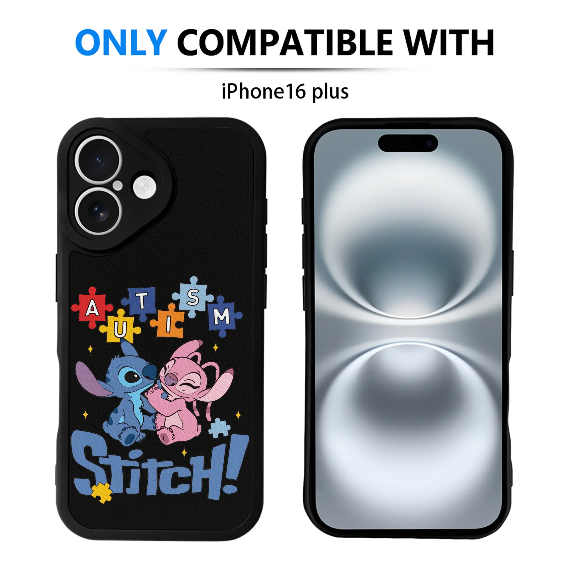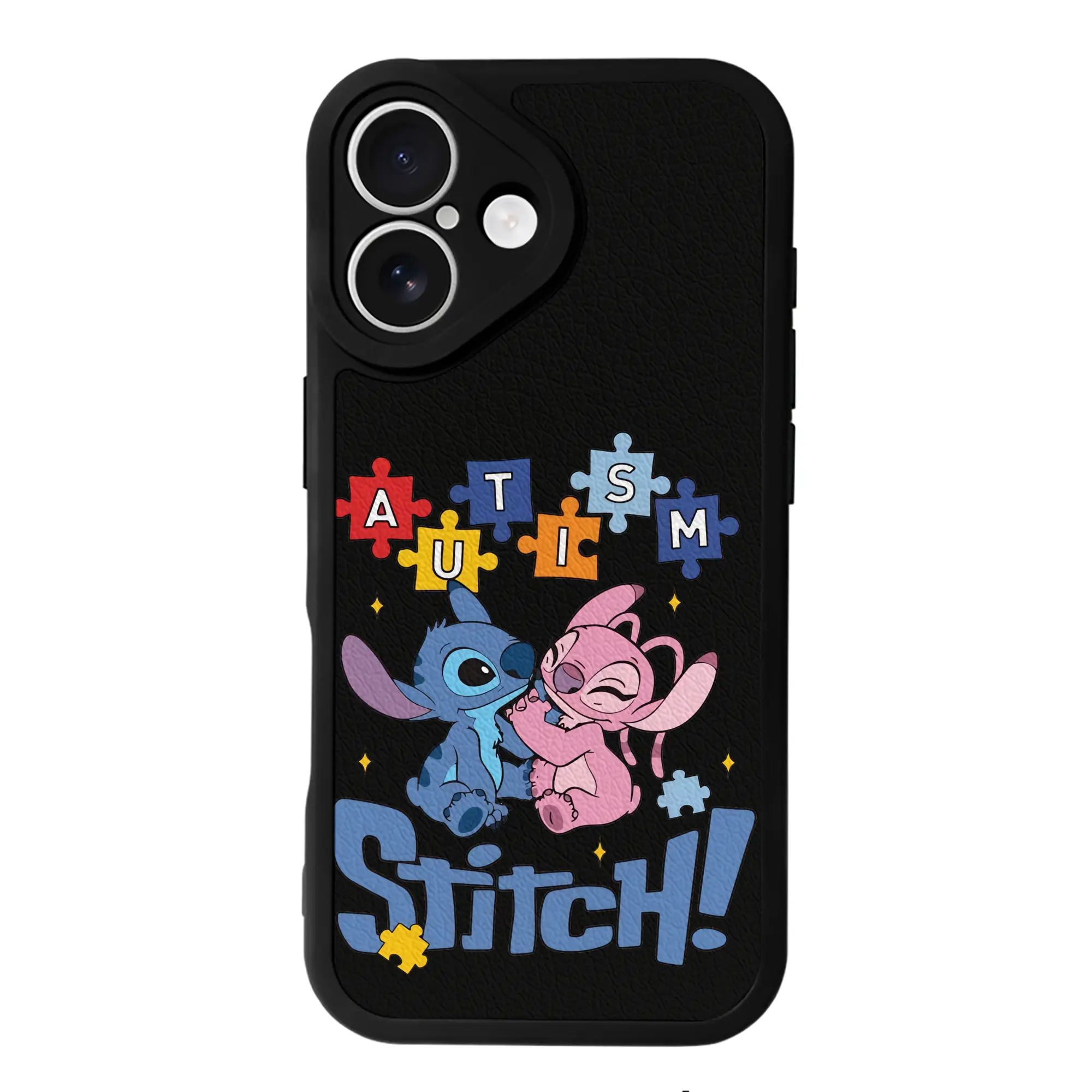 リロ&スティッチ グッズ エンジェル - IPhone 16シリーズ対応 ・ シリコンスマホケース ・ レザー調 ・ 高精度フィット ・ 耐衝撃 ・ ワイヤレス充電対応 ・ 精密カット