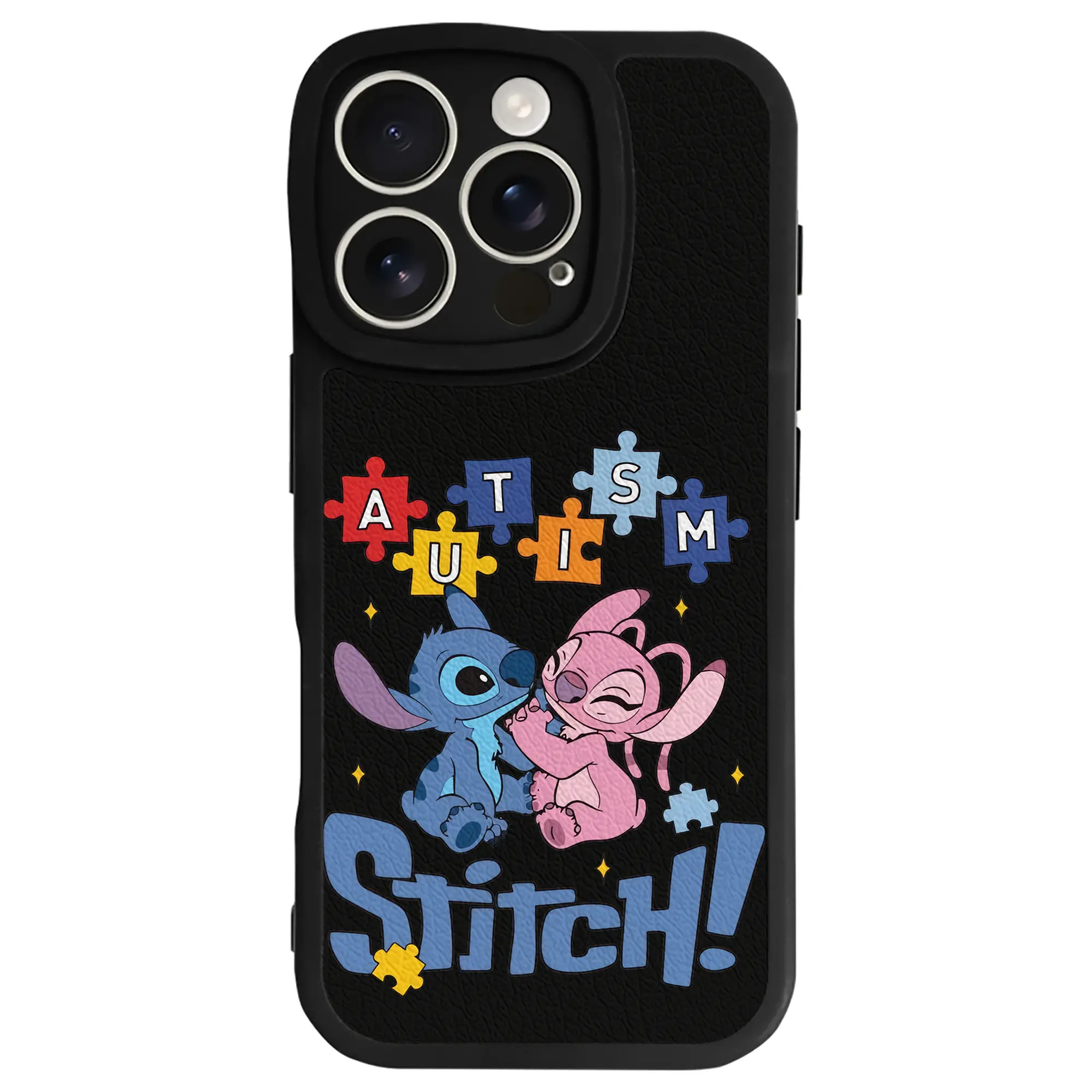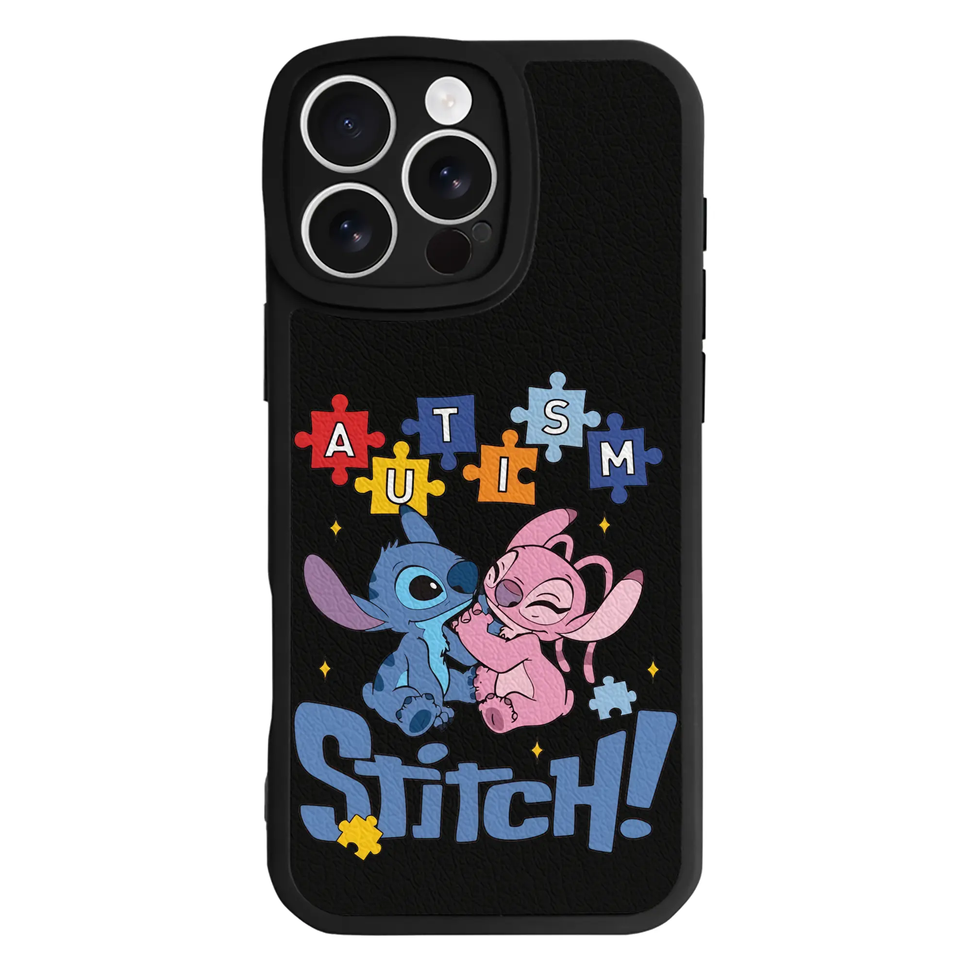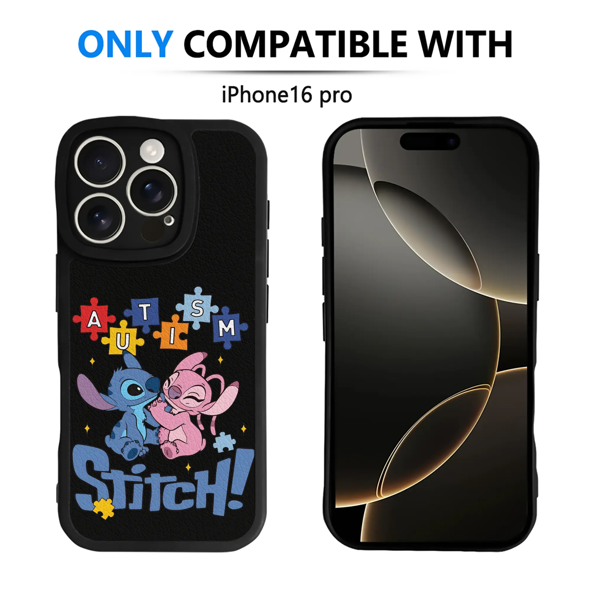 リロ&スティッチ グッズ エンジェル - IPhone 16シリーズ対応 ・ シリコンスマホケース ・ レザー調 ・ 高精度フィット ・ 耐衝撃 ・ ワイヤレス充電対応 ・ 精密カット