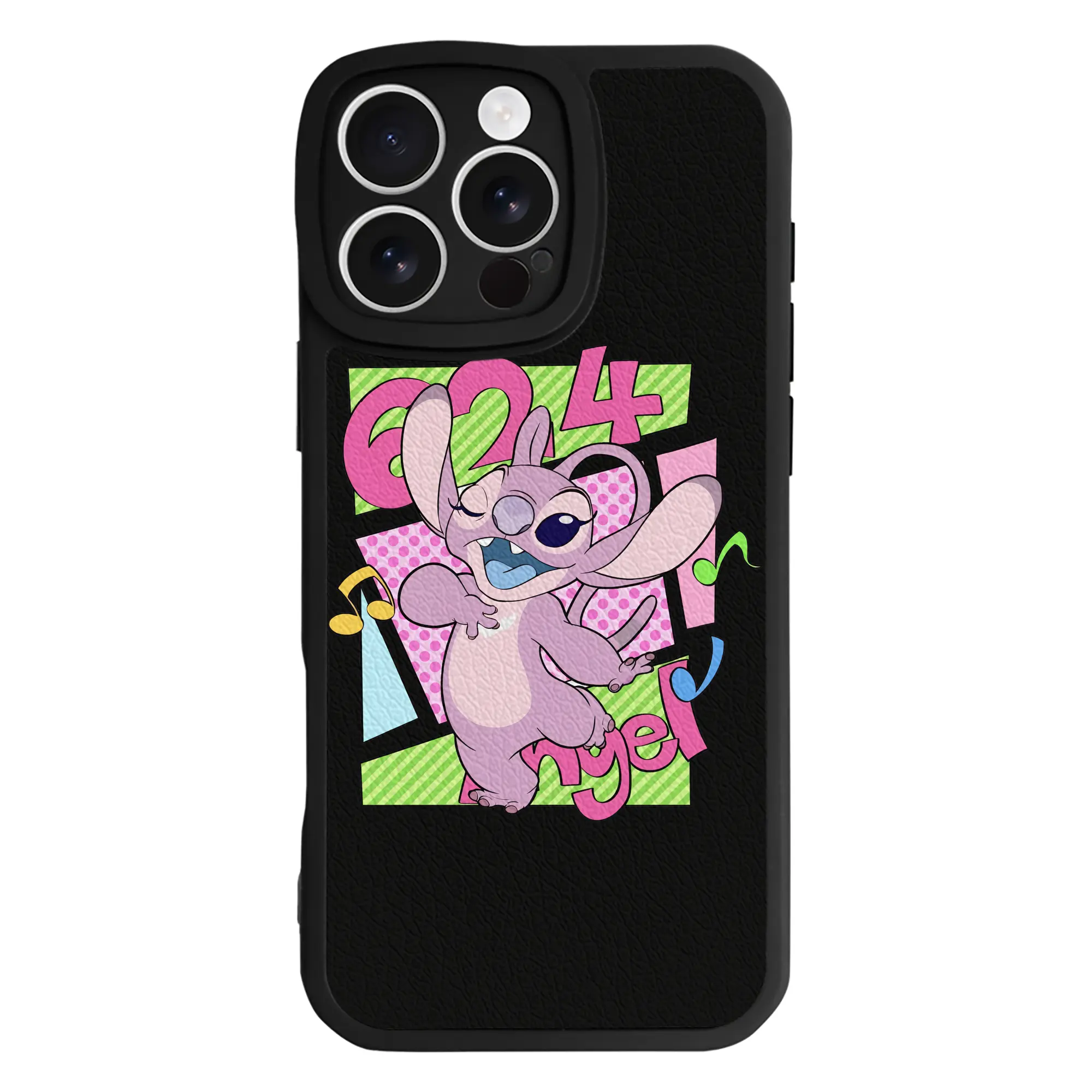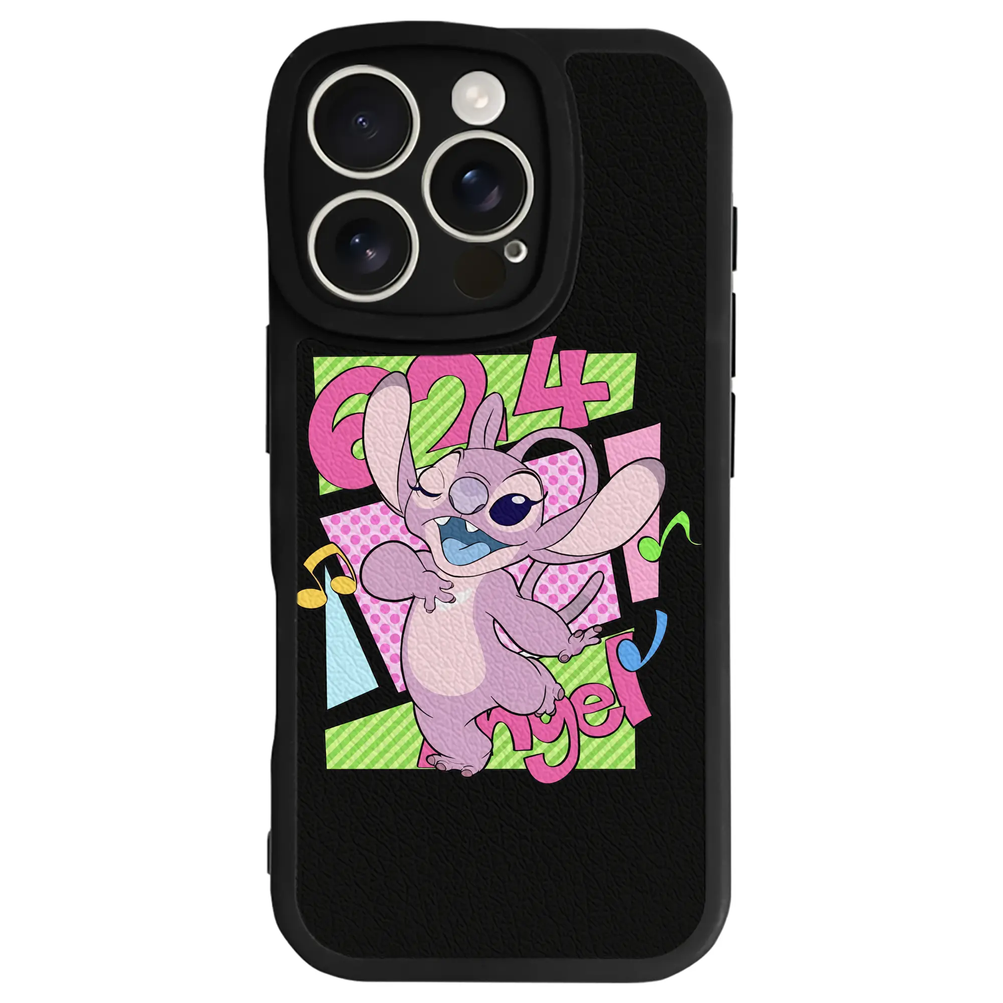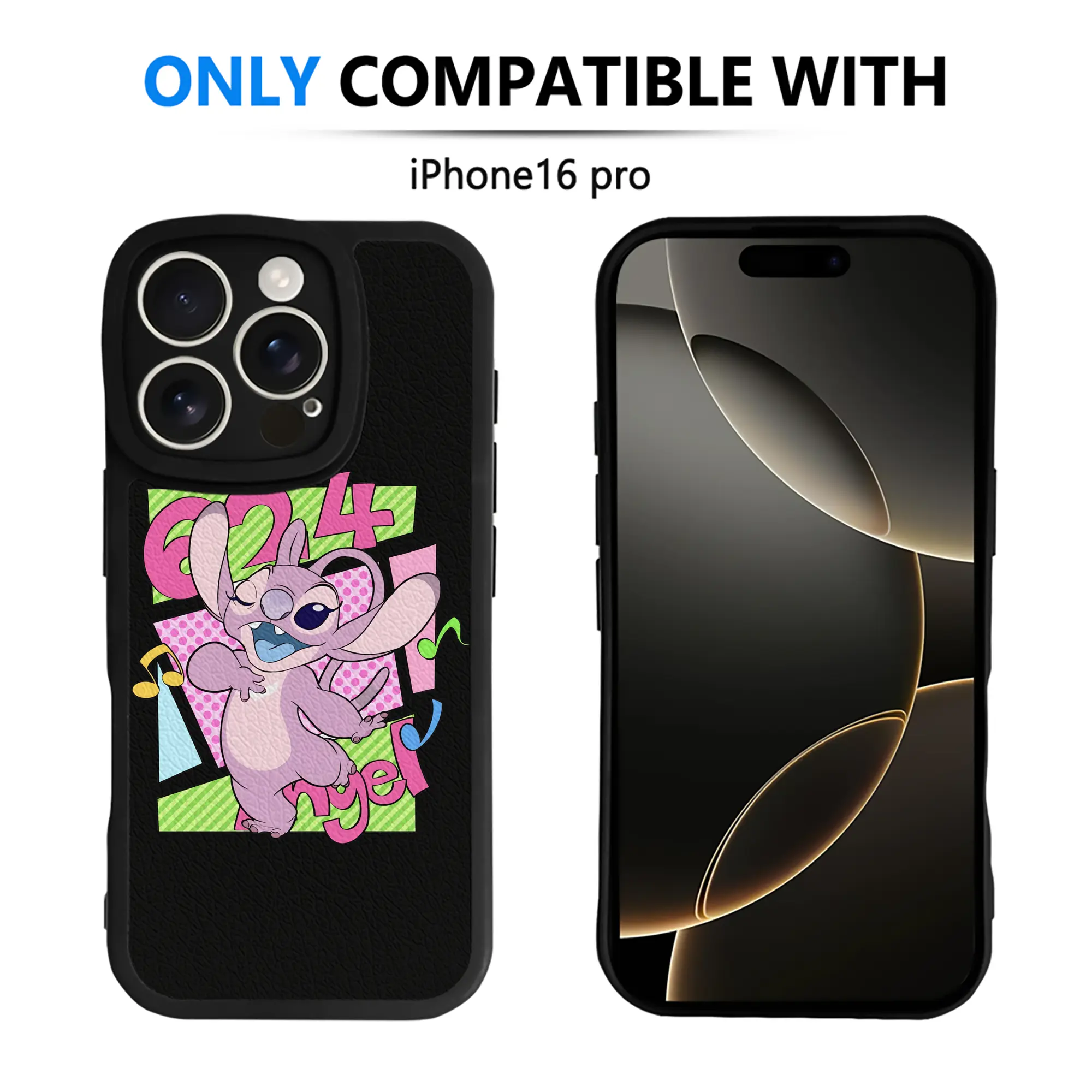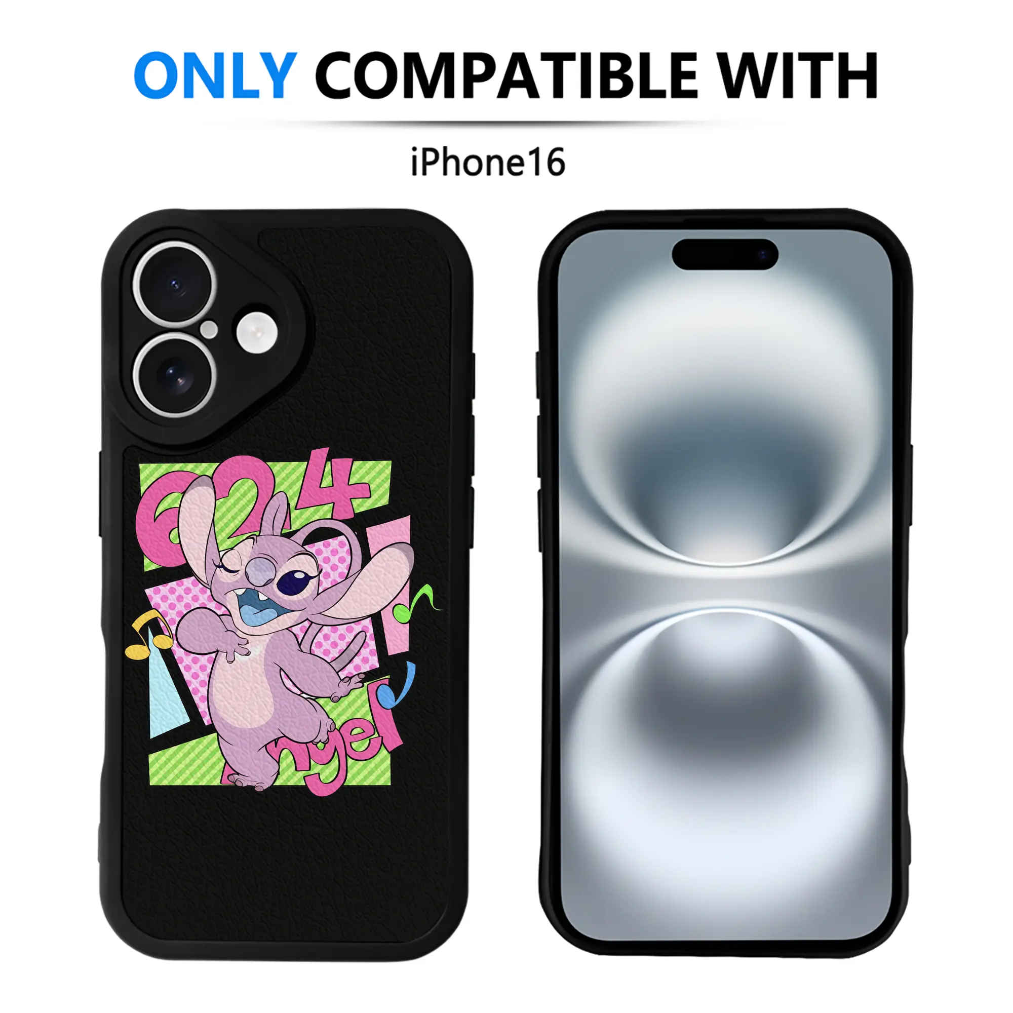 リロ&スティッチ グッズ エンジェル - IPhone 16シリーズ対応 ・ シリコンスマホケース ・ レザー調 ・ 高精度フィット ・ 耐衝撃 ・ ワイヤレス充電対応 ・ 精密カット