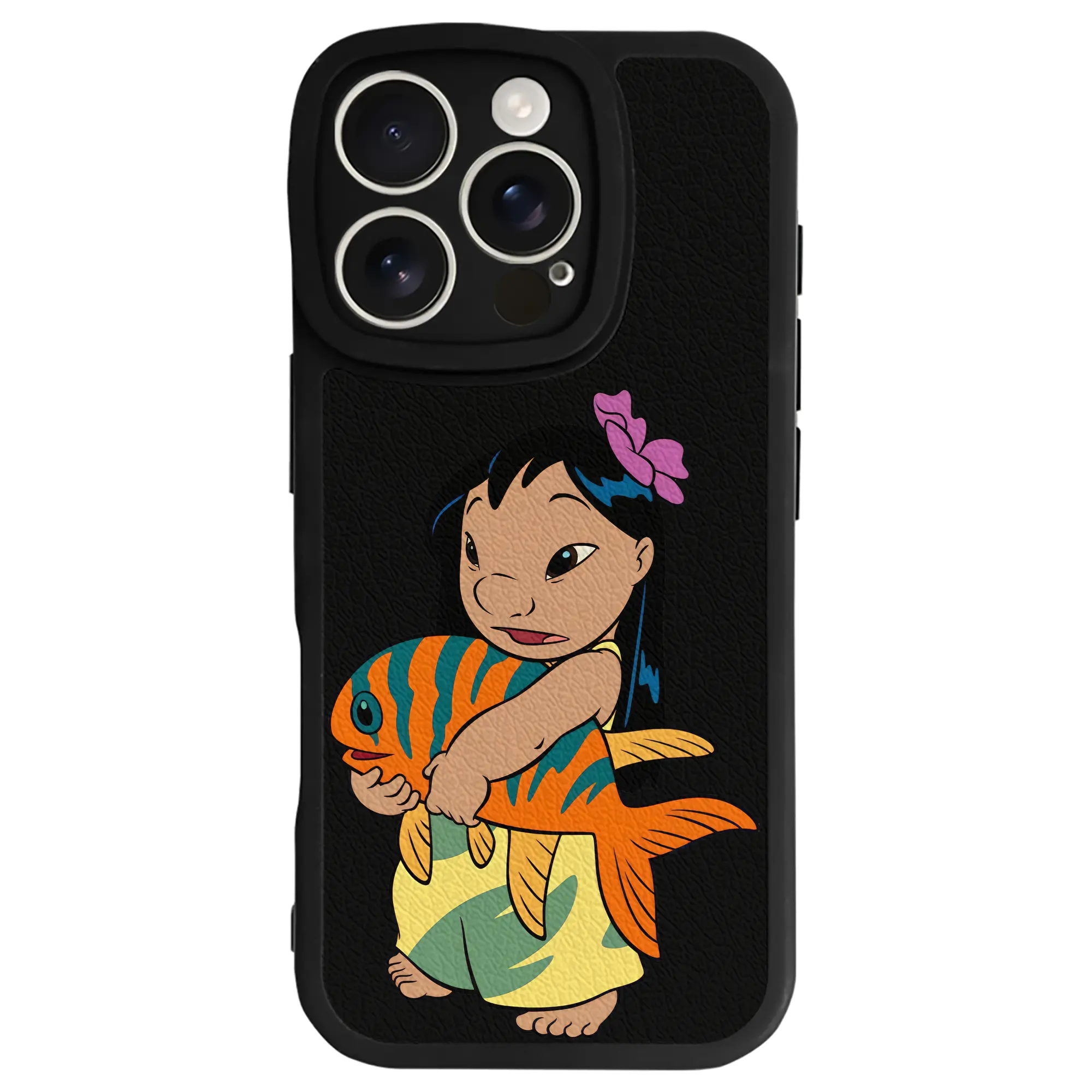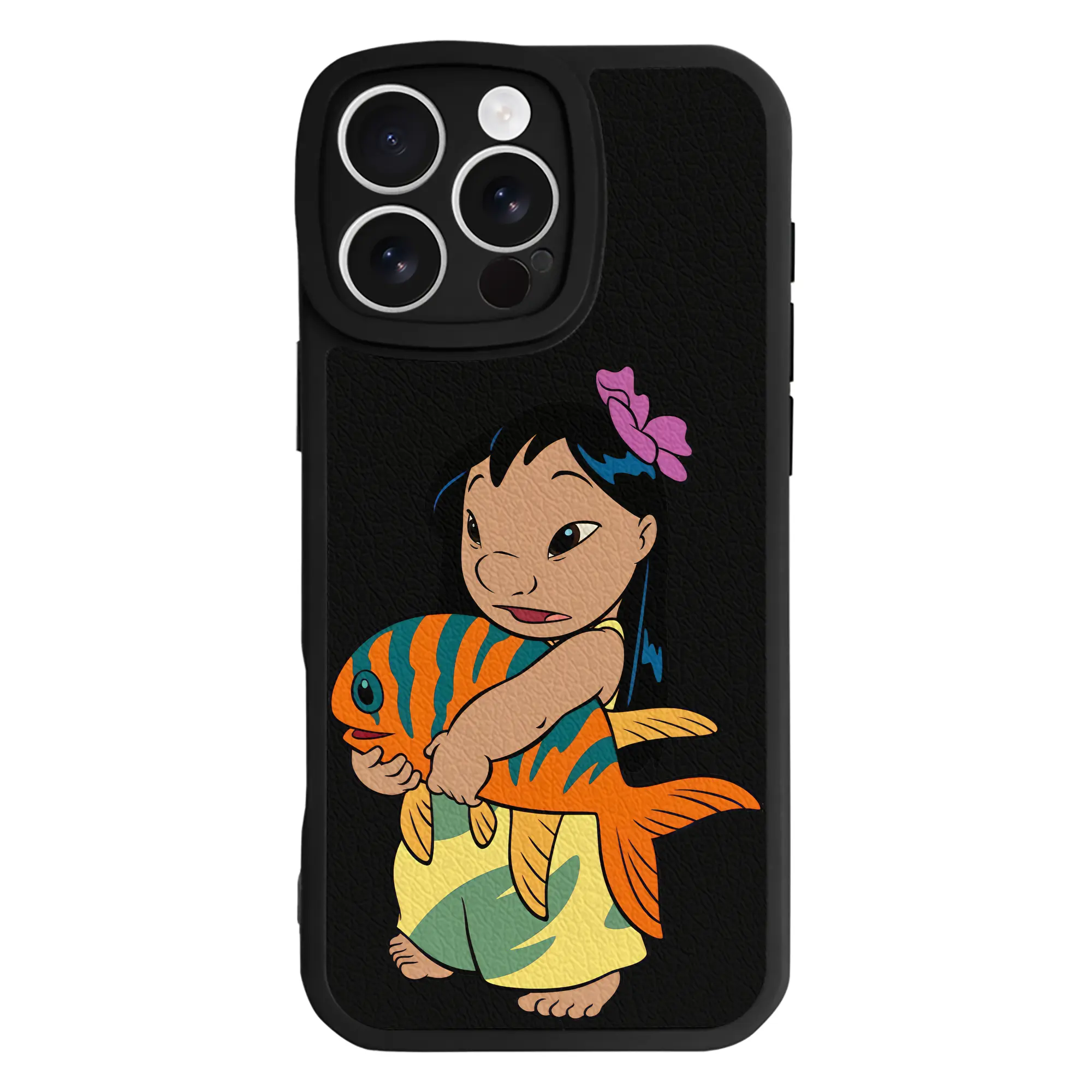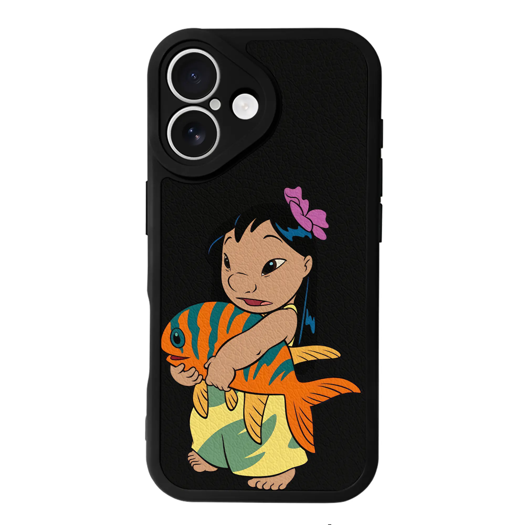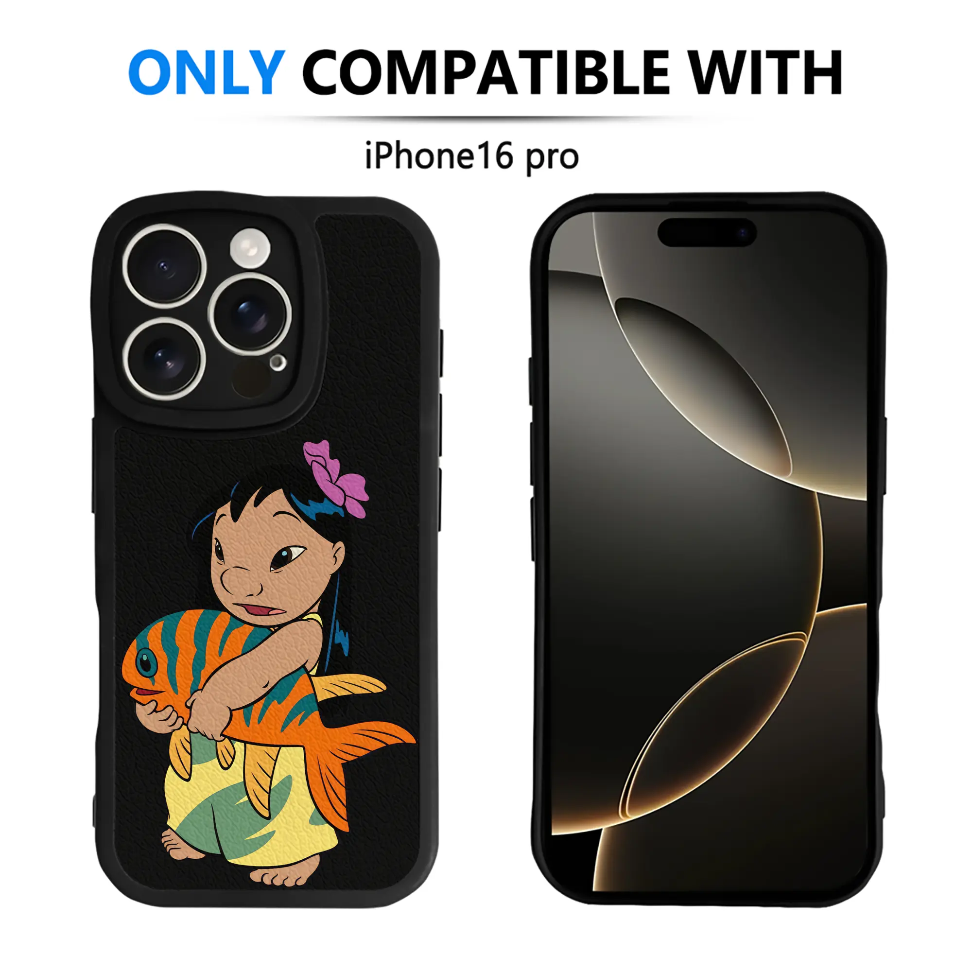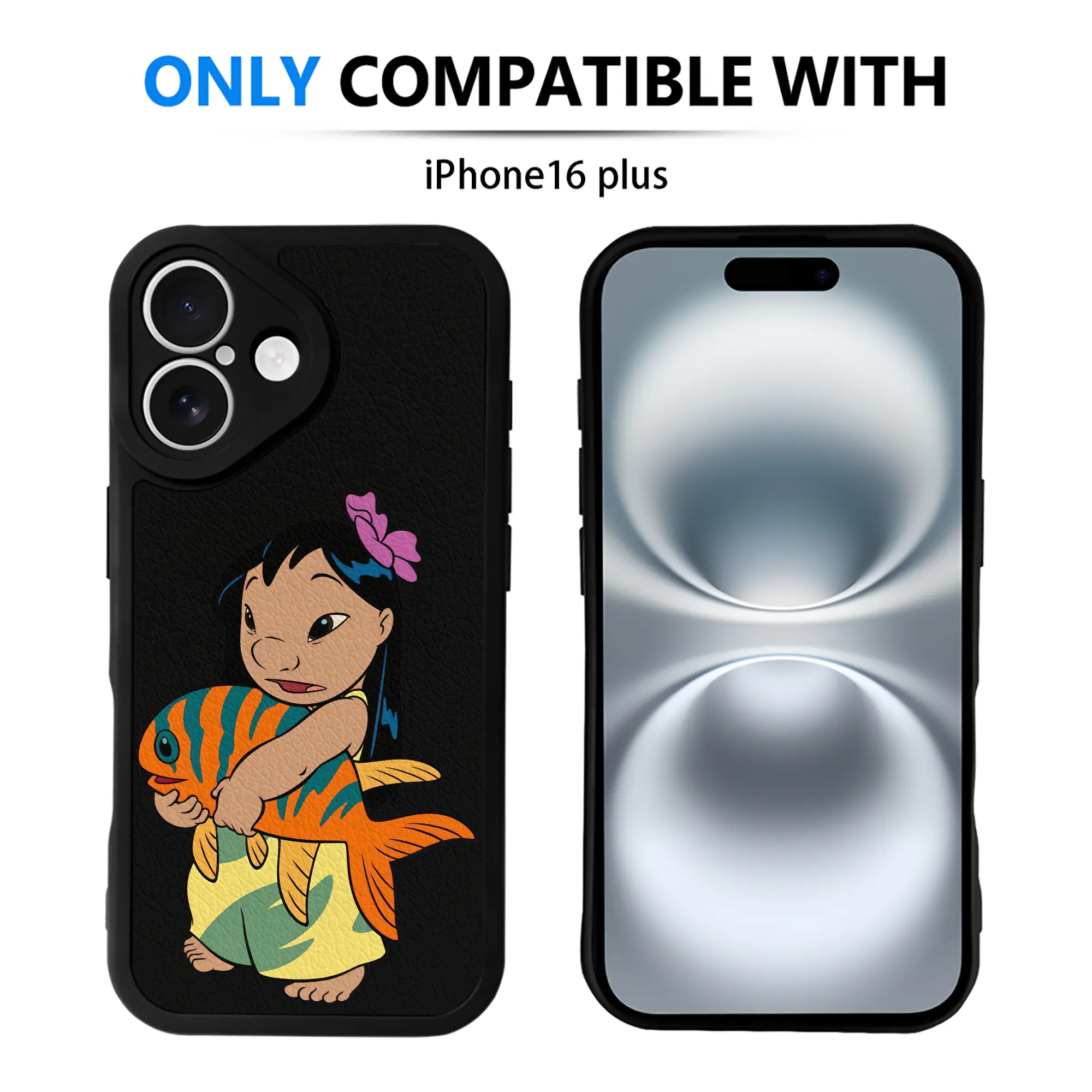 リロ&スティッチ グッズ リロ - IPhone 16シリーズ対応 ・ シリコンスマホケース ・ レザー調 ・ 高精度フィット ・ 耐衝撃 ・ ワイヤレス充電対応 ・ 精密カット