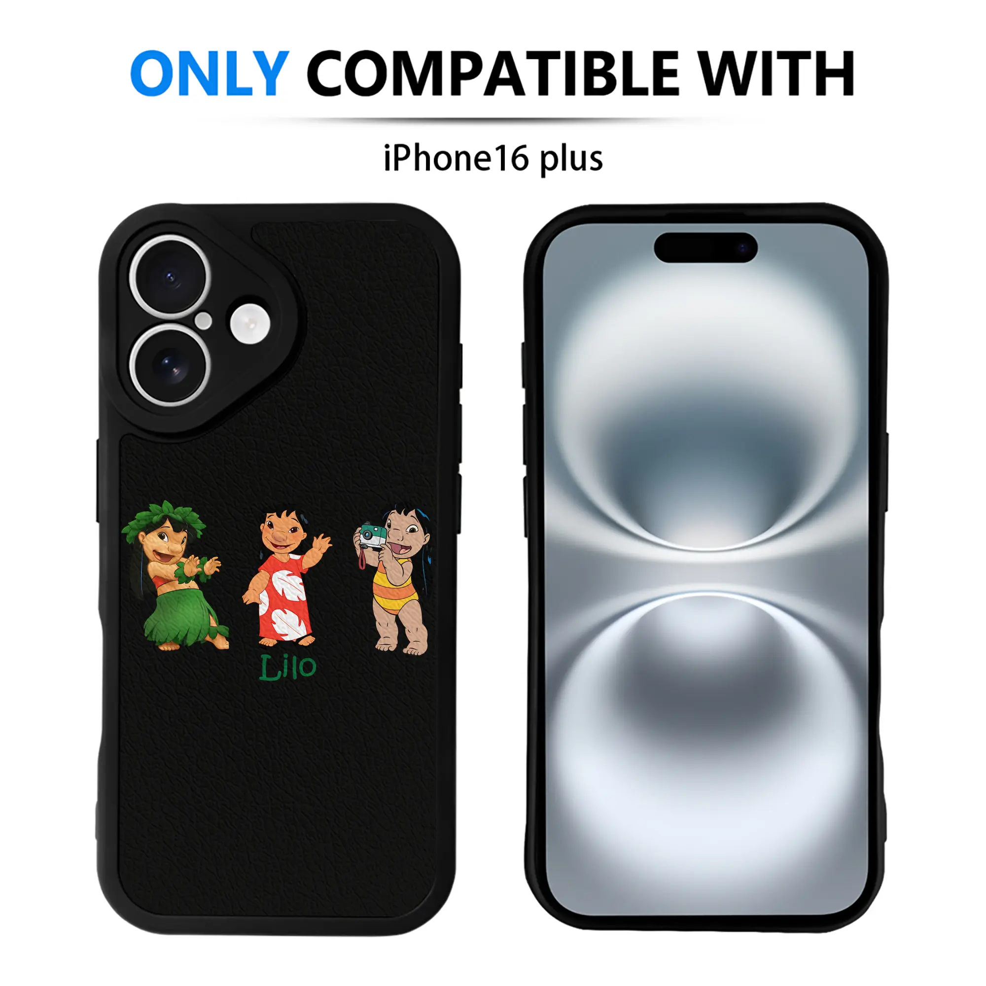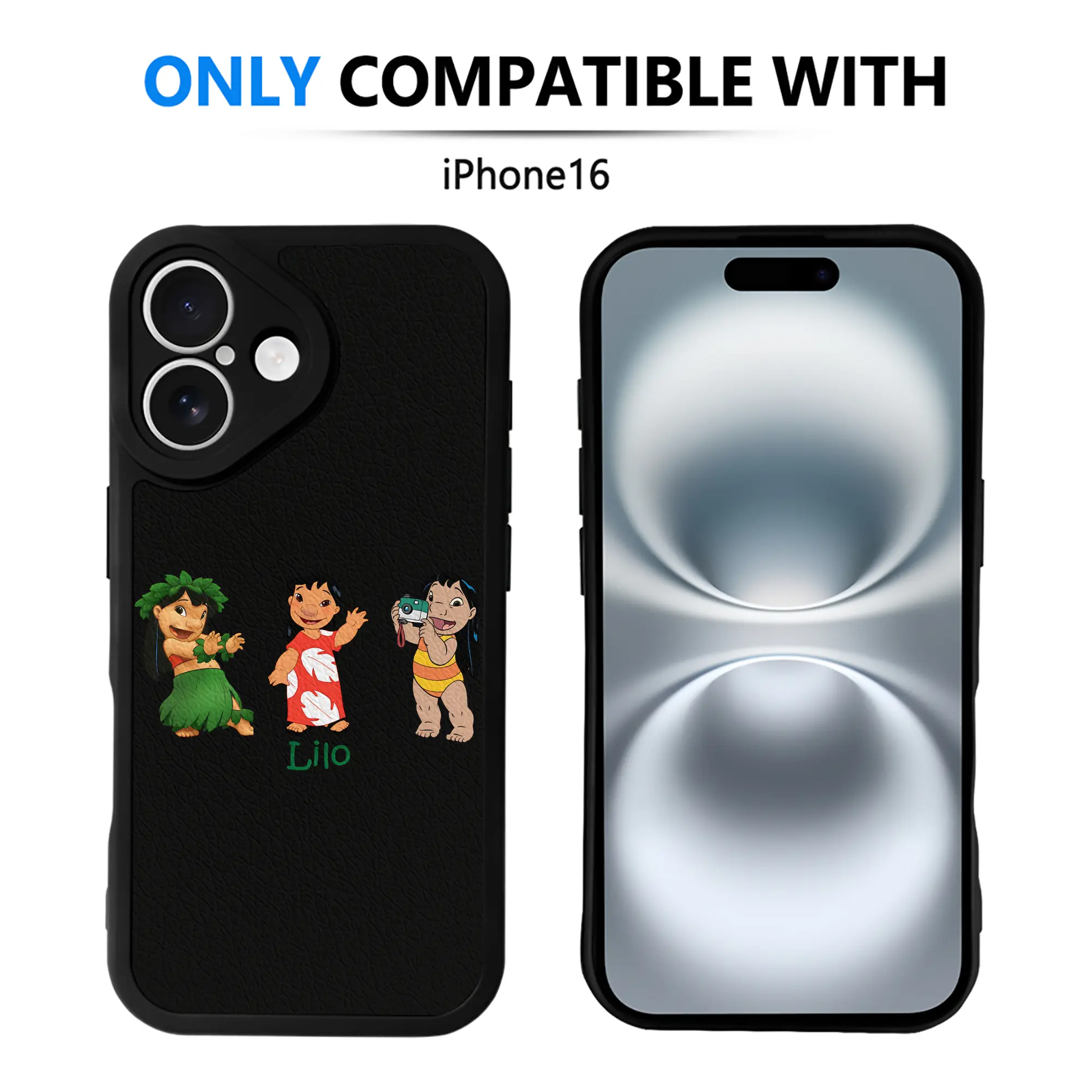リロ&スティッチ グッズ リロ - IPhone 16シリーズ対応 ・ シリコンスマホケース ・ レザー調 ・ 高精度フィット ・ 耐衝撃 ・ ワイヤレス充電対応 ・ 精密カット
