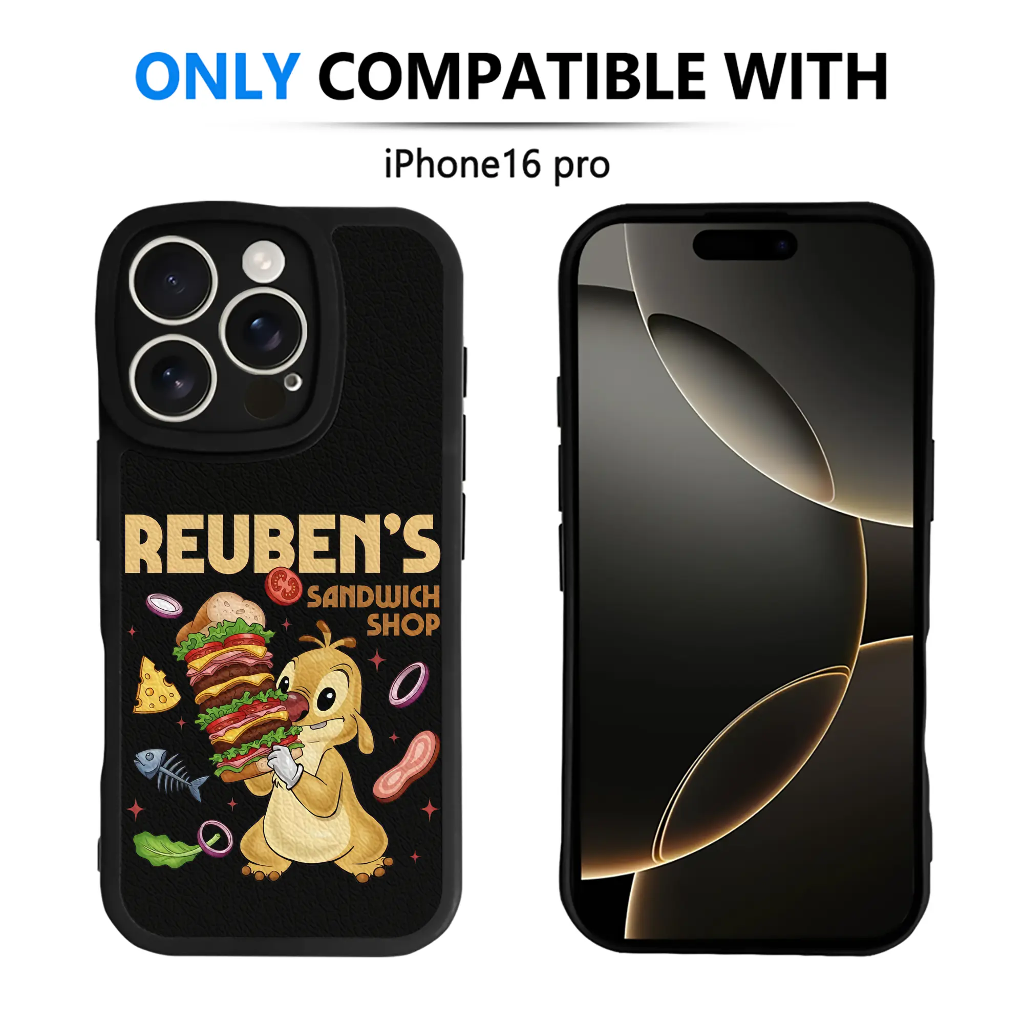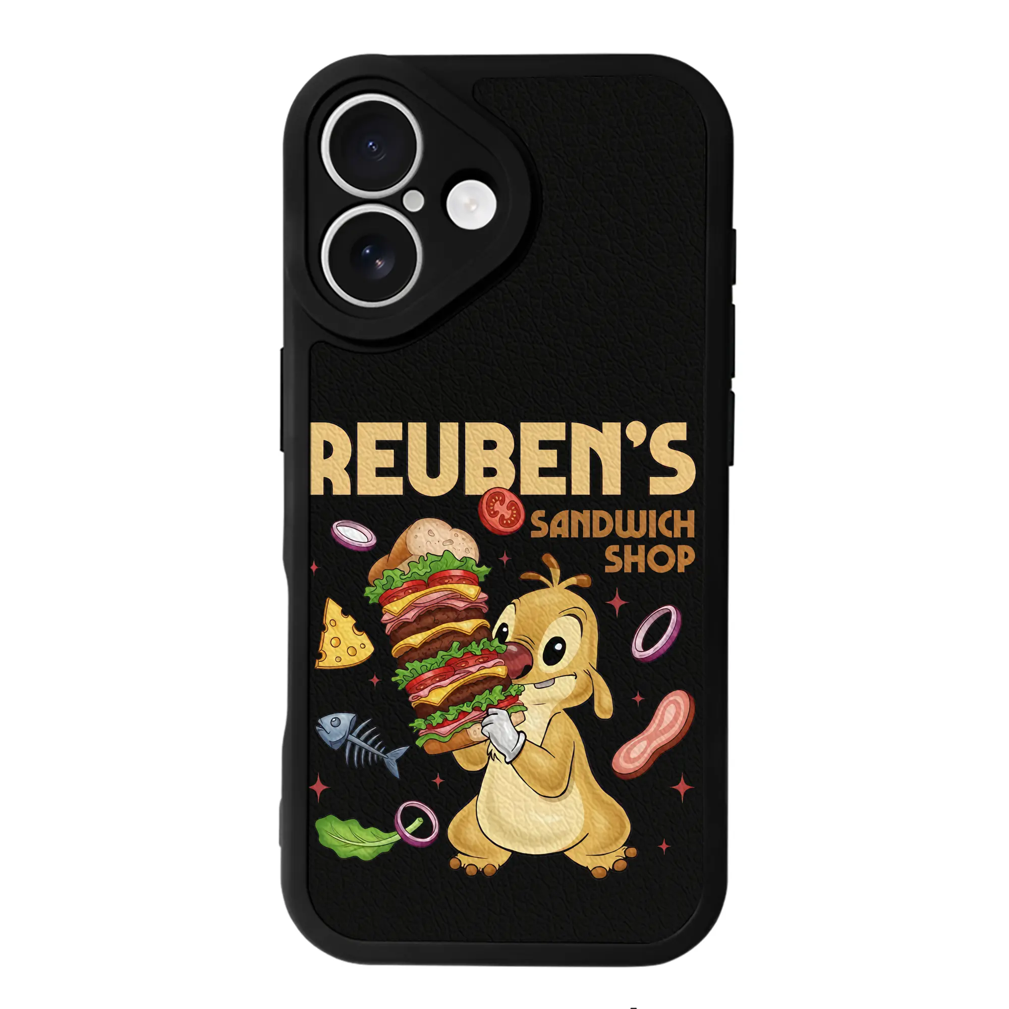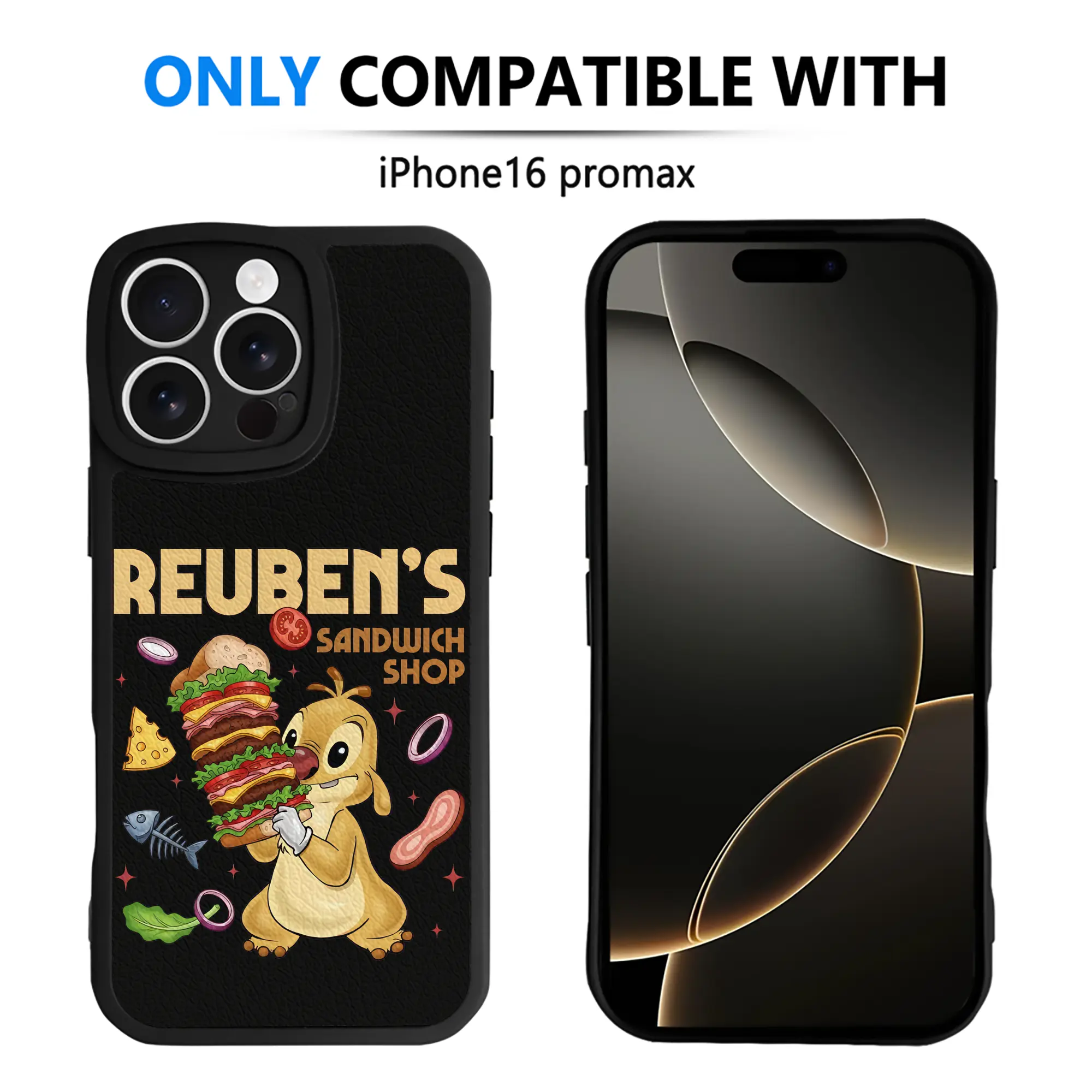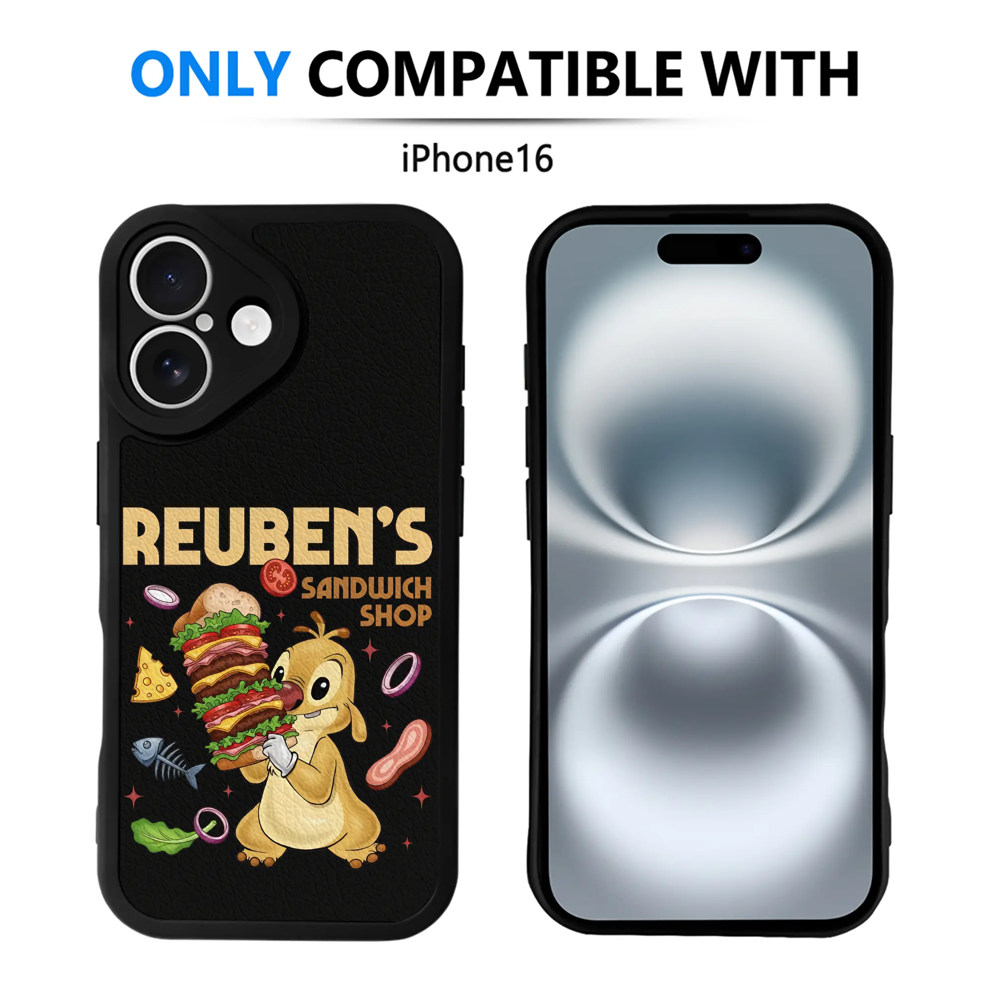 リロ&スティッチ グッズ ルーベン - IPhone 16シリーズ対応 ・ シリコンスマホケース ・ レザー調 ・ 高精度フィット ・ 耐衝撃 ・ ワイヤレス充電対応 ・ 精密カット