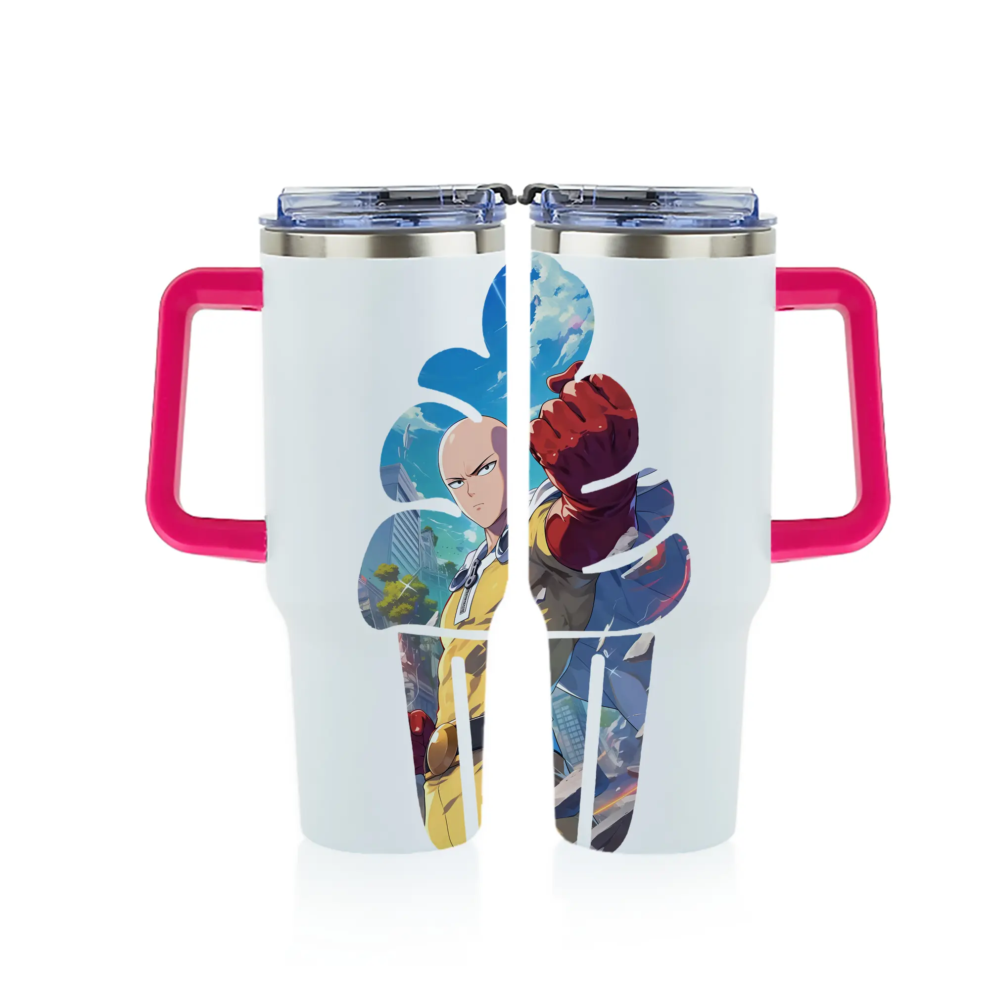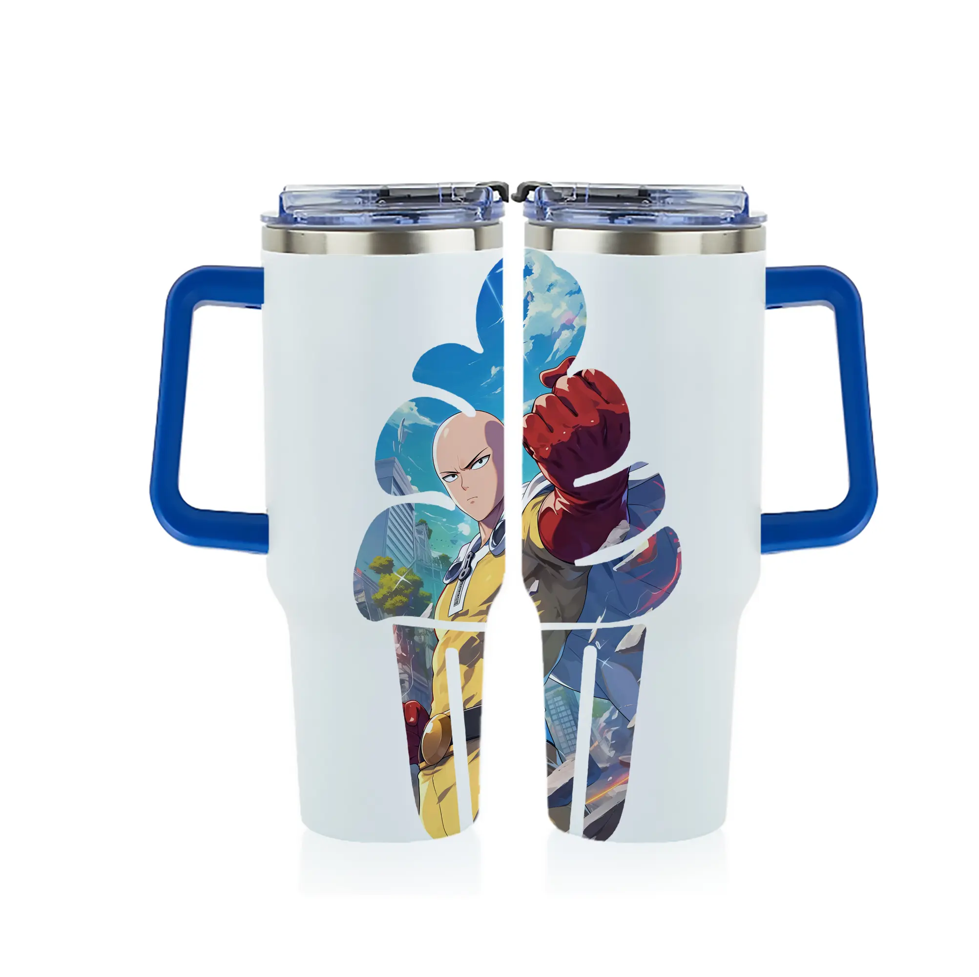 ワンパンマン グッズ サイタマ - 1200mL フルプリント車用タンブラー ・ 304ステンレス 内側 ・ 201ステンレス 外側 ・ 保温 保冷 ・ 通勤 ドライブ アウトドア用