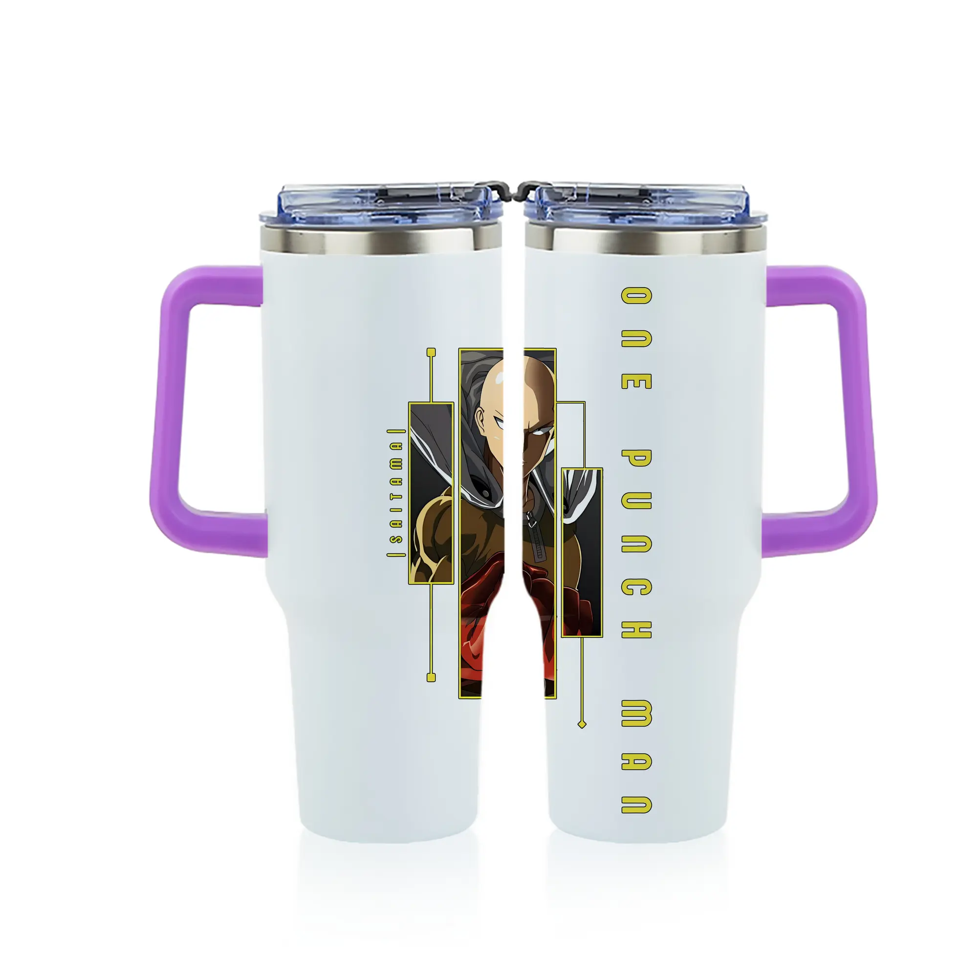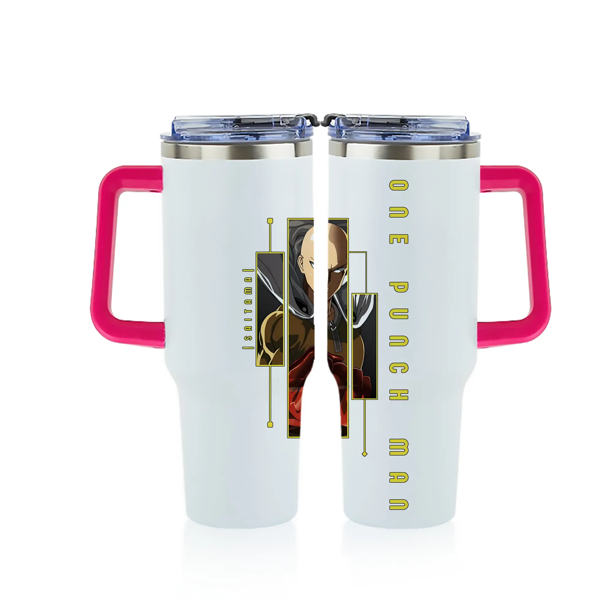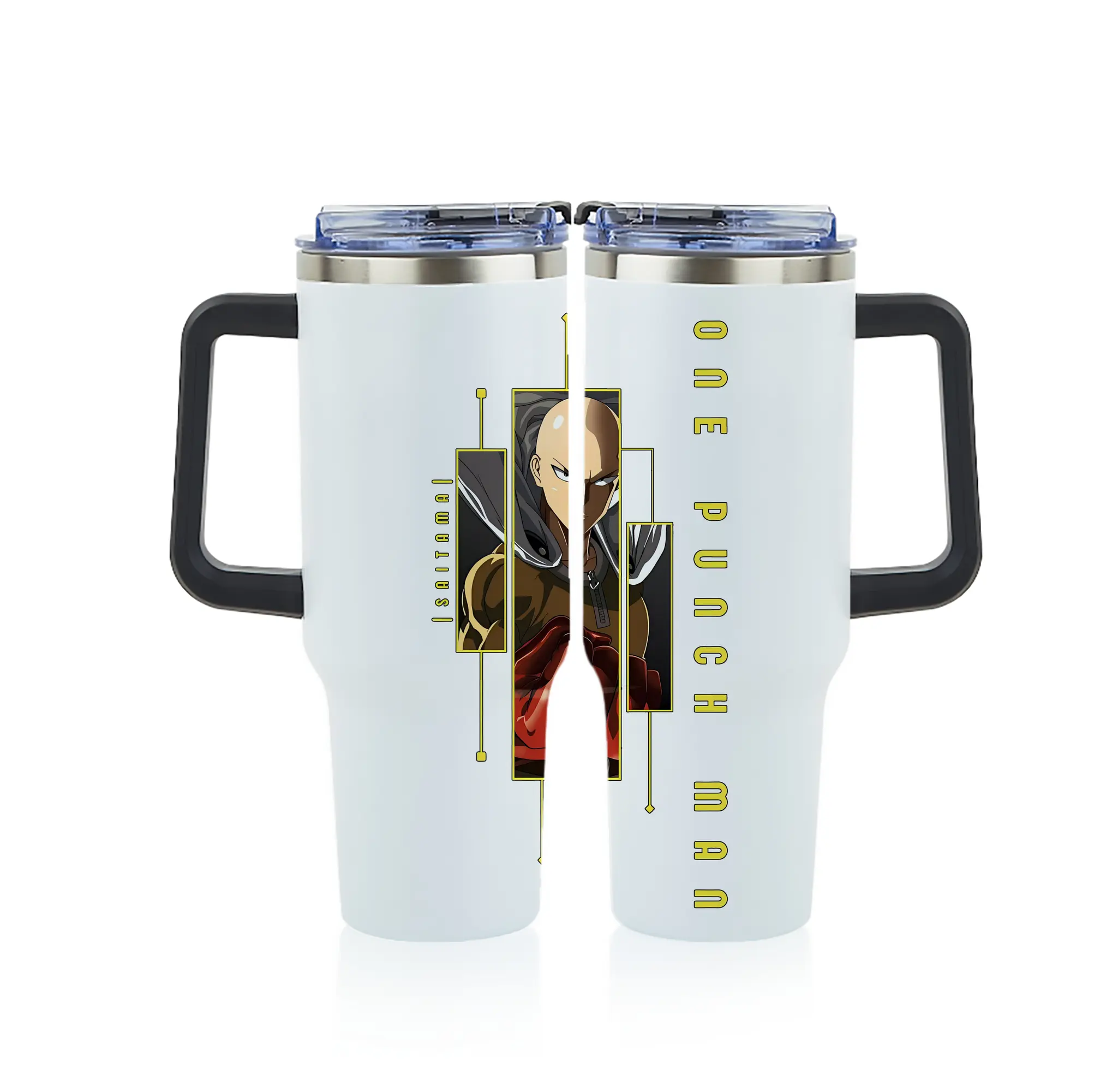 ワンパンマン グッズ サイタマ - 1200mL フルプリント車用タンブラー ・ 304ステンレス 内側 ・ 201ステンレス 外側 ・ 保温 保冷 ・ 通勤 ドライブ アウトドア用