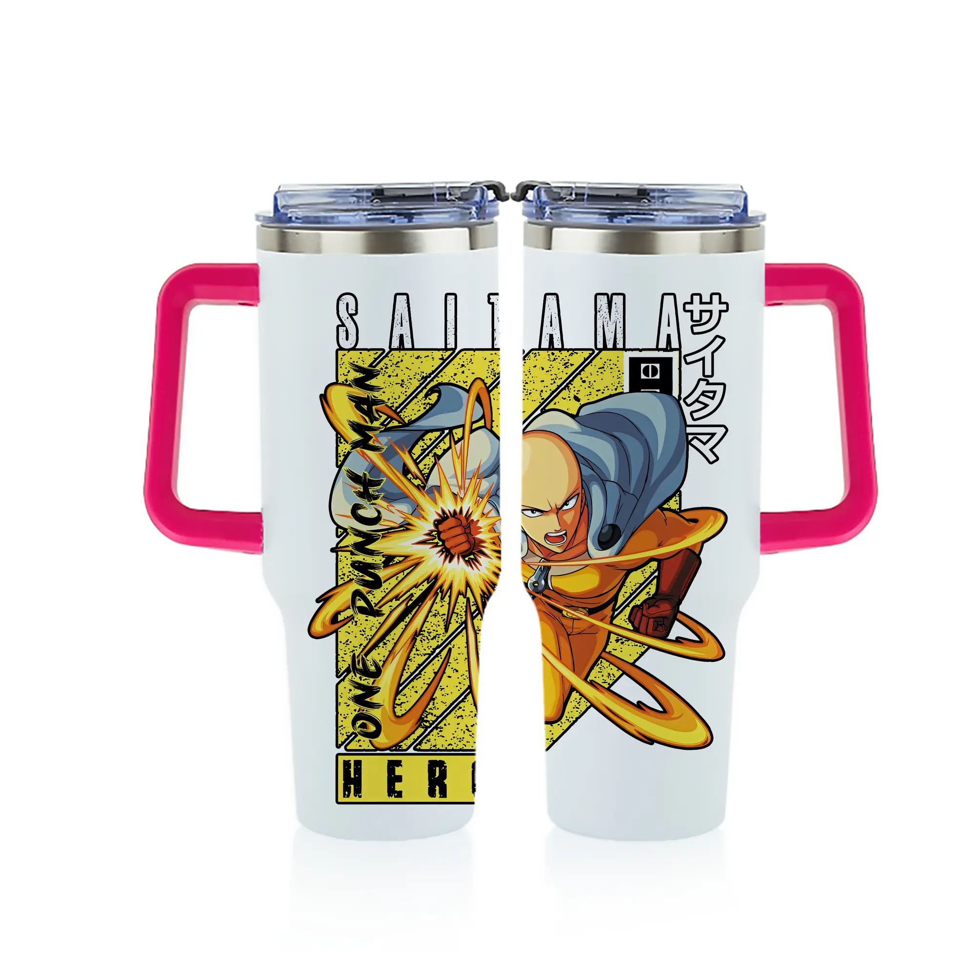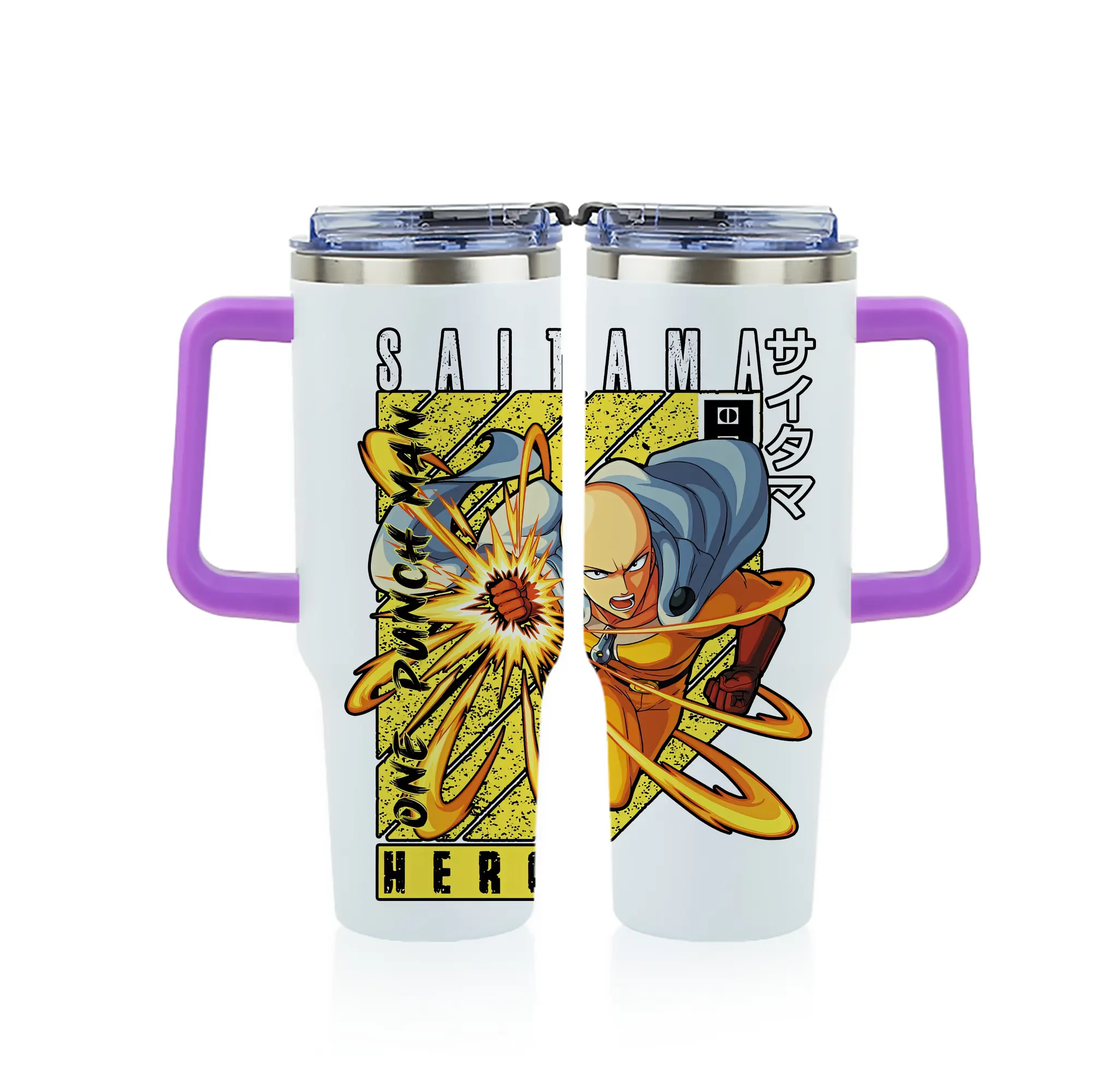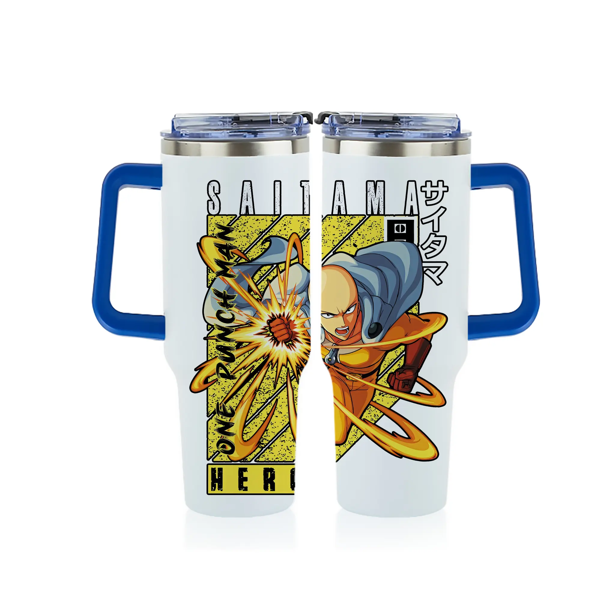 ワンパンマン グッズ サイタマ - 1200mL フルプリント車用タンブラー ・ 304ステンレス 内側 ・ 201ステンレス 外側 ・ 保温 保冷 ・ 通勤 ドライブ アウトドア用