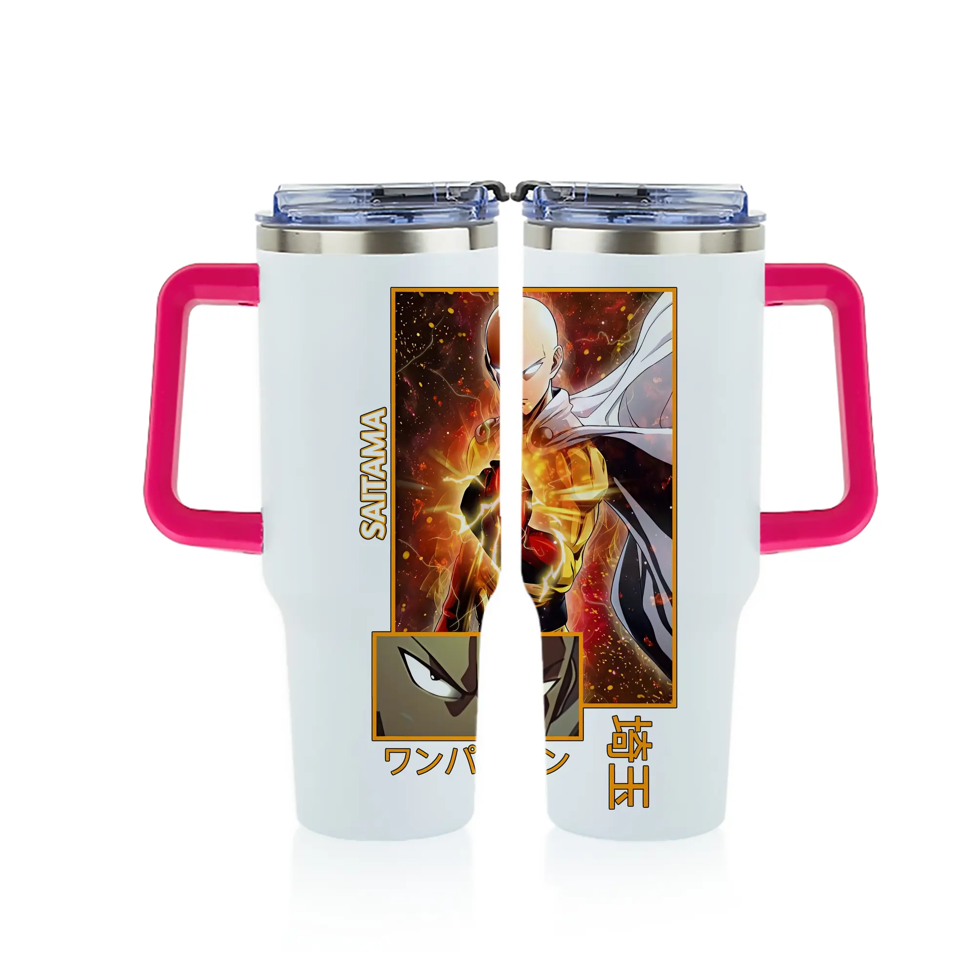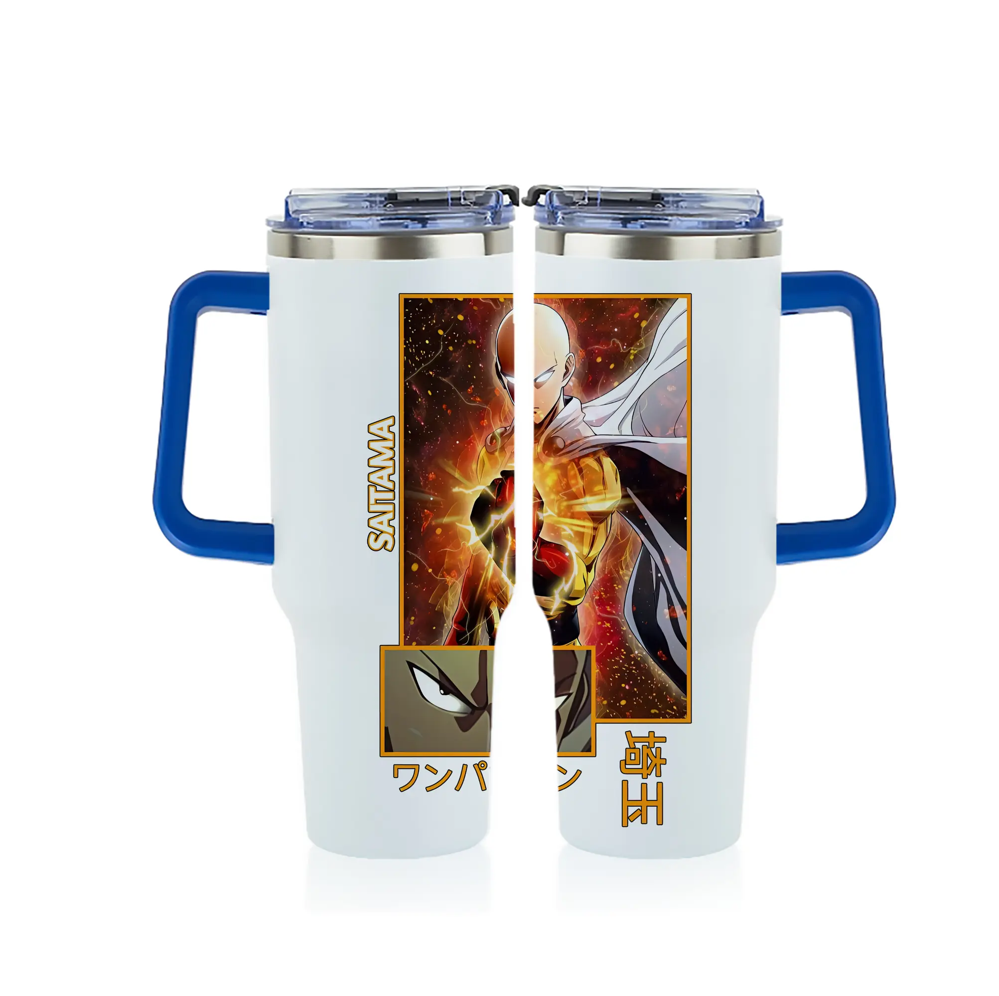 ワンパンマン グッズ サイタマ - 1200mL フルプリント車用タンブラー ・ 304ステンレス 内側 ・ 201ステンレス 外側 ・ 保温 保冷 ・ 通勤 ドライブ アウトドア用