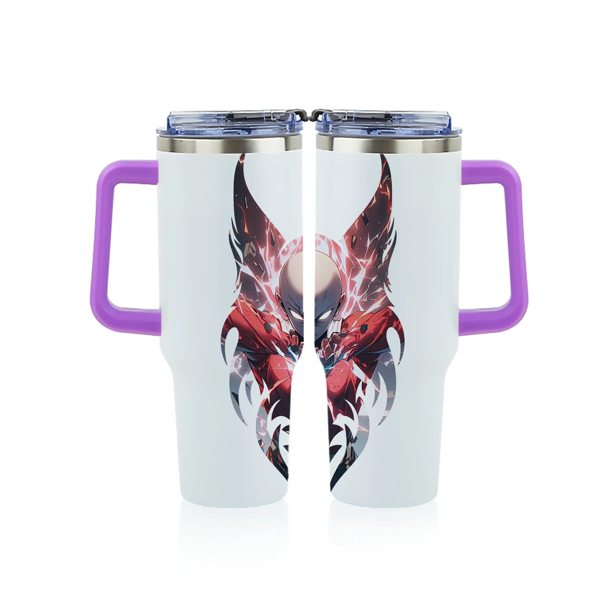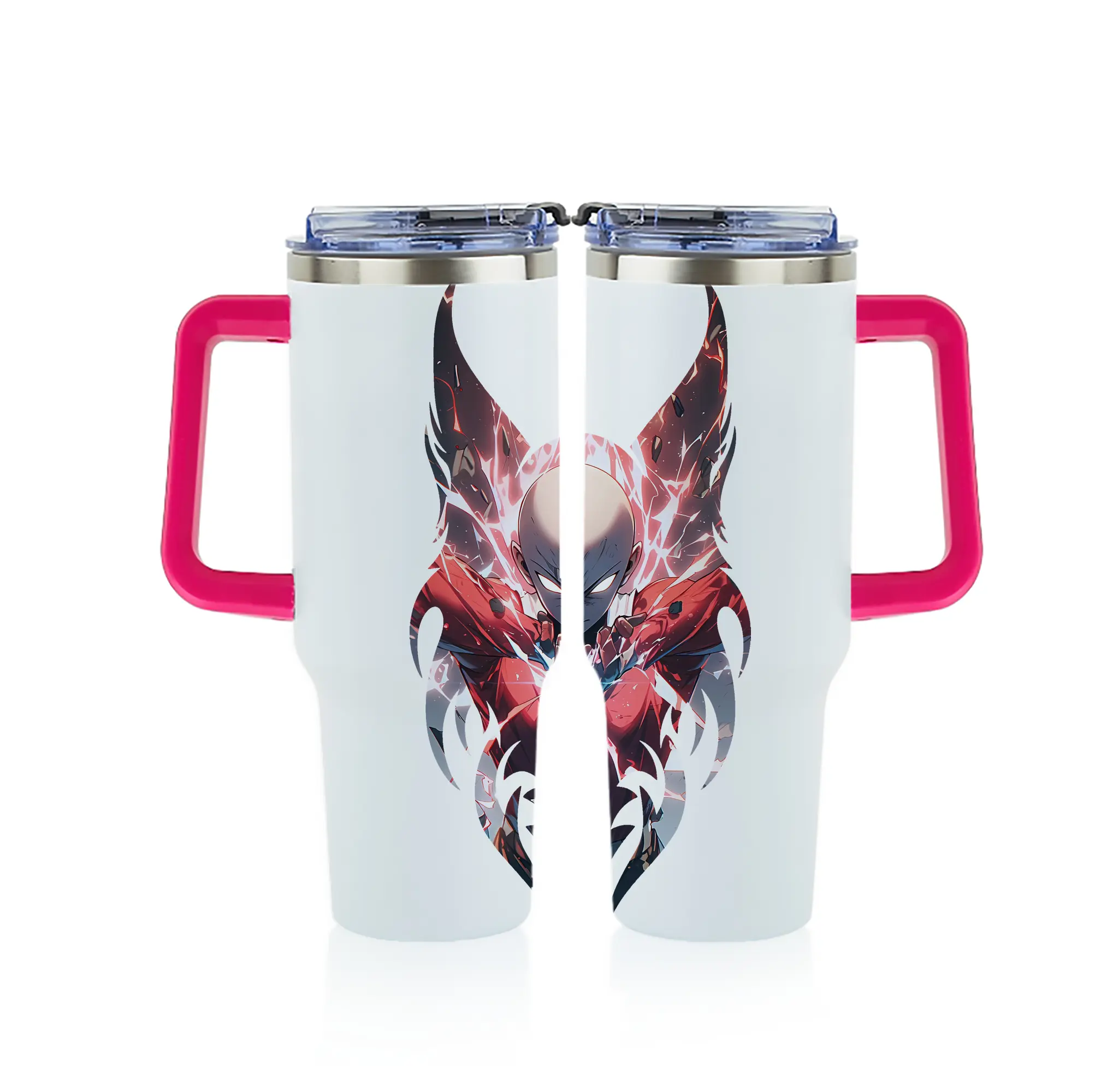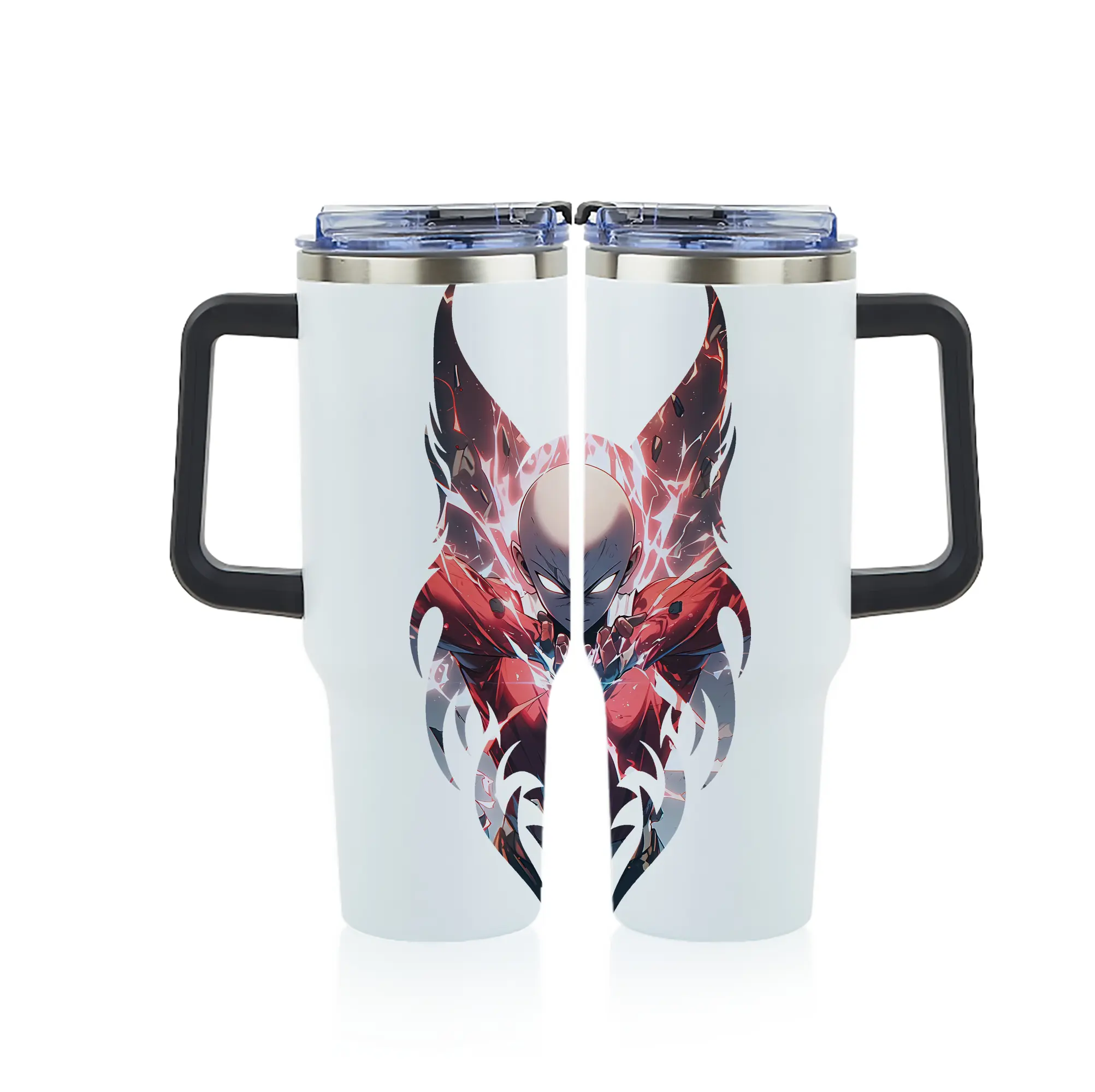 ワンパンマン グッズ サイタマ - 1200mL フルプリント車用タンブラー ・ 304ステンレス 内側 ・ 201ステンレス 外側 ・ 保温 保冷 ・ 通勤 ドライブ アウトドア用