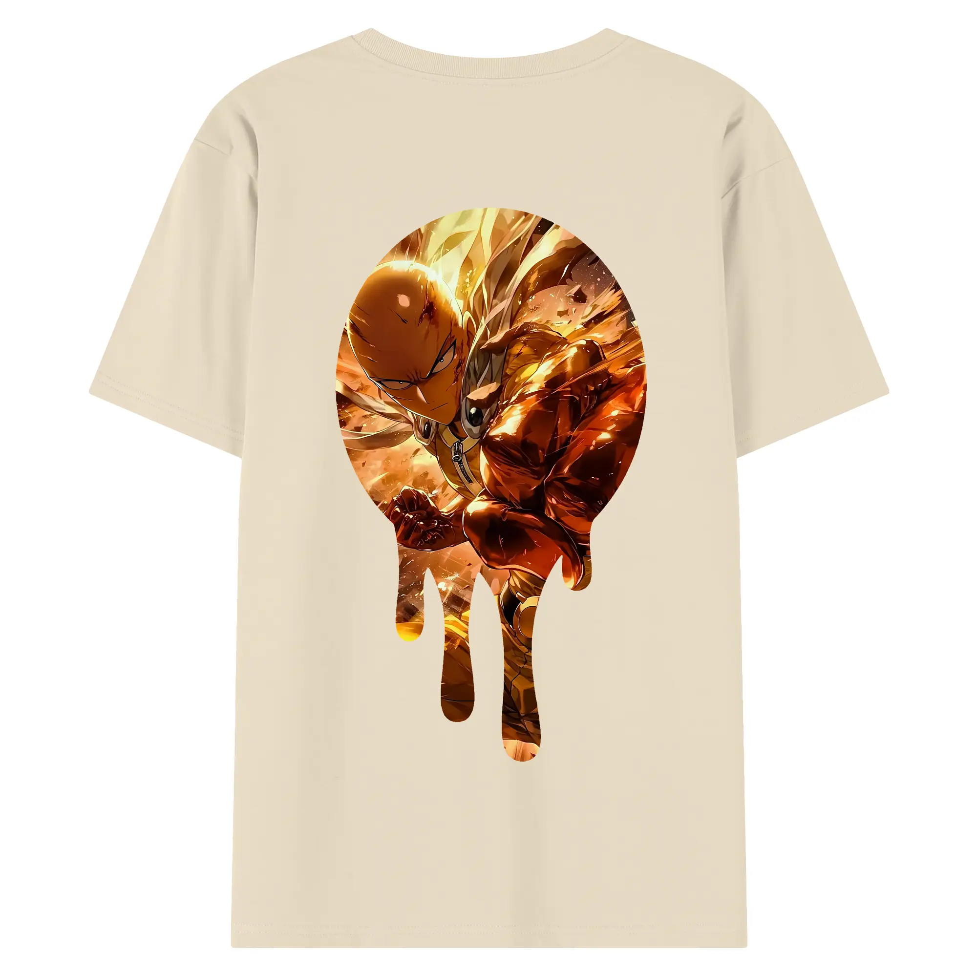 ワンパンマン グッズ サイタマ - 綿100% ヴィンテージ風 半袖Tシャツ ・ フロントプリント ・ 柔らか肌触り ・ 通気性 快適 ・ スポーツ カジュアル 外出用