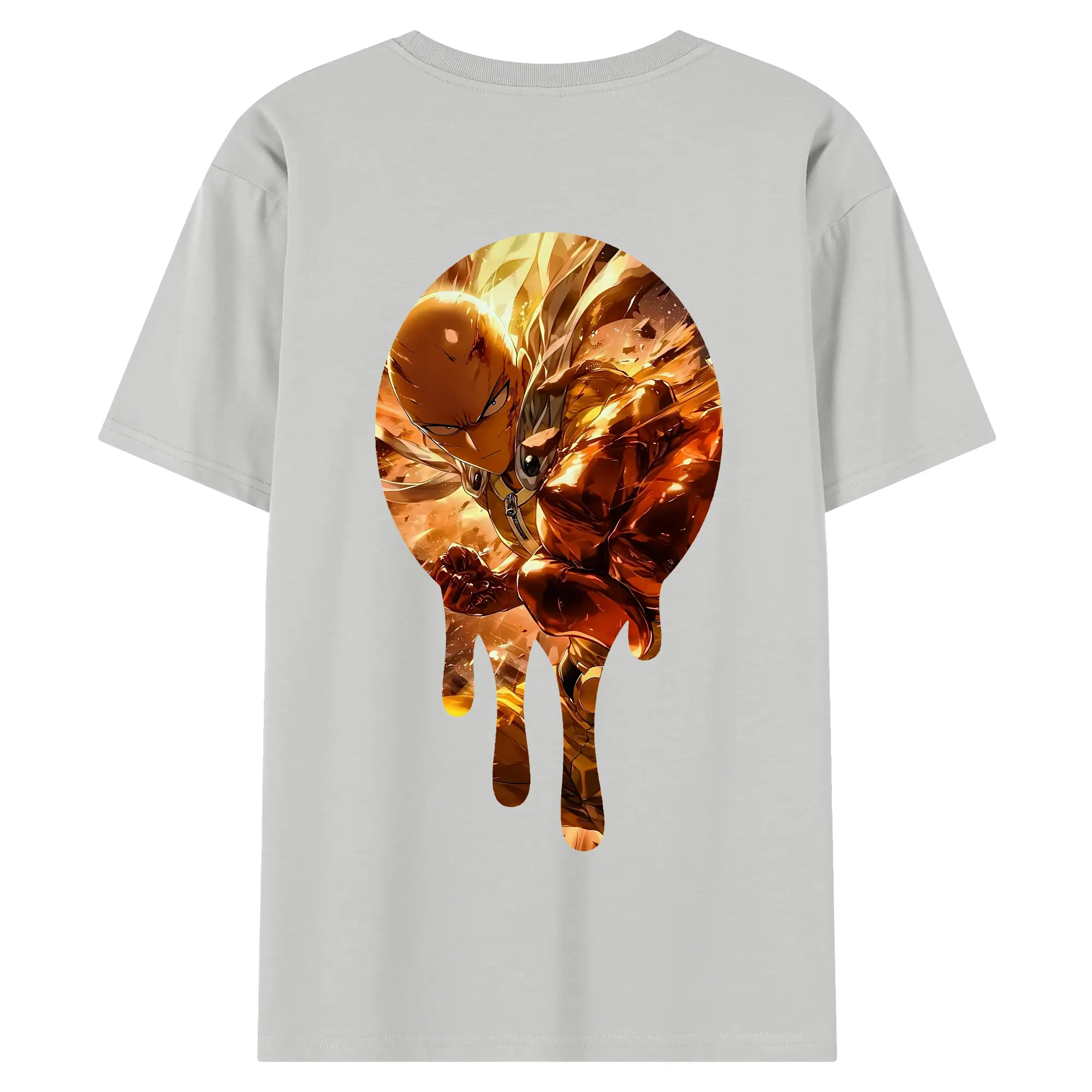 ワンパンマン グッズ サイタマ - 綿100% ヴィンテージ風 半袖Tシャツ ・ 背面プリント ・ 柔らか肌触り ・ 通気性 快適 ・ スポーツ カジュアル 外出用