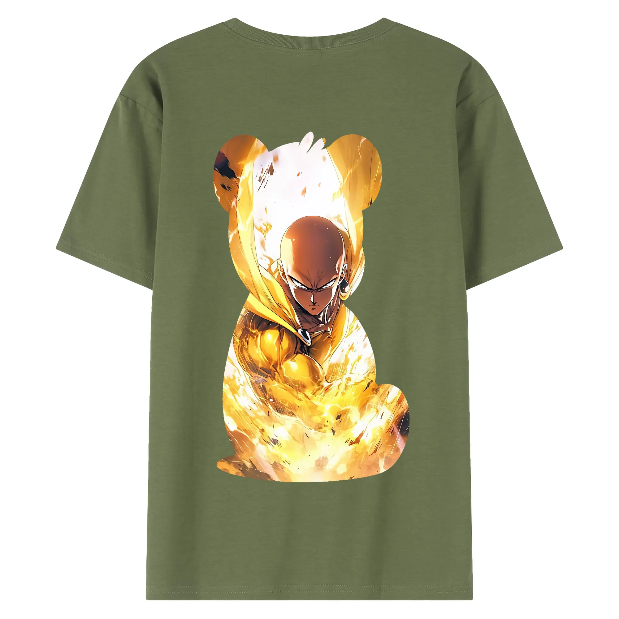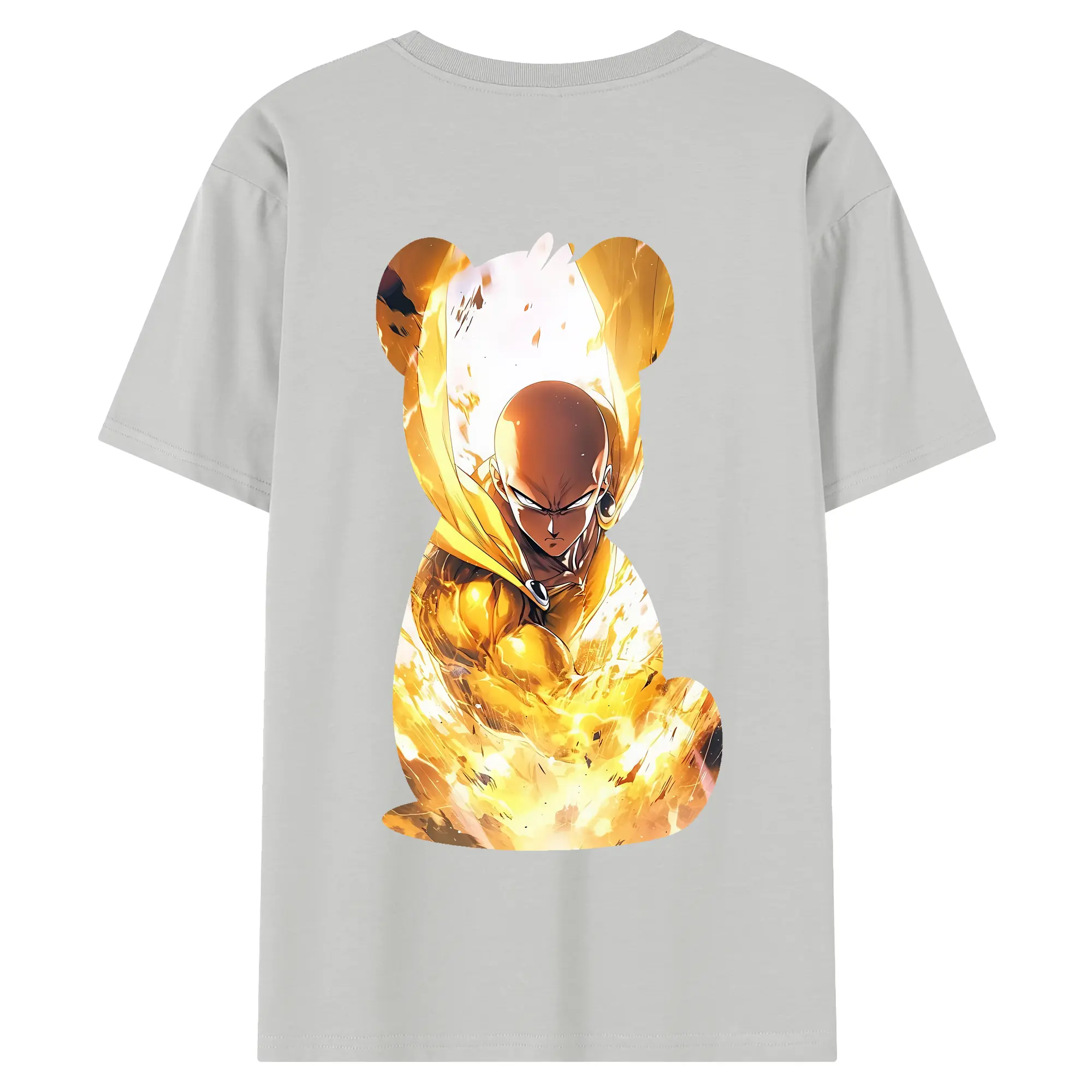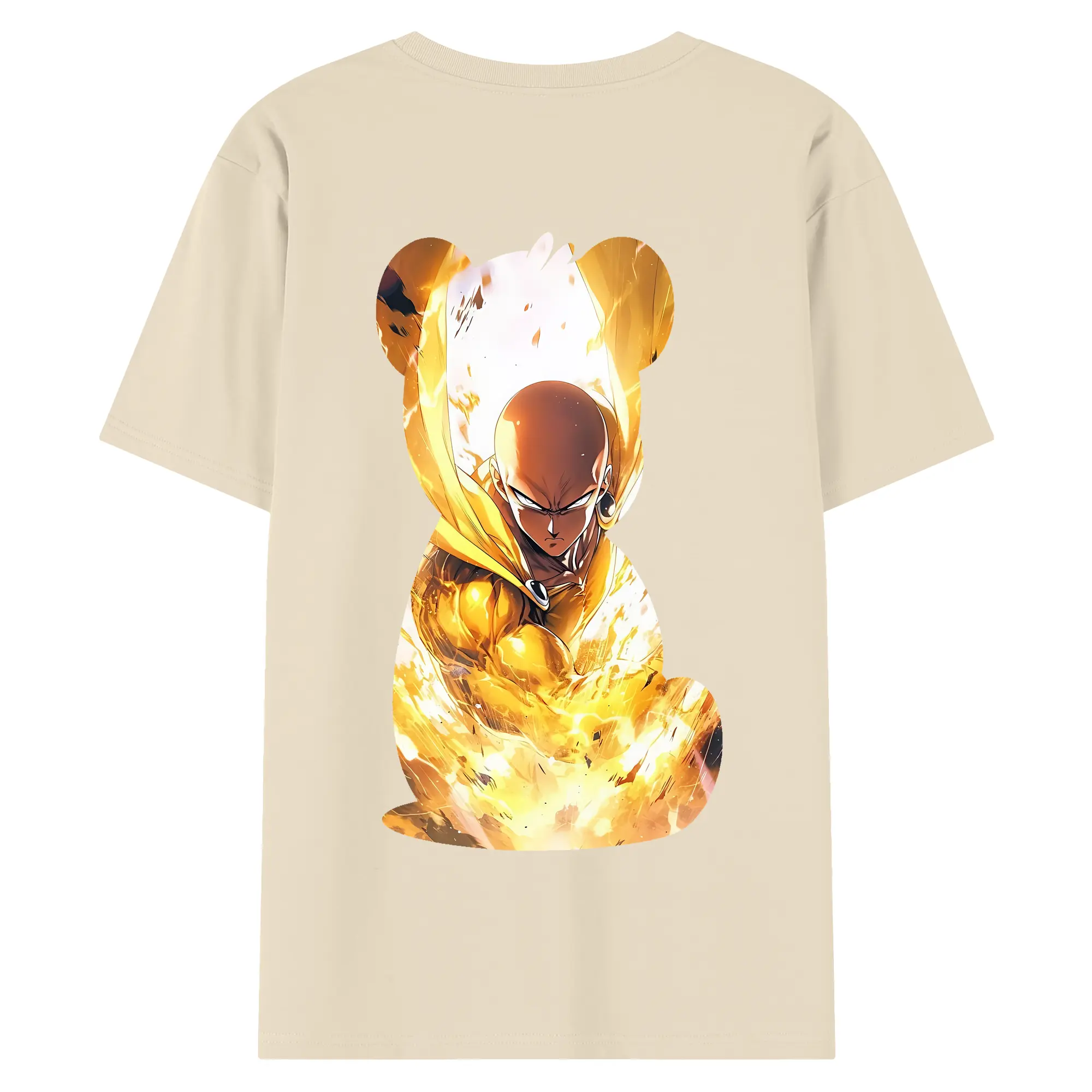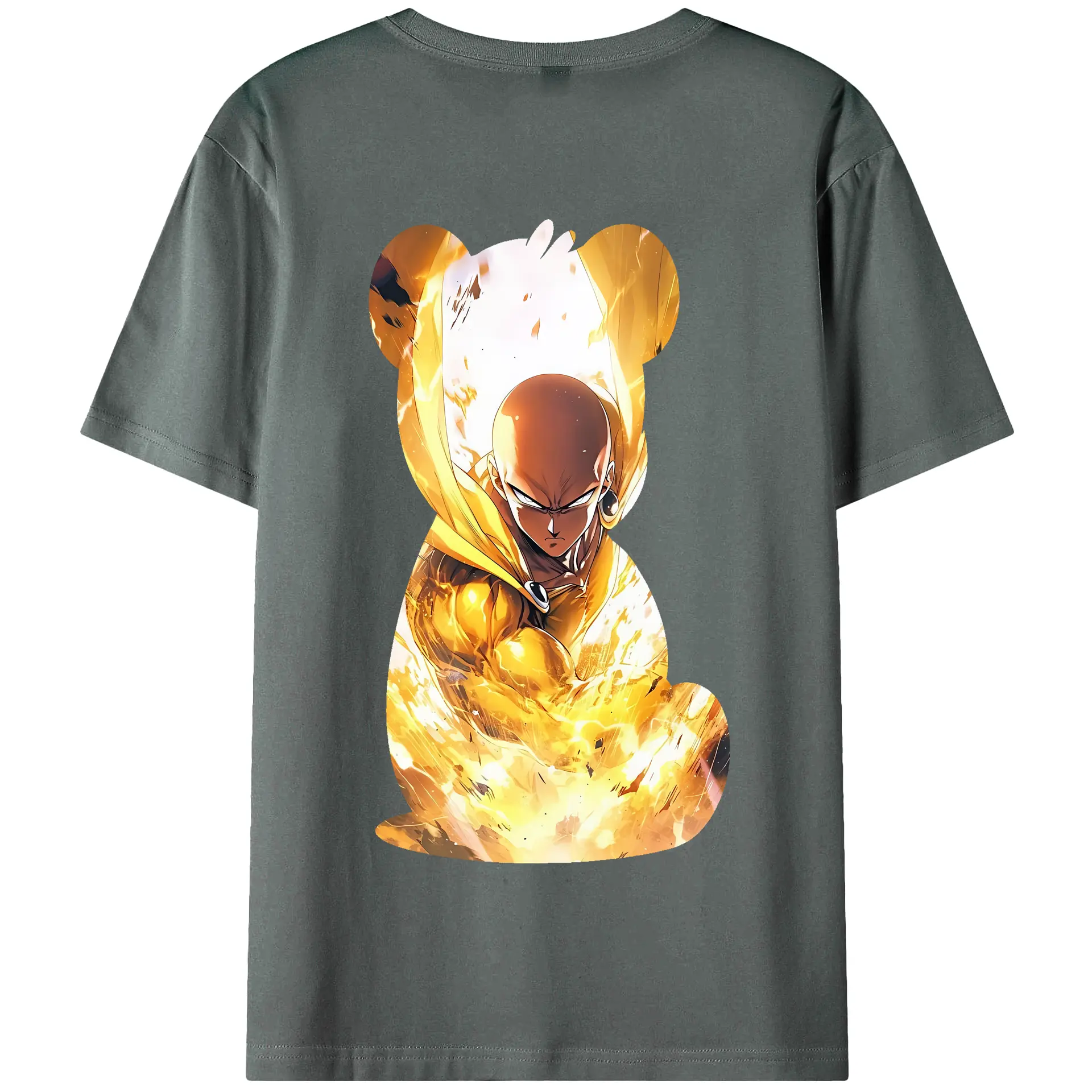 ワンパンマン グッズ サイタマ - 綿100% ヴィンテージ風 半袖Tシャツ ・ 背面プリント ・ 柔らか肌触り ・ 通気性 快適 ・ スポーツ カジュアル 外出用