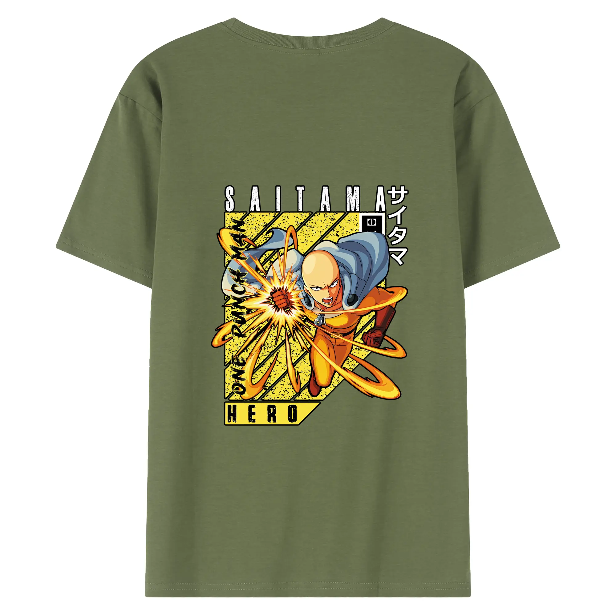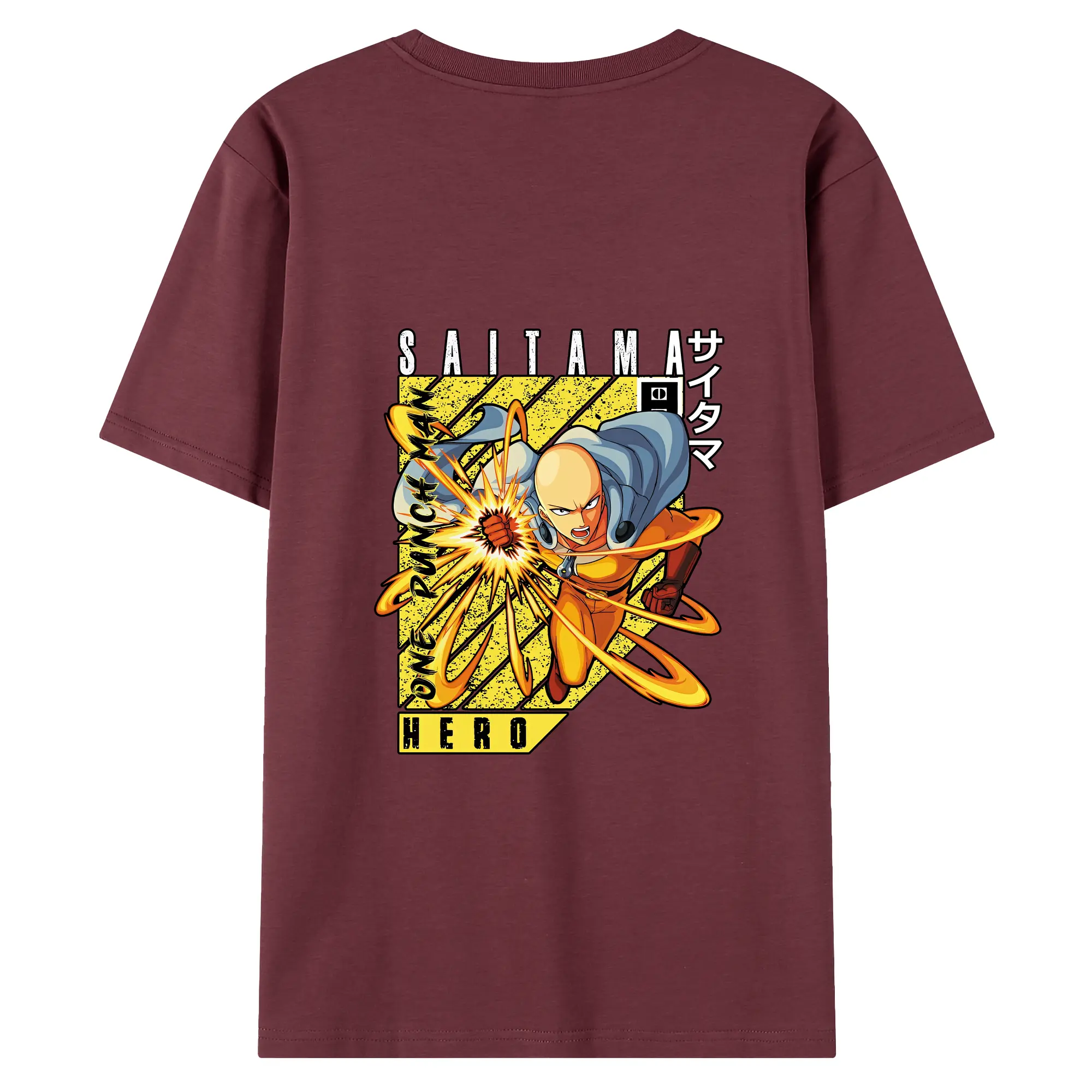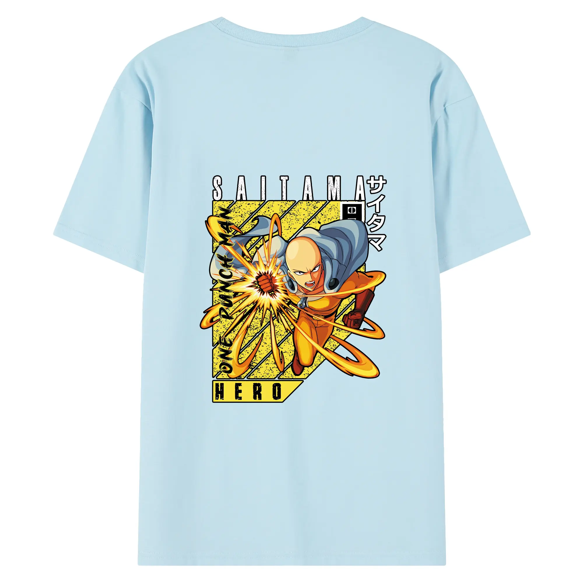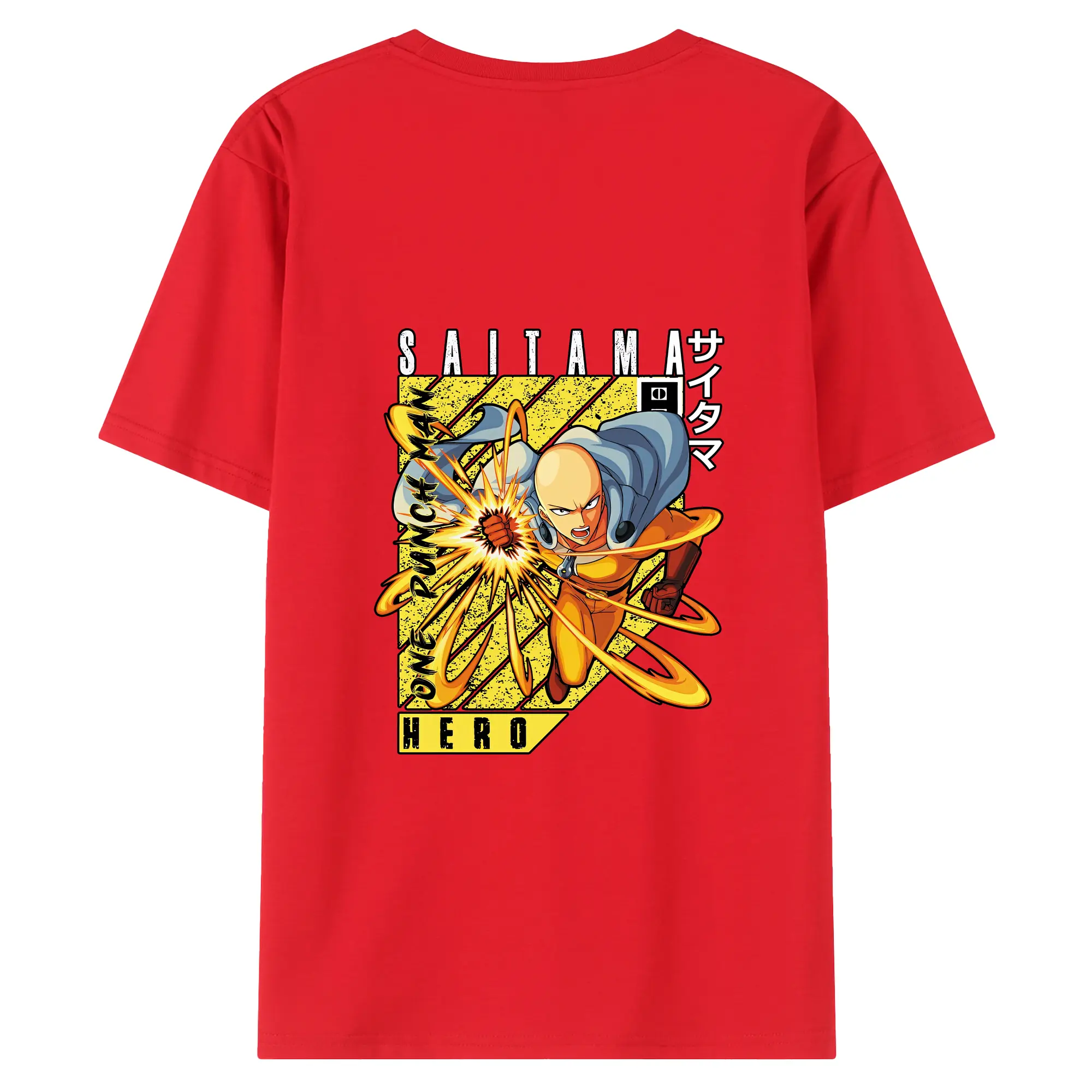 ワンパンマン グッズ サイタマ - 綿100% 半袖Tシャツ ・ フロントプリント ・ 快適 通気性 ・ 日常使い 散歩 スポーツ用