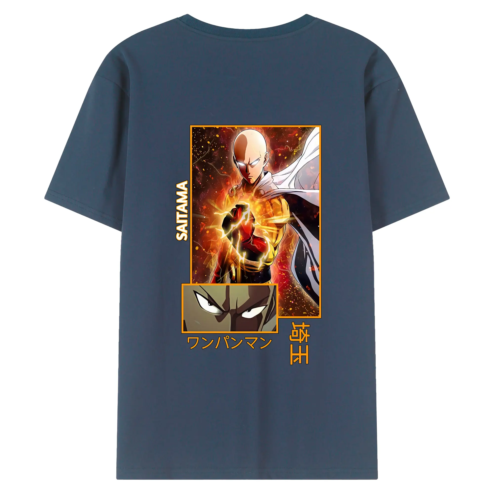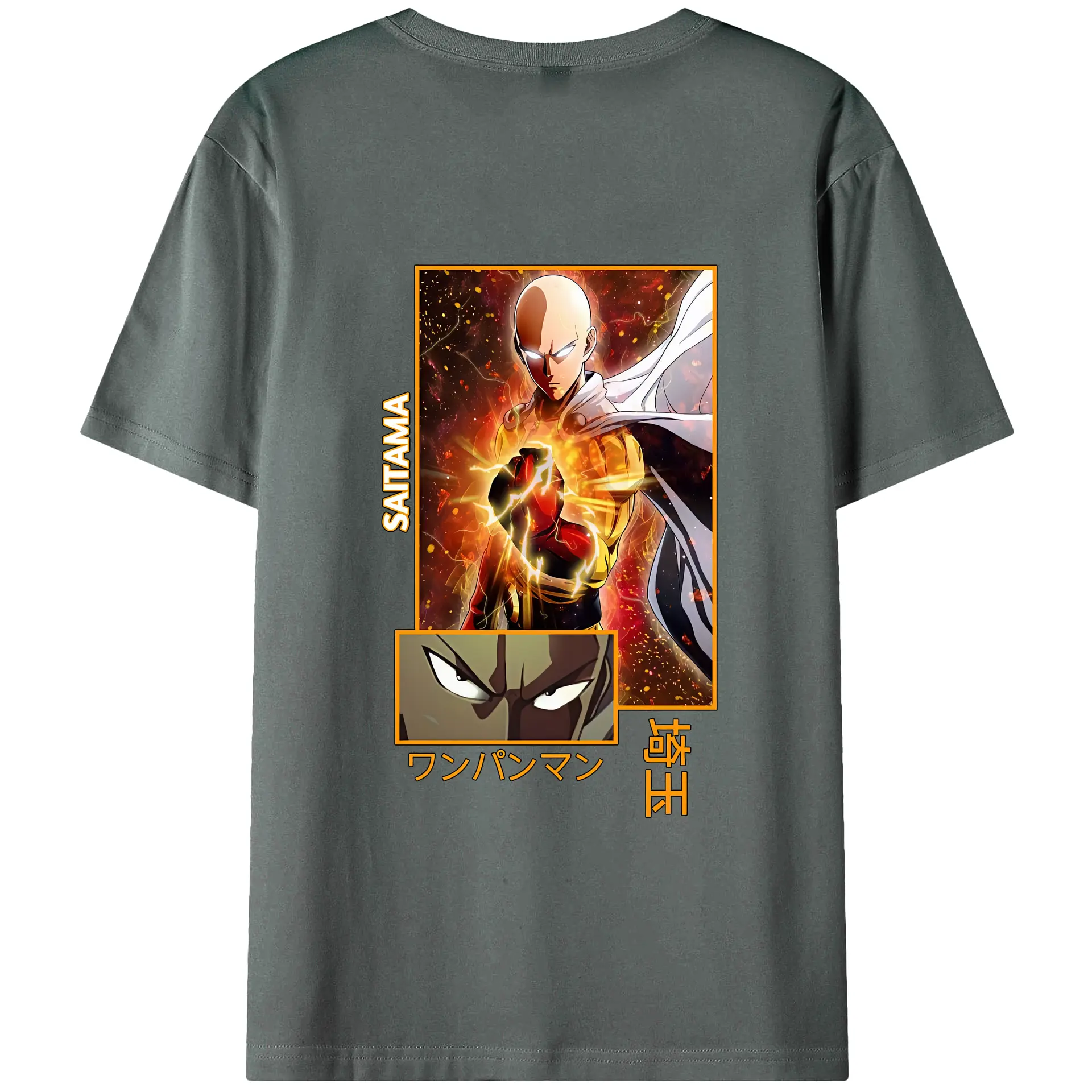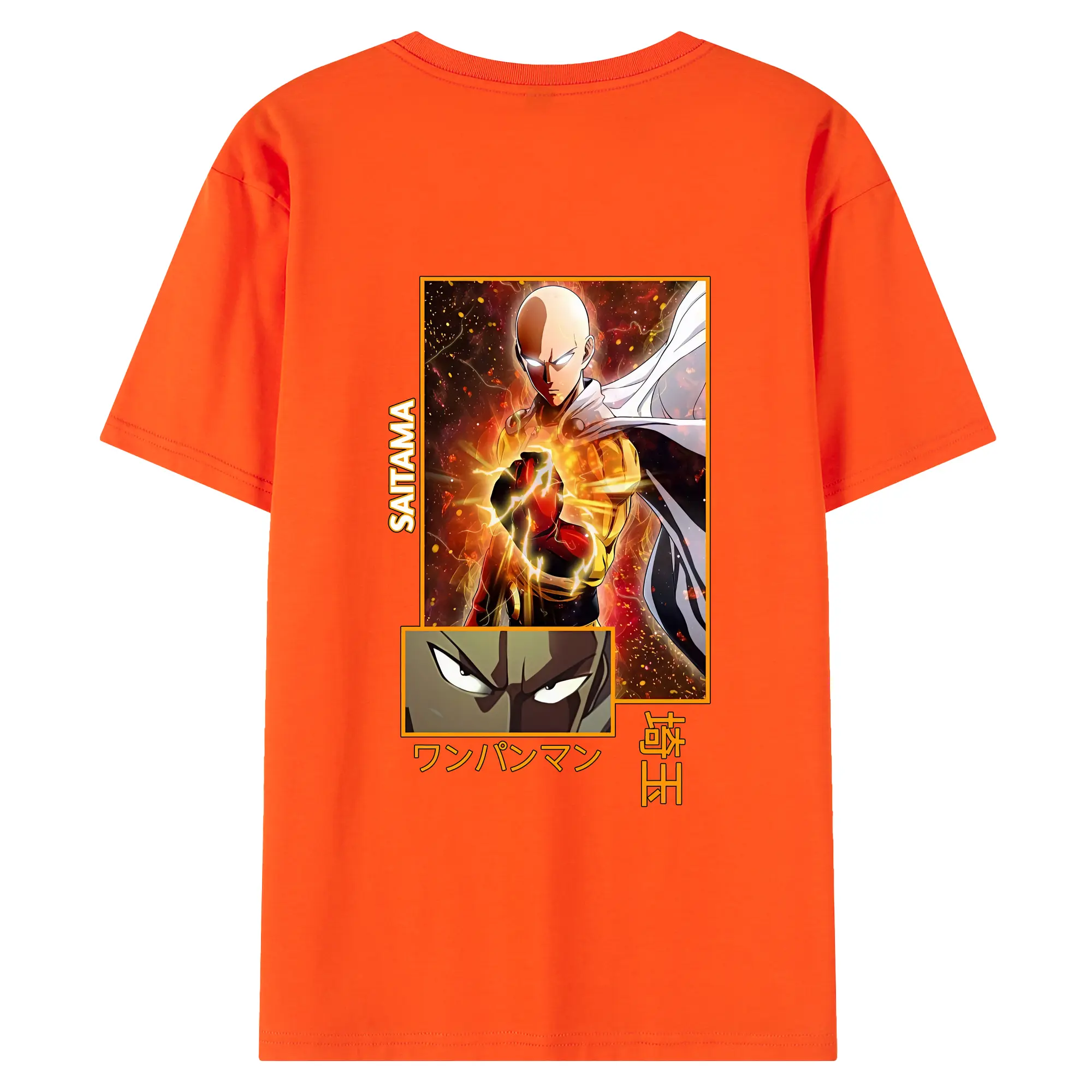 ワンパンマン グッズ サイタマ - 綿100% ヴィンテージ風 半袖Tシャツ ・ 背面プリント ・ 柔らか肌触り ・ 通気性 快適 ・ スポーツ カジュアル 外出用