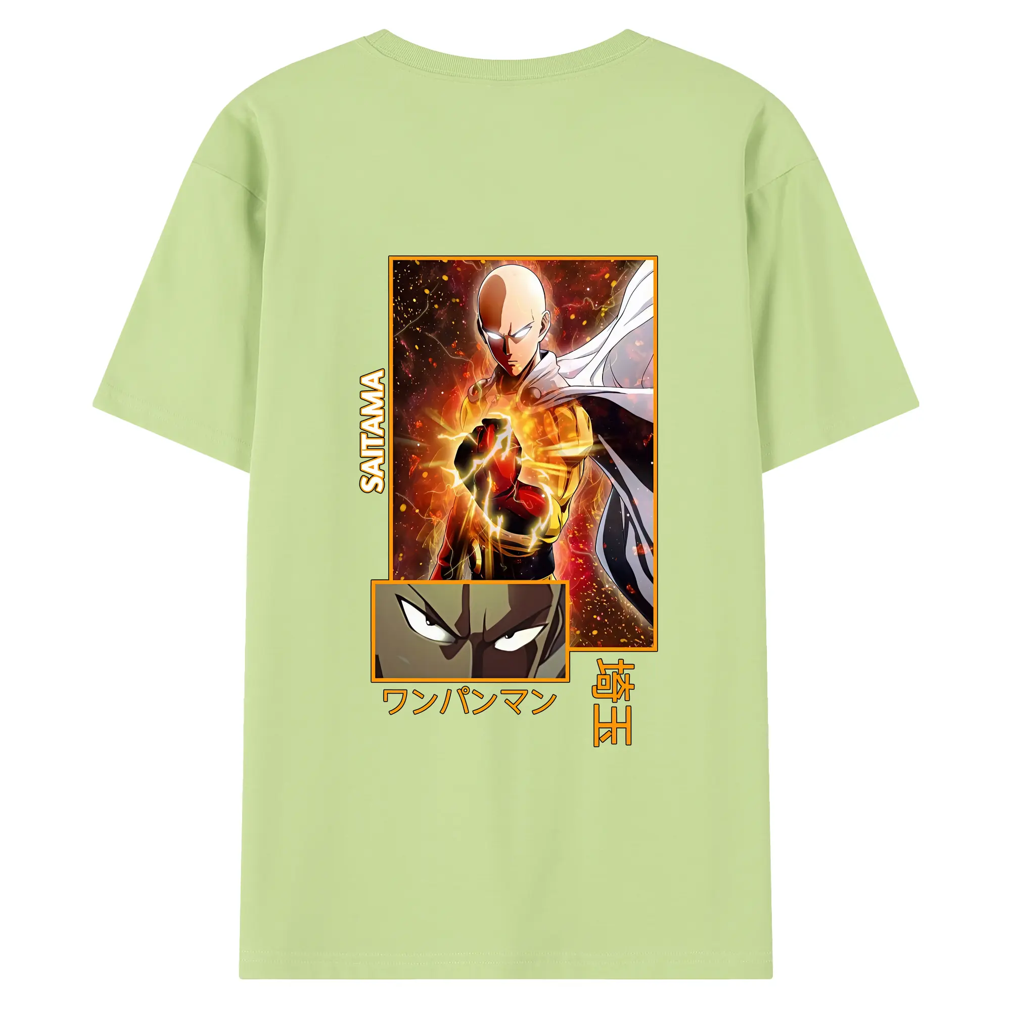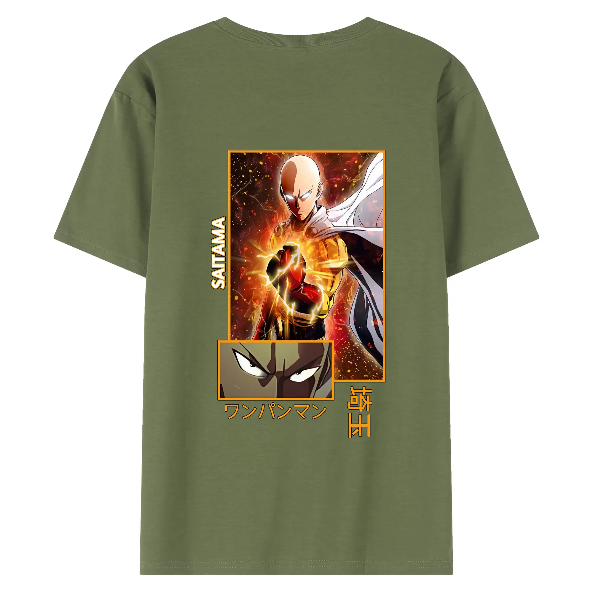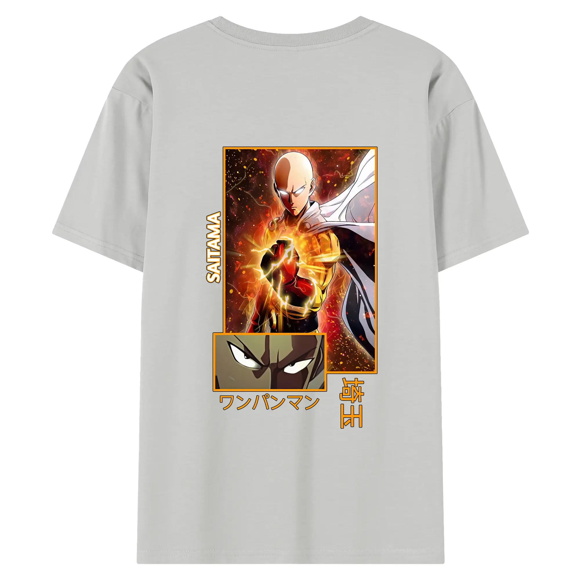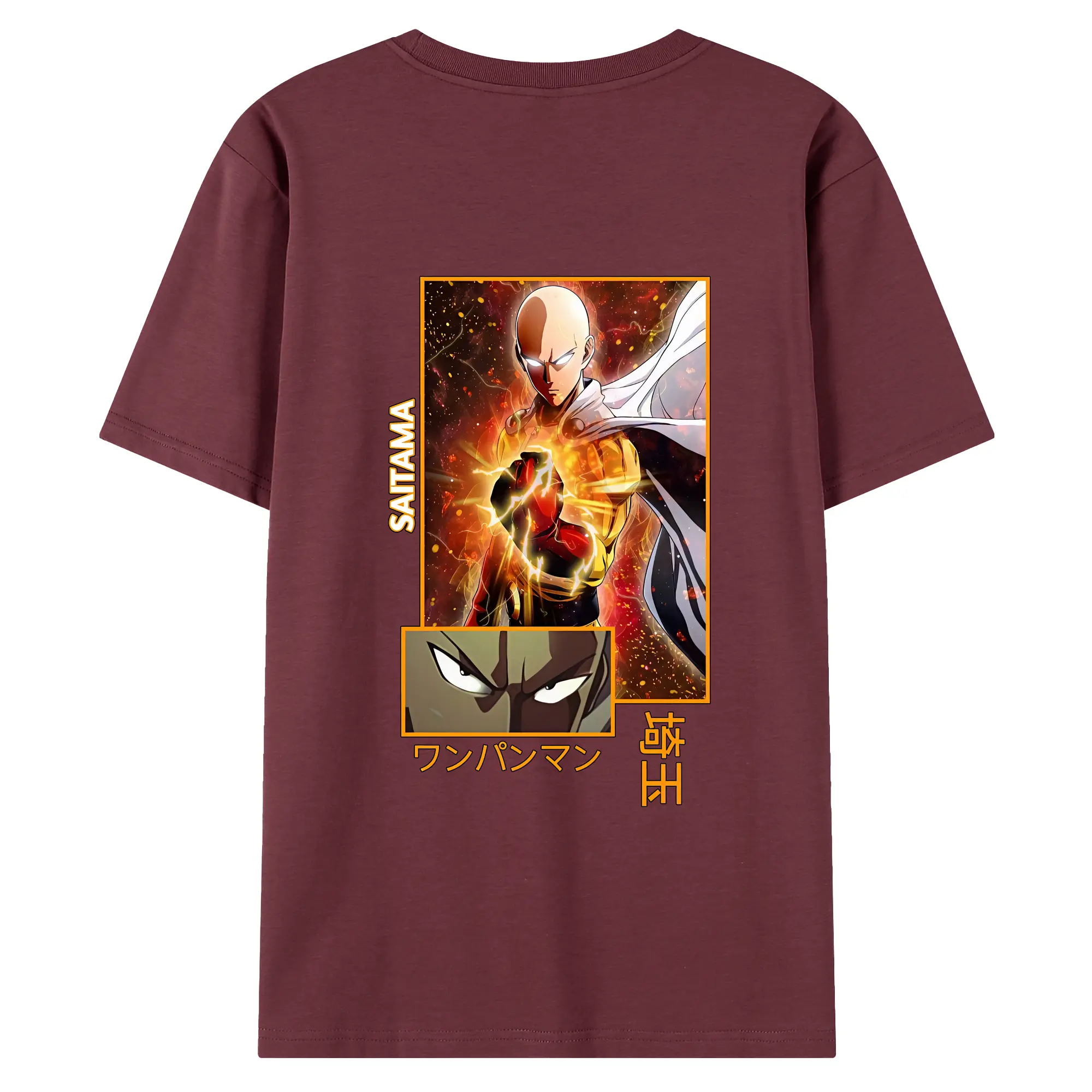 ワンパンマン グッズ サイタマ - 綿100% ヴィンテージ風 半袖Tシャツ ・ 背面プリント ・ 柔らか肌触り ・ 通気性 快適 ・ スポーツ カジュアル 外出用