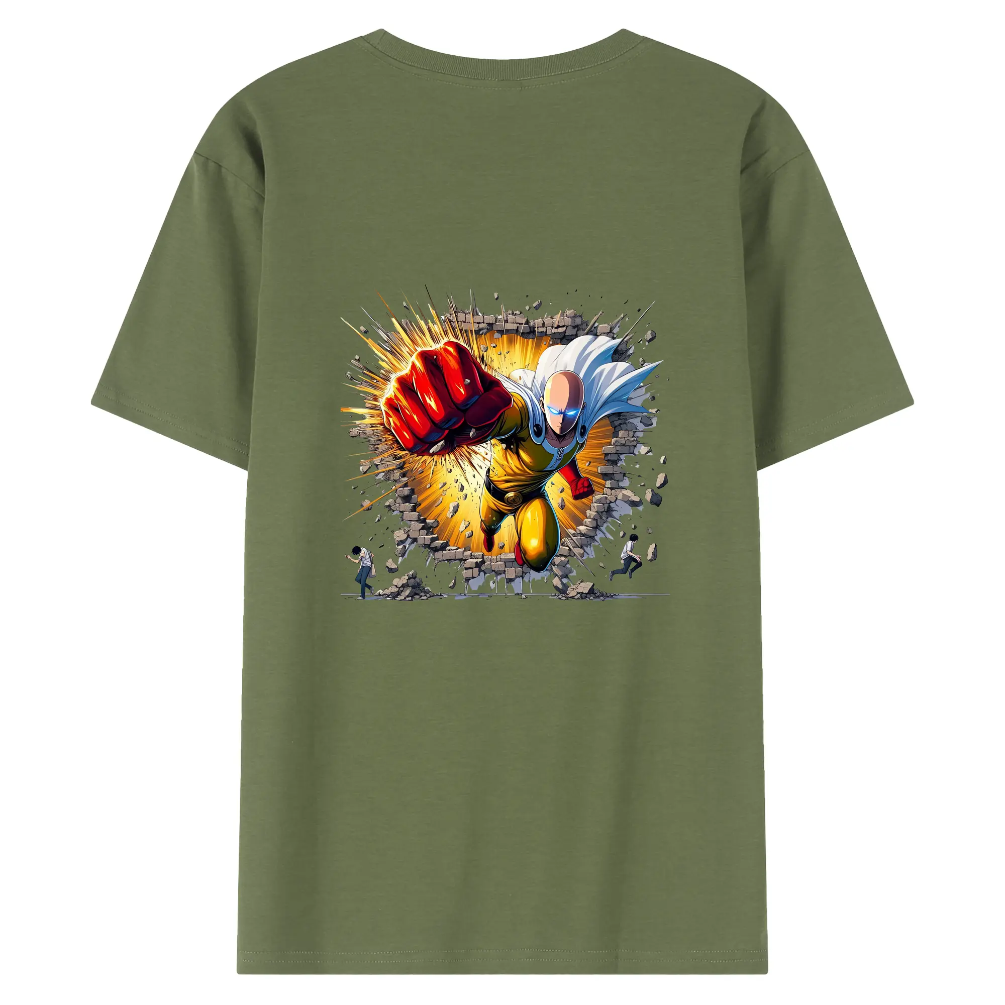 ワンパンマン グッズ サイタマ - 綿100% 半袖Tシャツ ・ フロントプリント ・ 快適 通気性 ・ 日常使い 散歩 スポーツ用