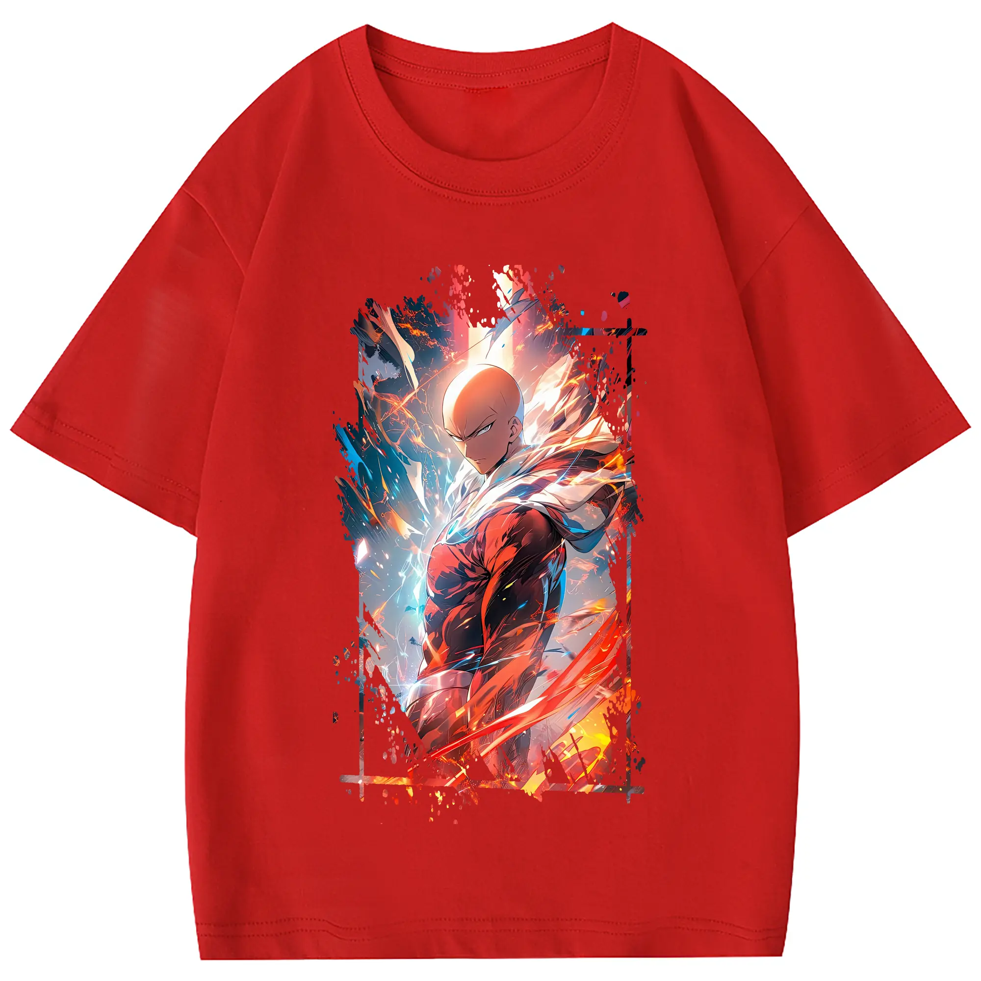 ワンパンマン グッズ サイタマ - 綿100% 半袖Tシャツ ・ フロントプリント ・ 快適 通気性 ・ 日常使い 散歩 スポーツ用
