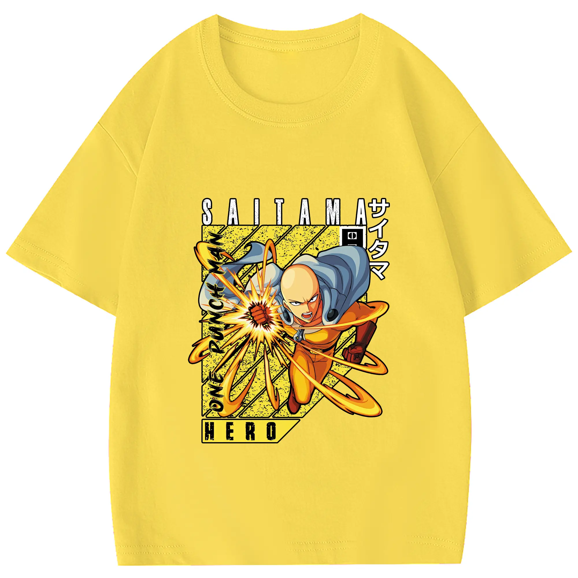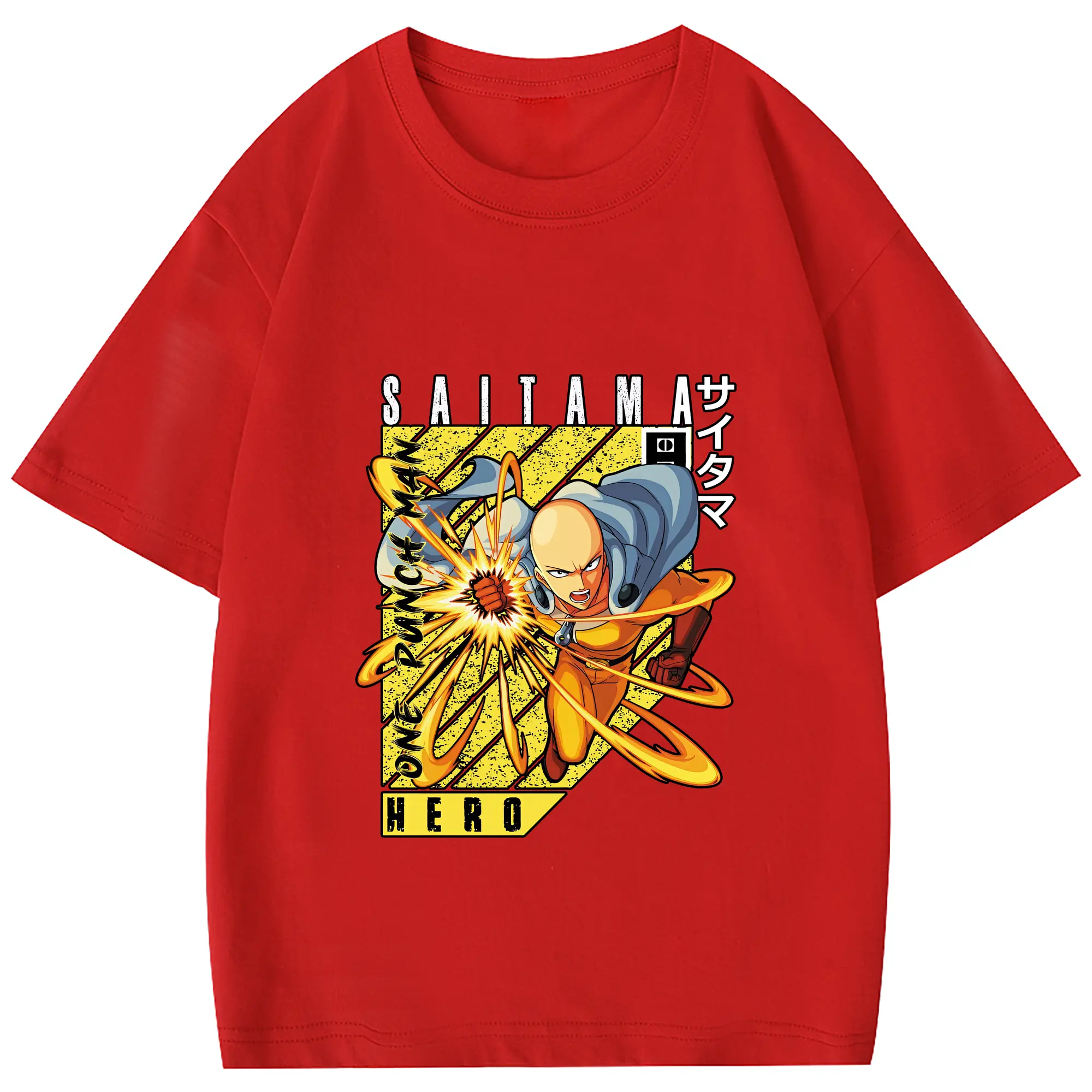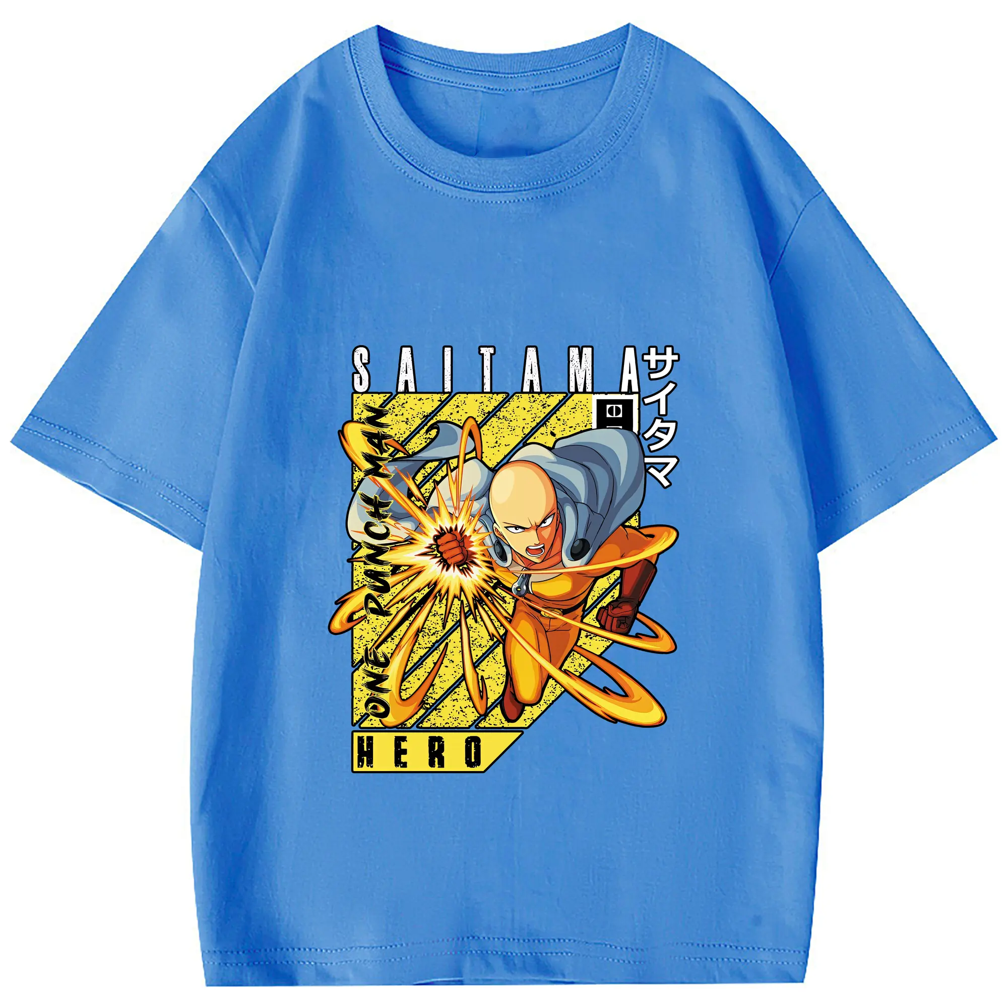 ワンパンマン グッズ サイタマ - 綿100% 半袖Tシャツ ・ フロントプリント ・ 快適 通気性 ・ 日常使い 散歩 スポーツ用