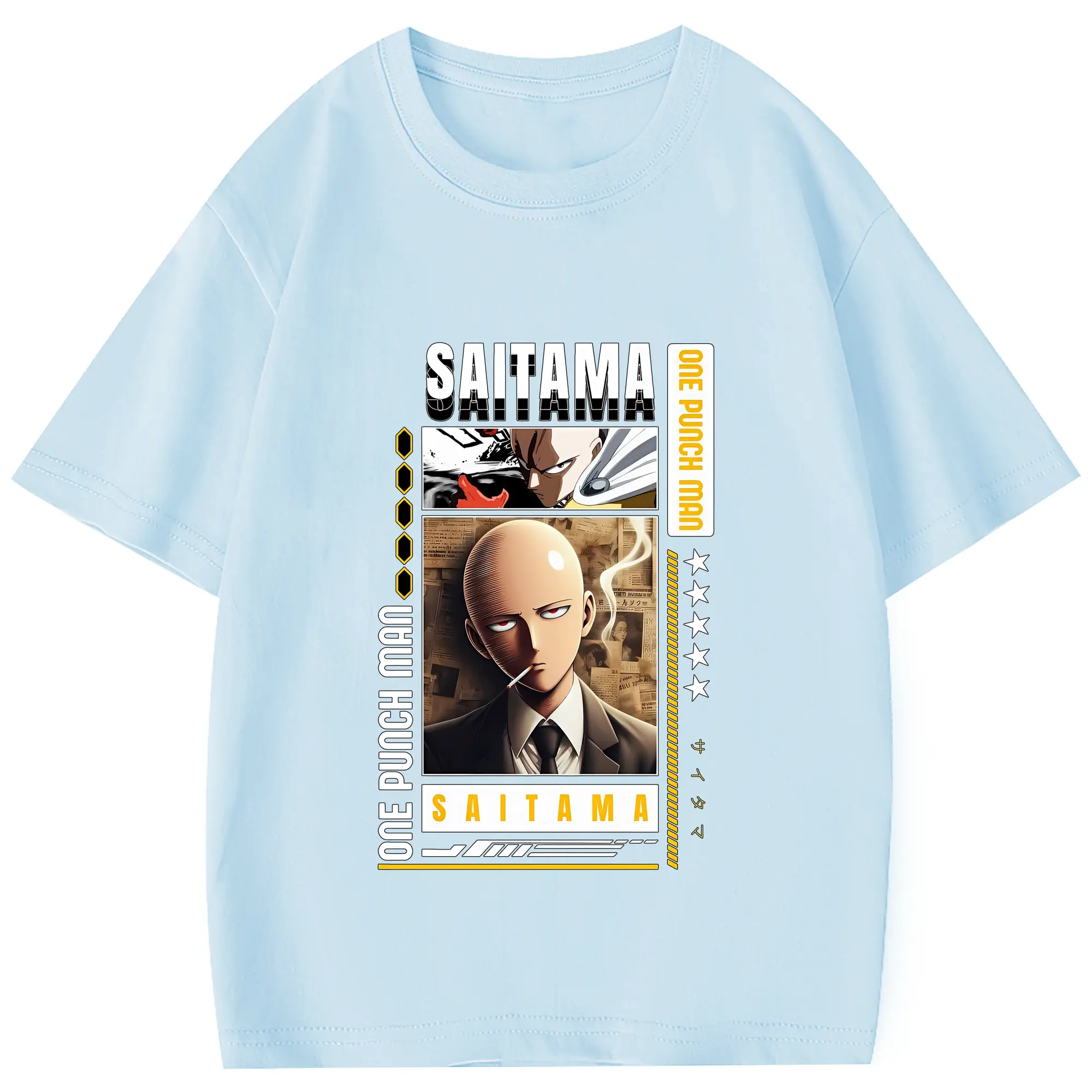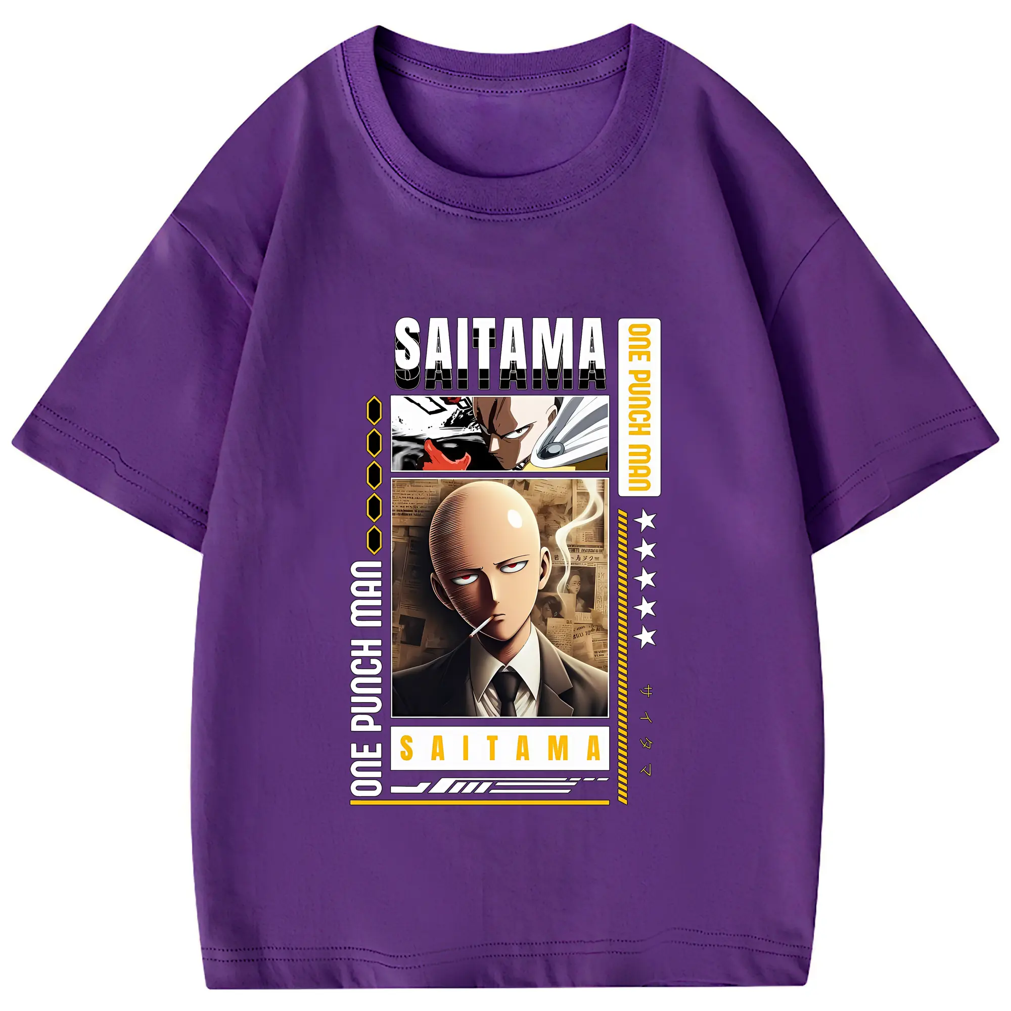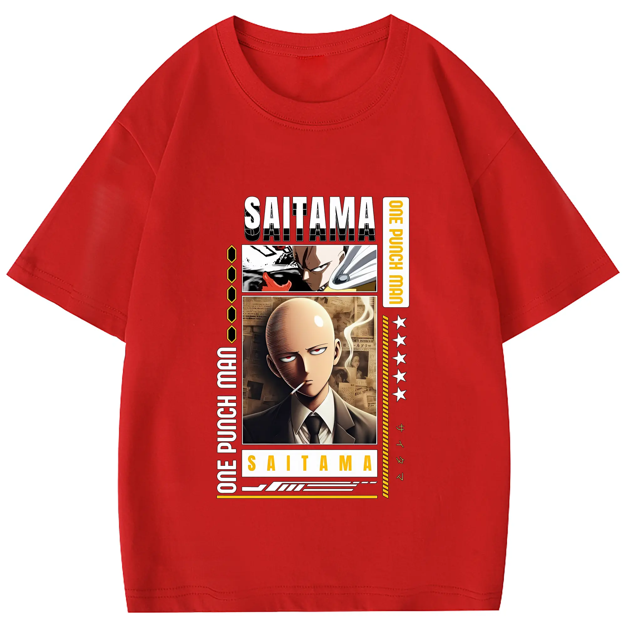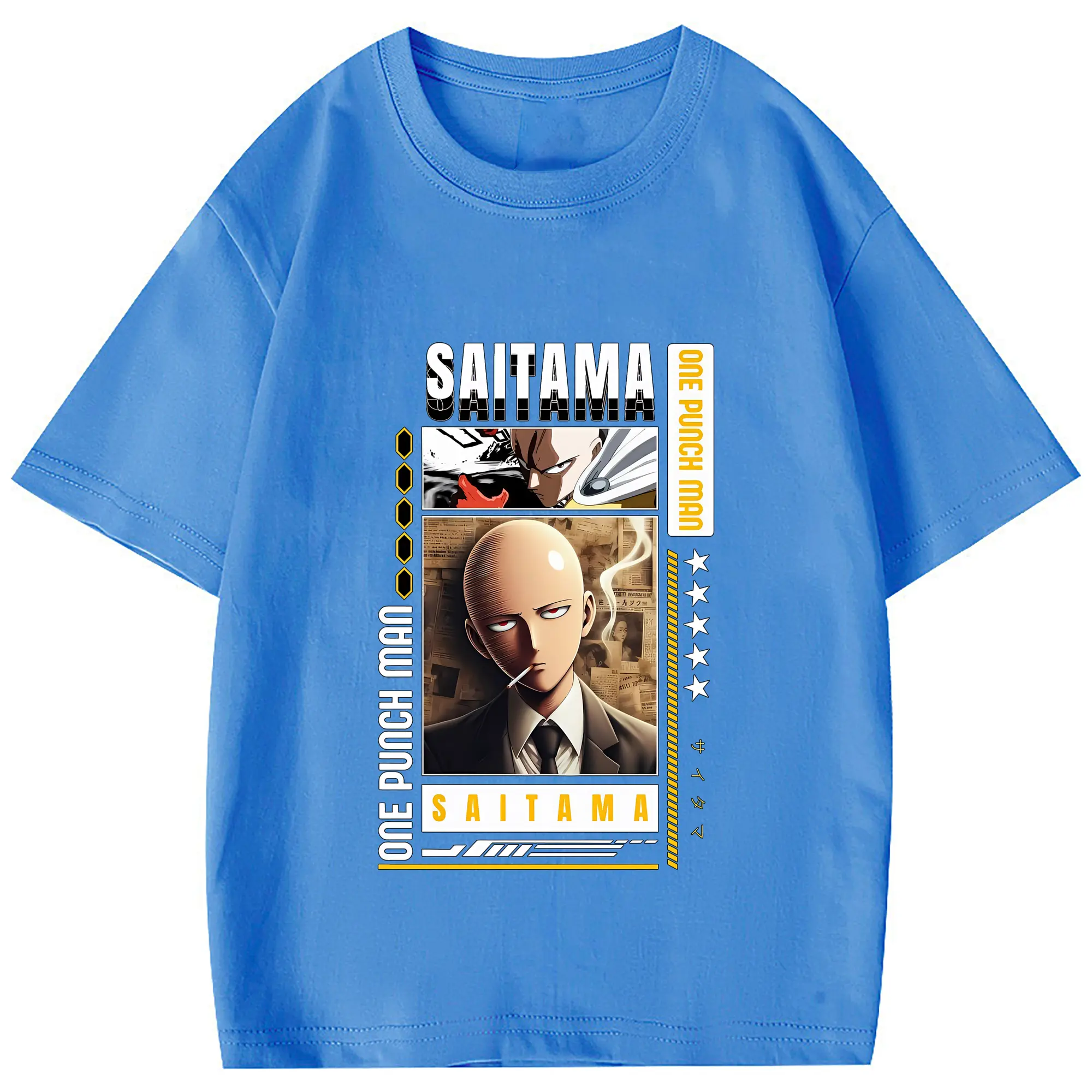 ワンパンマン グッズ サイタマ - 綿100% 半袖Tシャツ ・ フロントプリント ・ 快適 通気性 ・ 日常使い 散歩 スポーツ用