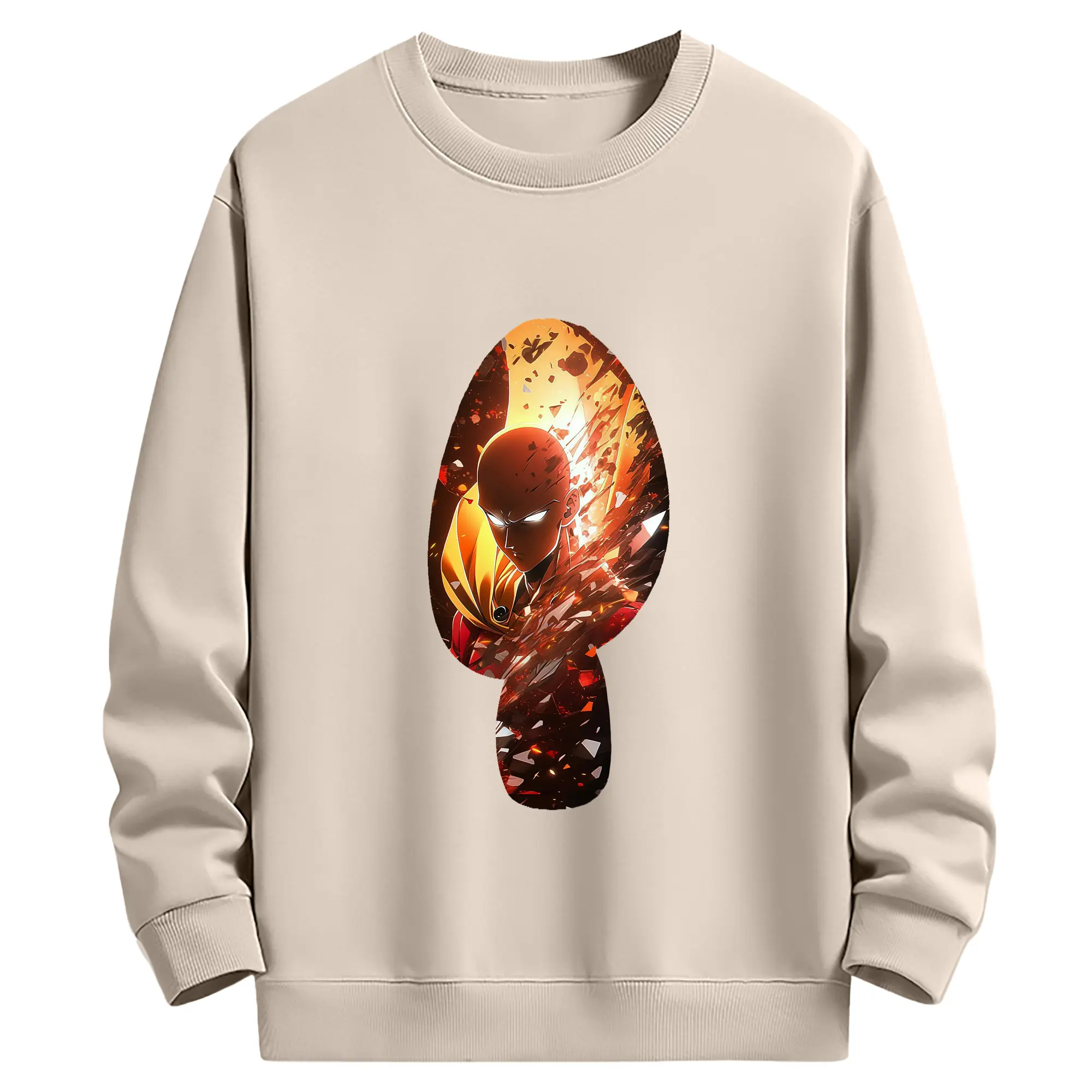 ワンパンマン グッズ サイタマ - 薄手 クルーネック スウェット 裏毛260g · ポリエステル 春秋向け カジュアル 男女兼用 · トレーナー デイリー スポーツ 散歩に最適