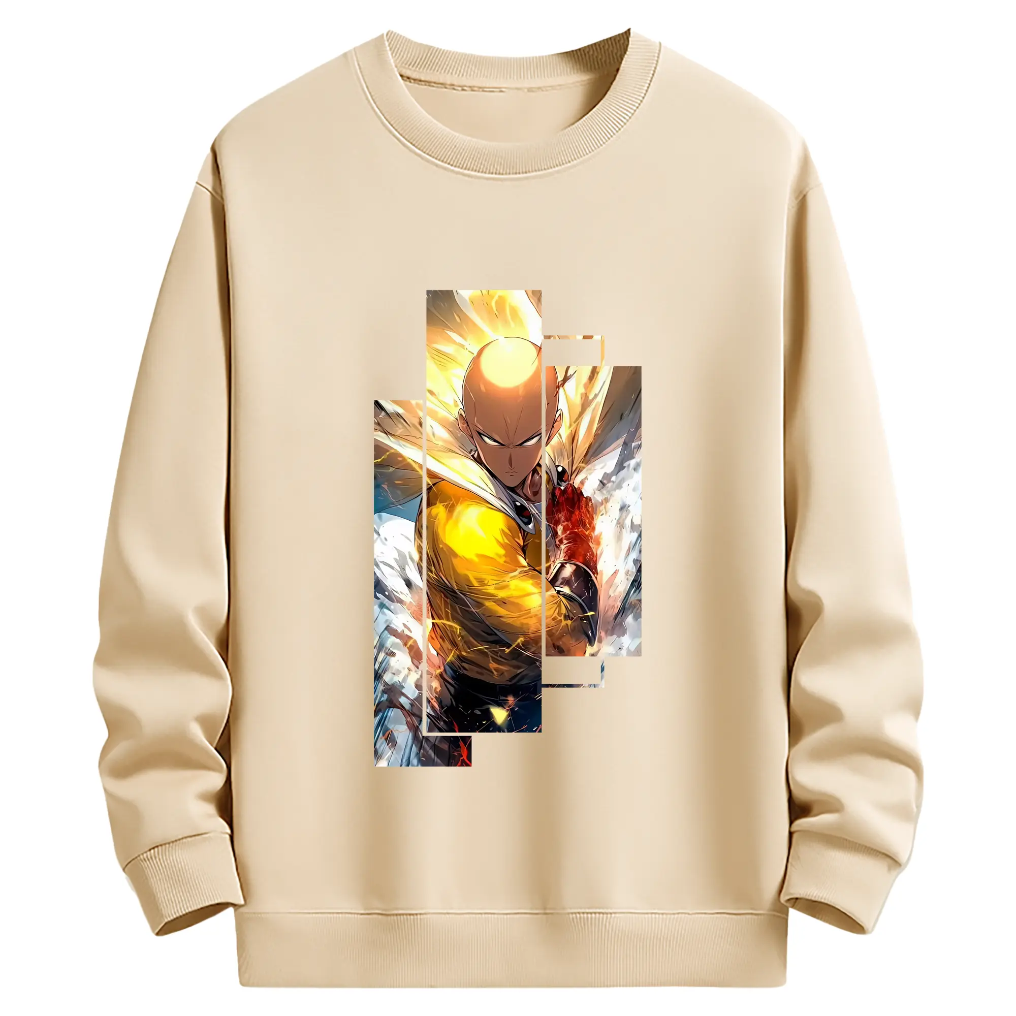 ワンパンマン グッズ サイタマ - 薄手 クルーネック スウェット 裏毛260g · ポリエステル 春秋向け カジュアル 男女兼用 · トレーナー デイリー スポーツ 散歩に最適