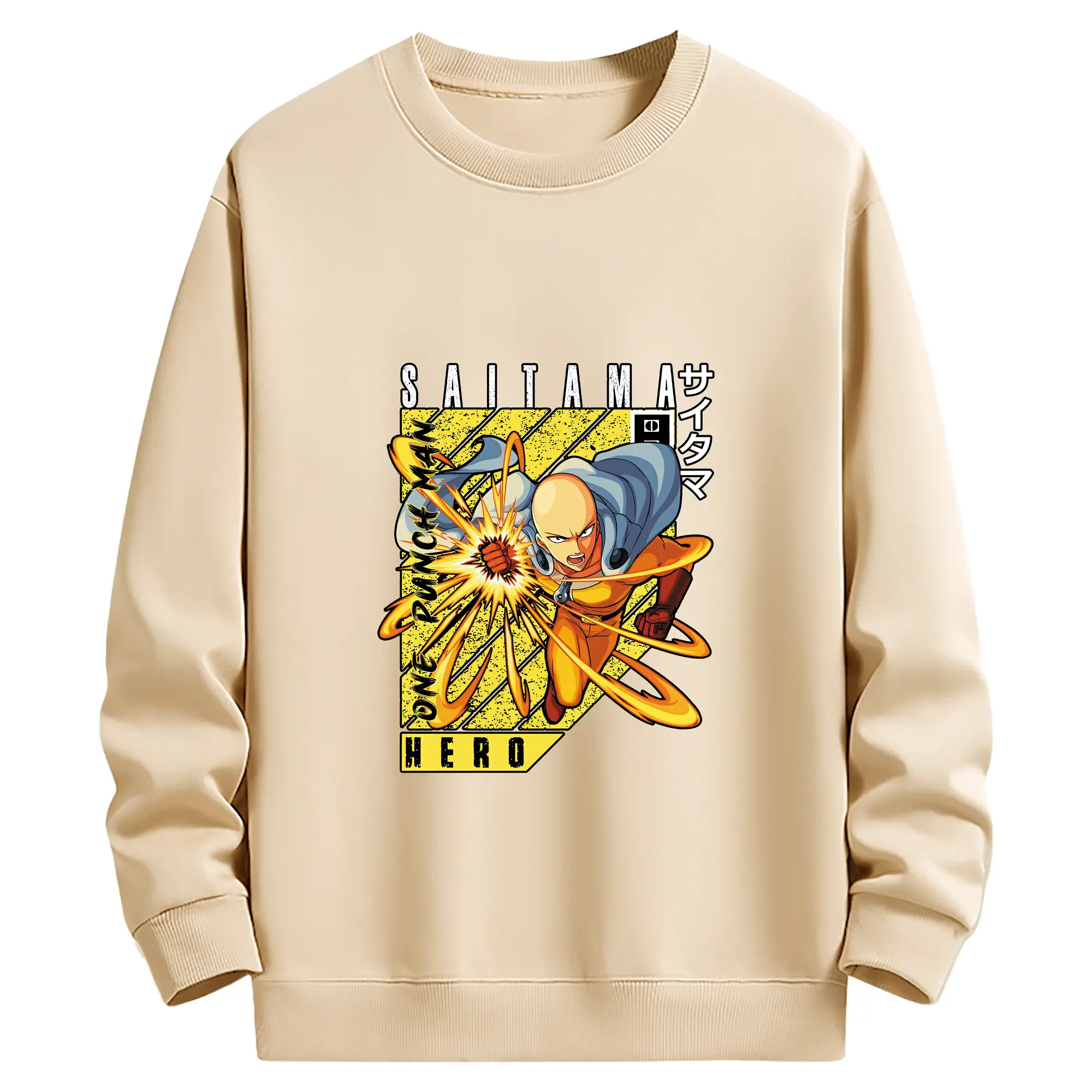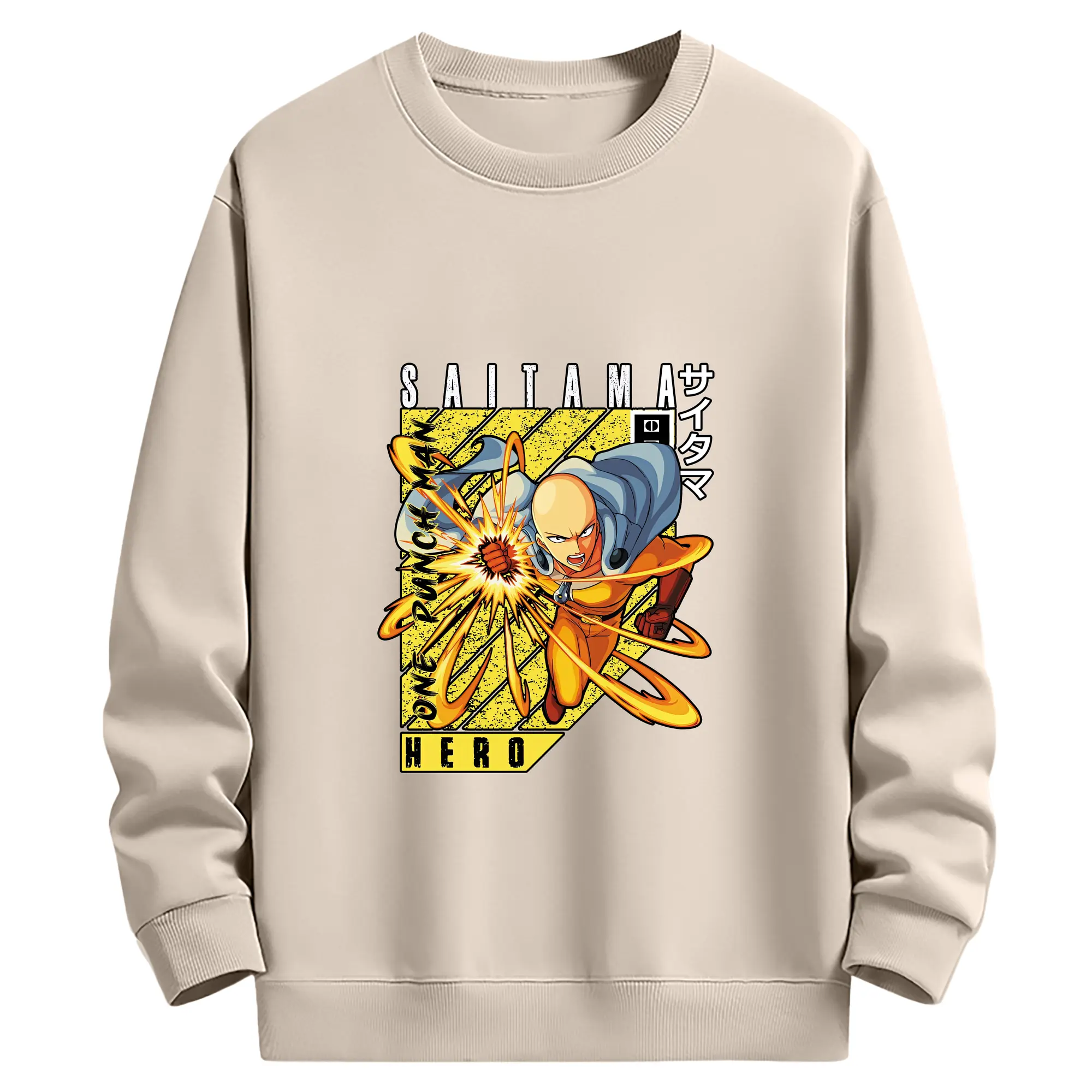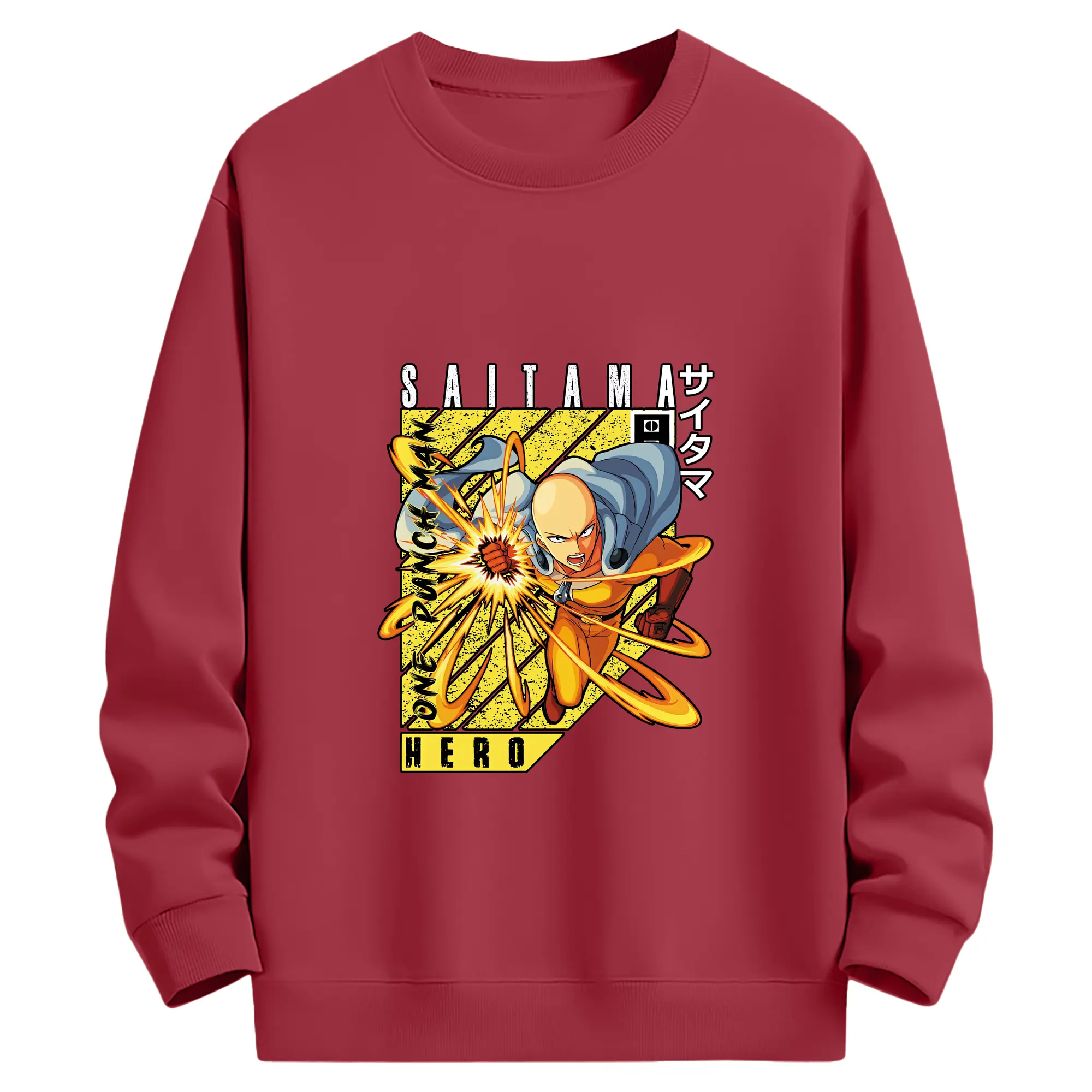 ワンパンマン グッズ サイタマ - 薄手 クルーネック スウェット 裏毛260g · ポリエステル 春秋向け カジュアル 男女兼用 · トレーナー デイリー スポーツ 散歩に最適