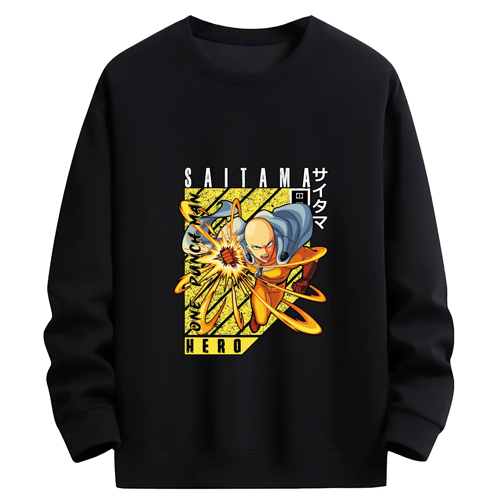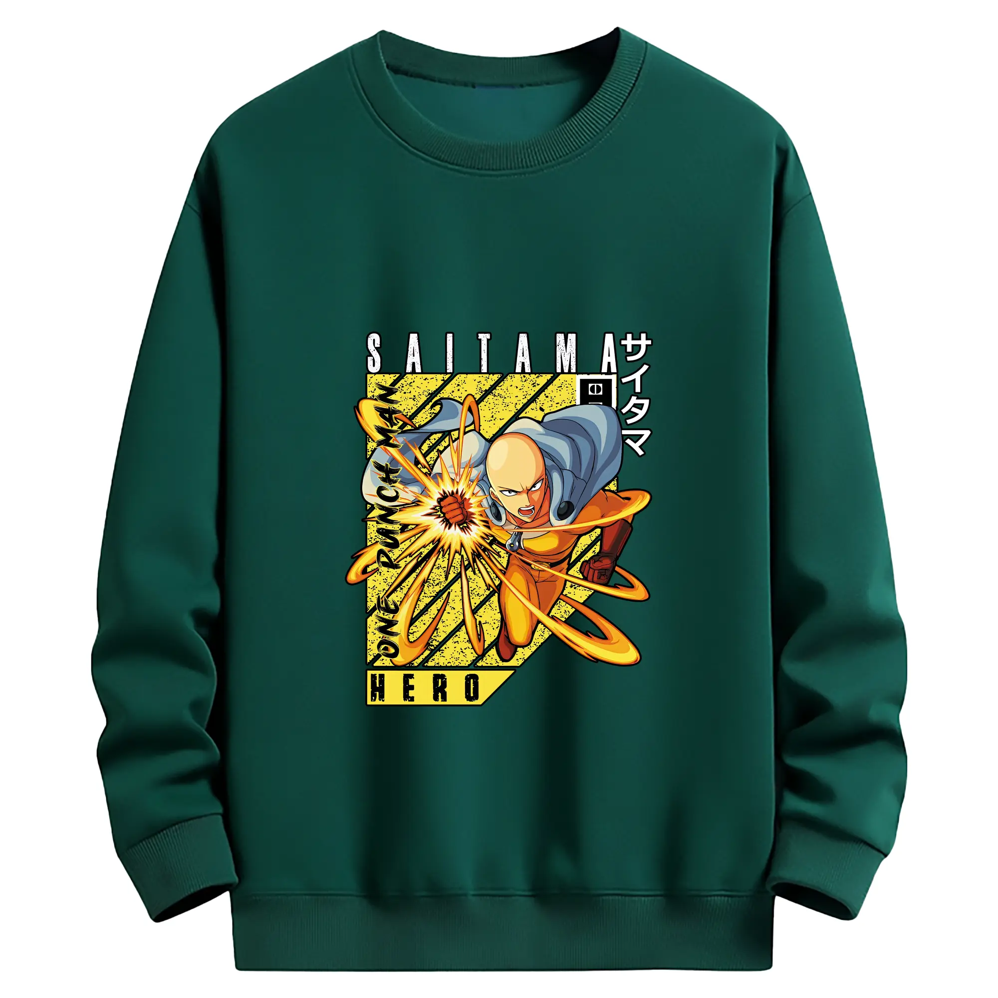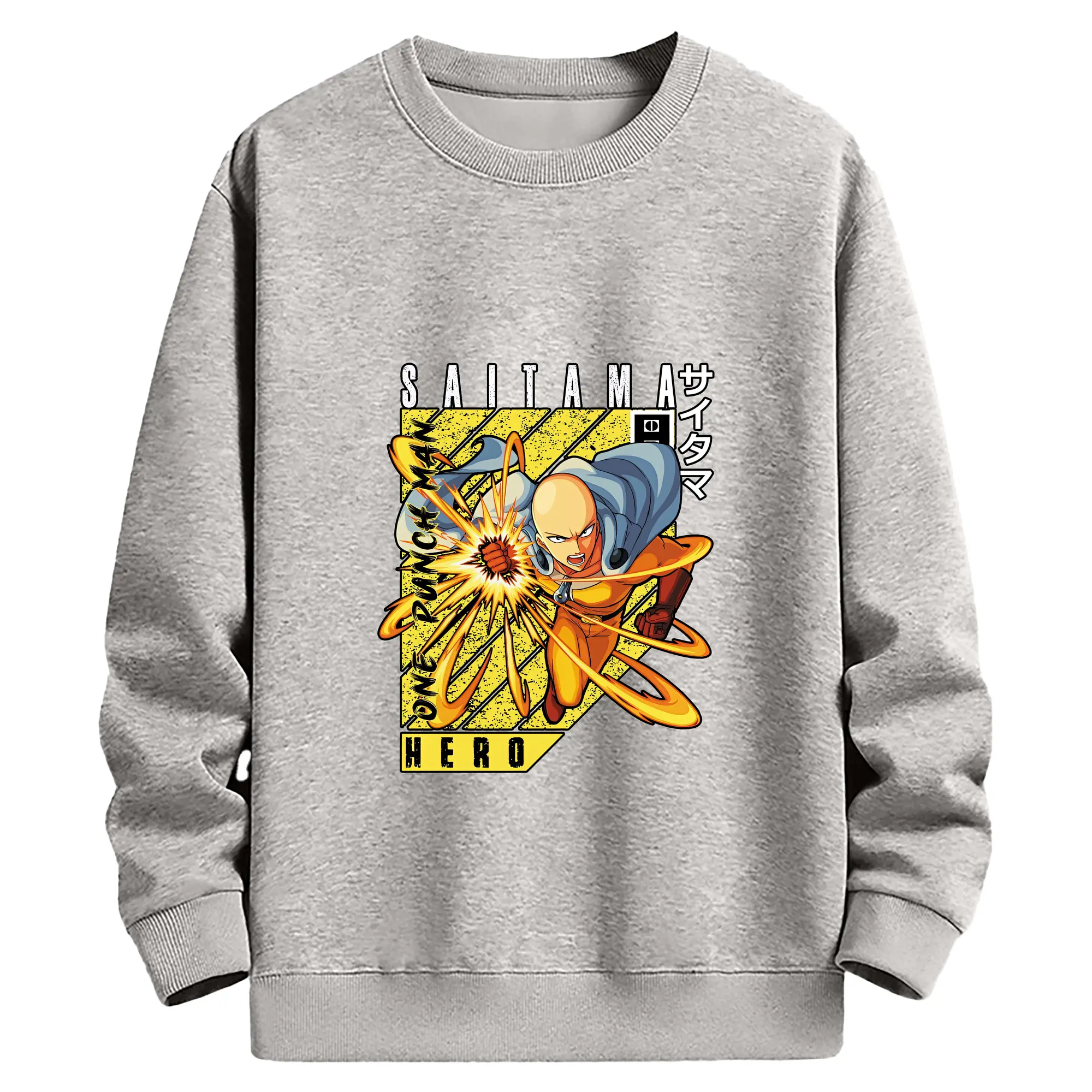 ワンパンマン グッズ サイタマ - 薄手 クルーネック スウェット 裏毛260g · ポリエステル 春秋向け カジュアル 男女兼用 · トレーナー デイリー スポーツ 散歩に最適