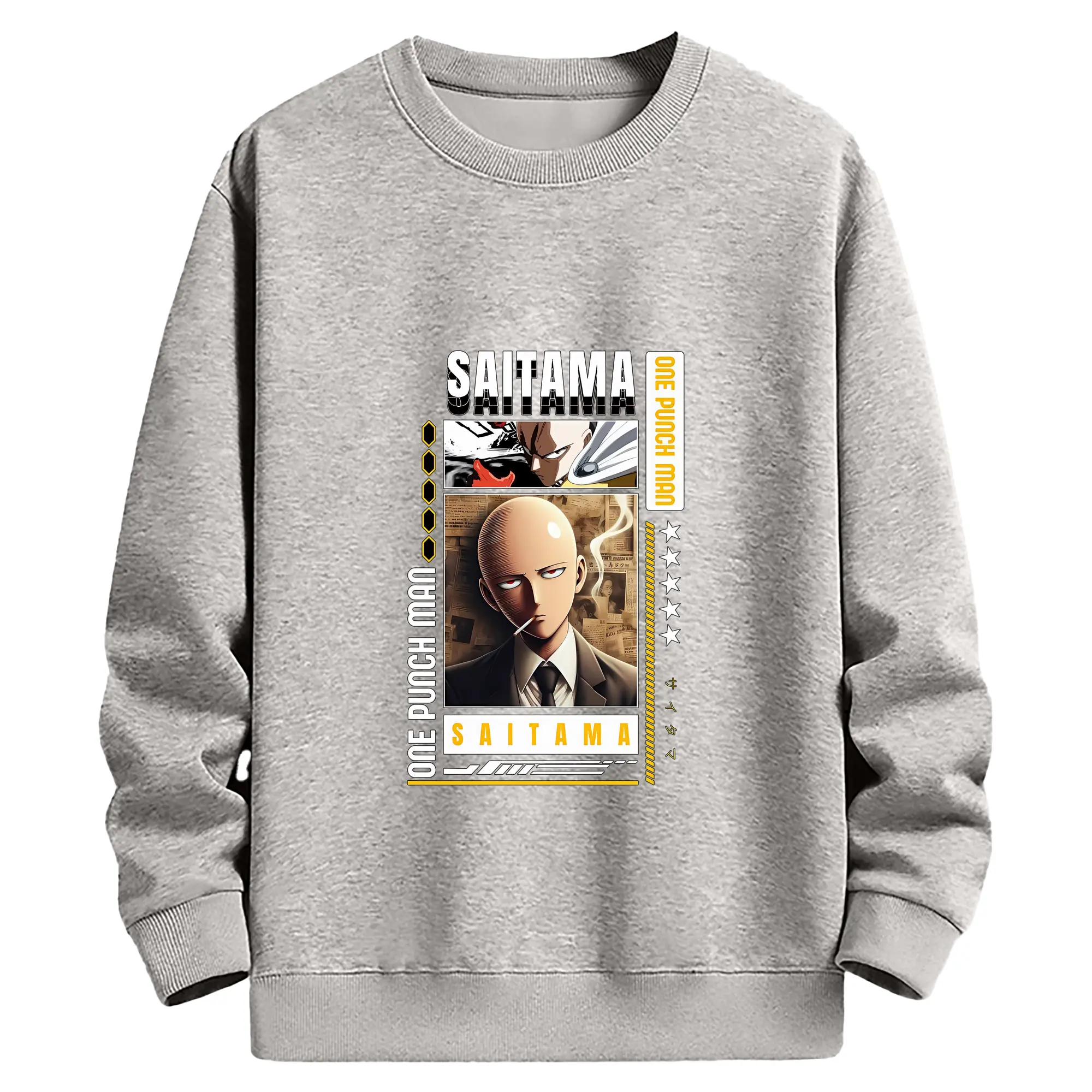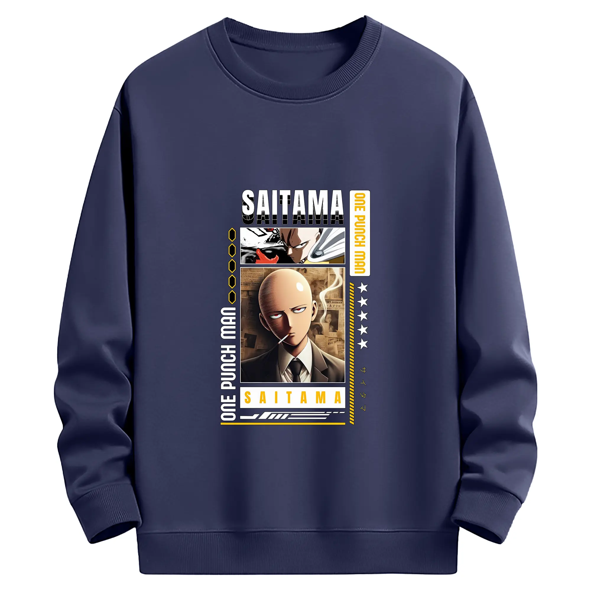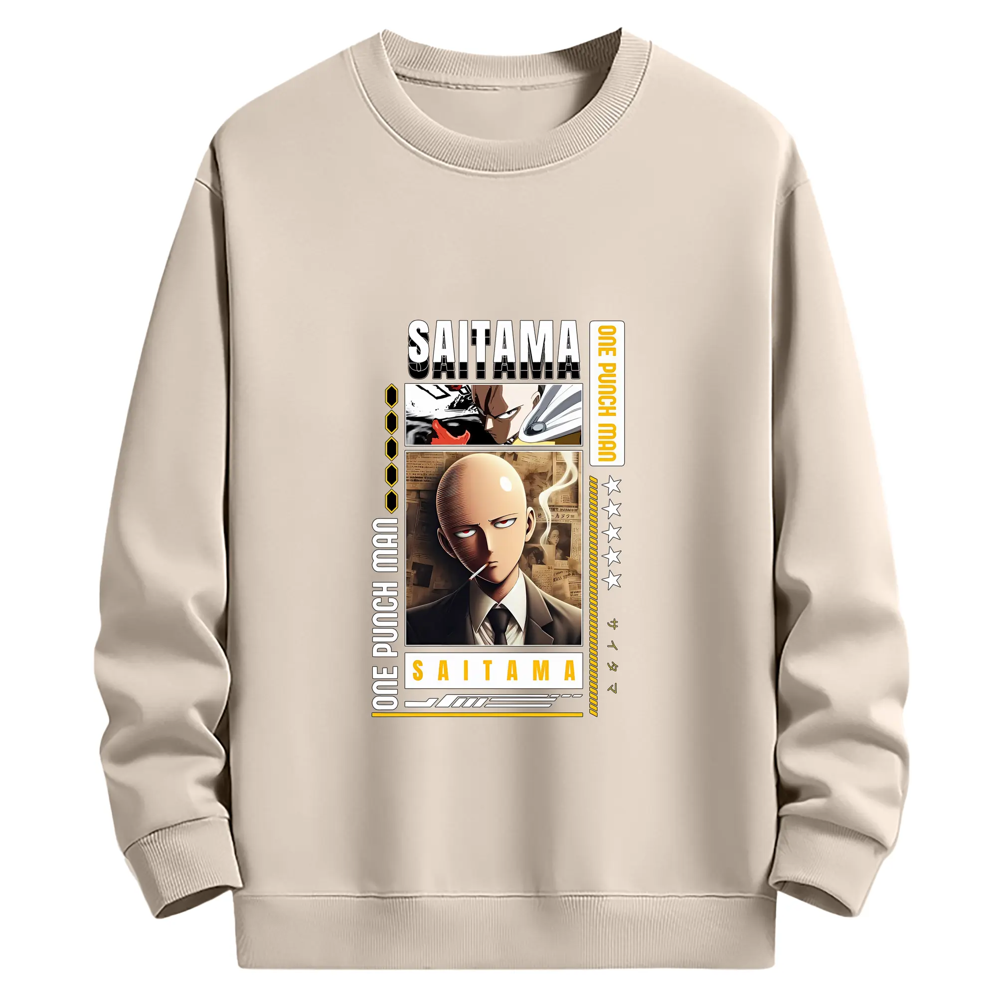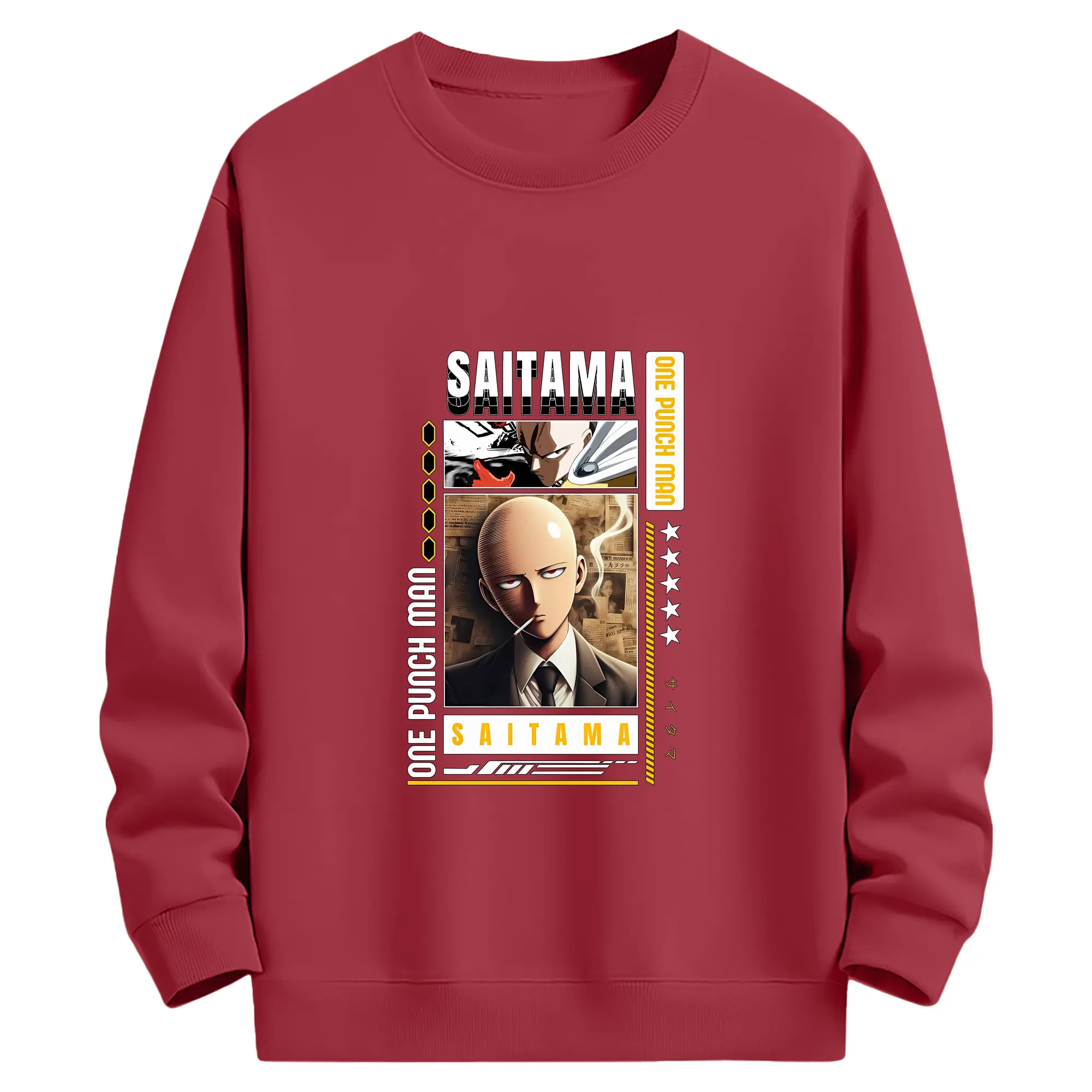 ワンパンマン グッズ サイタマ - 薄手 クルーネック スウェット 裏毛260g · ポリエステル 春秋向け カジュアル 男女兼用 · トレーナー デイリー スポーツ 散歩に最適